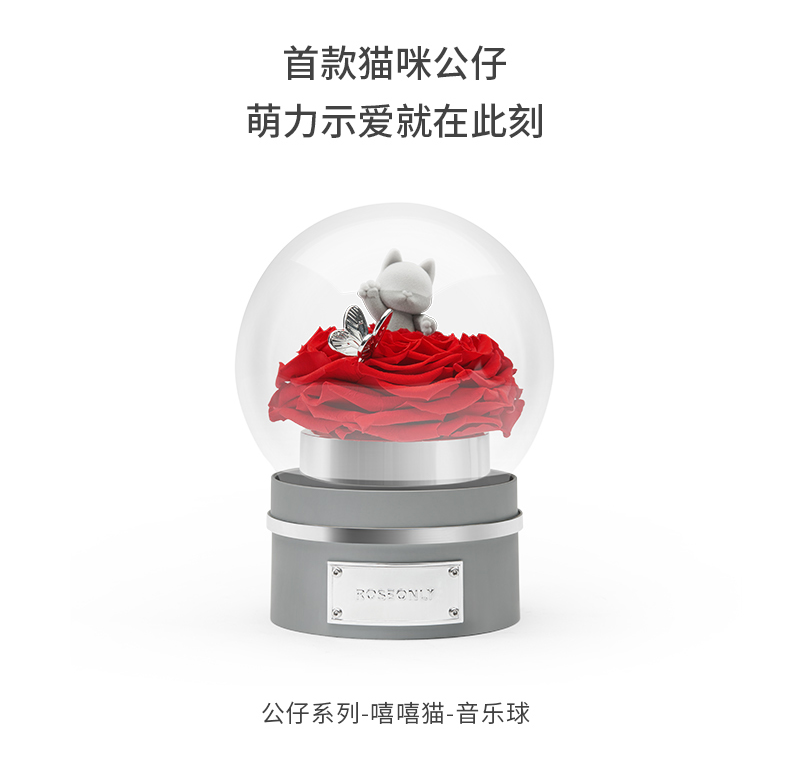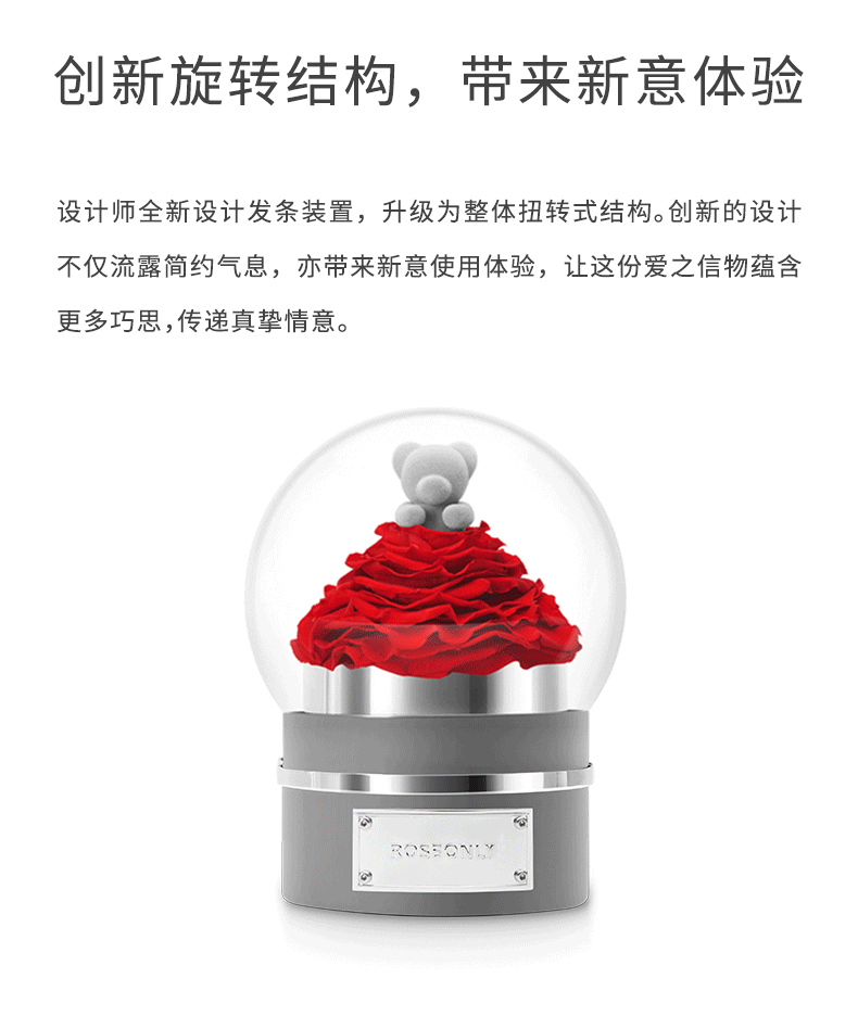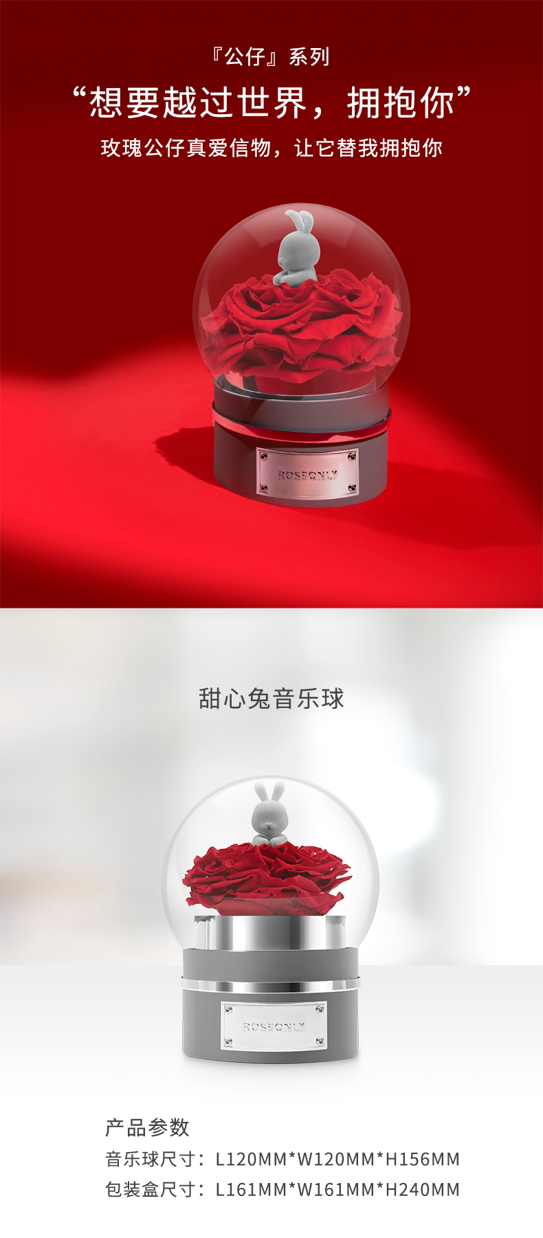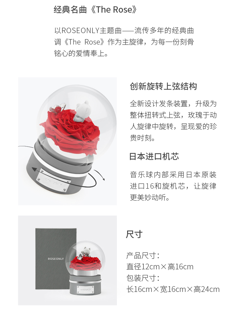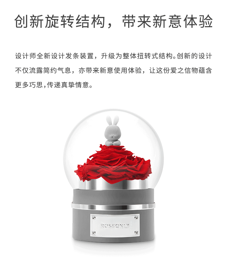 【音乐公仔】ROSEONLY诺誓 永生玫瑰-玫瑰公仔 甜心兔熊猫公仔音乐球礼盒 送女友节日礼物