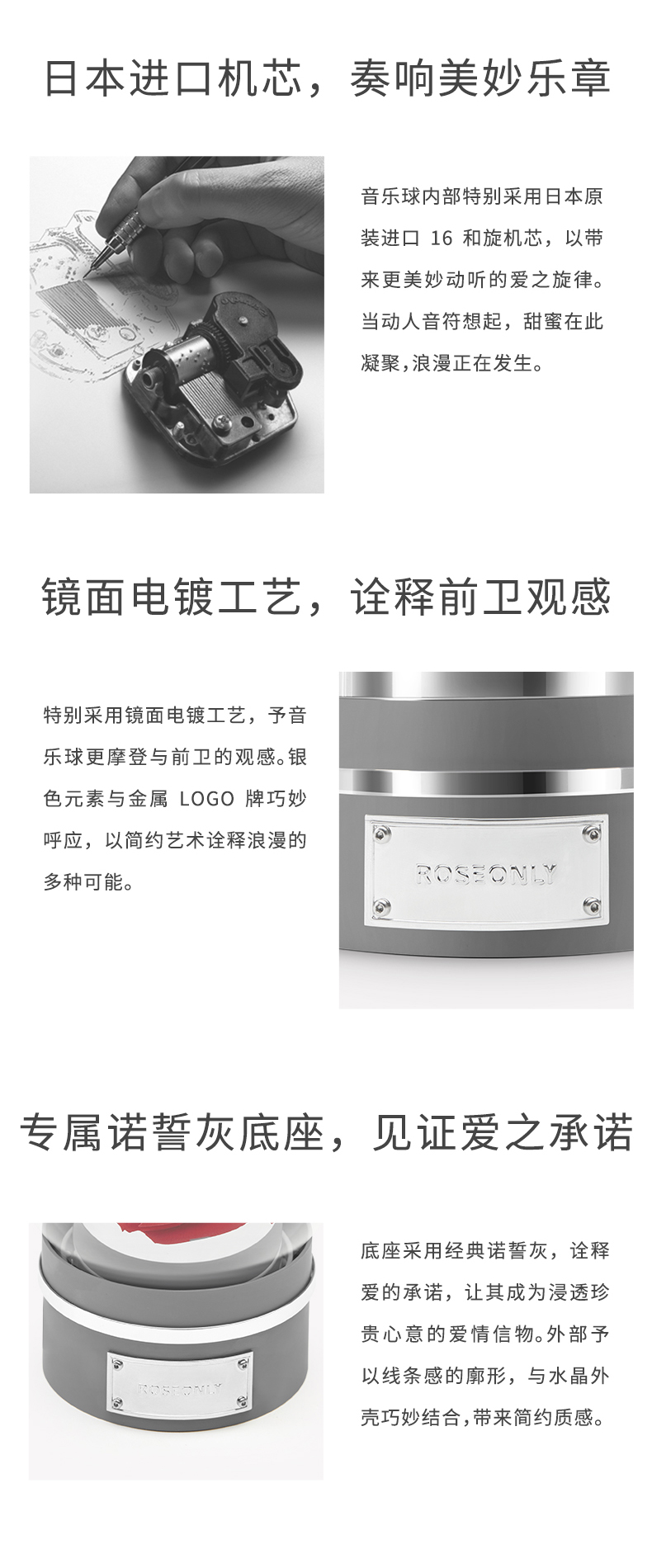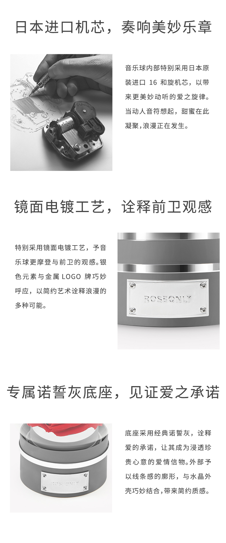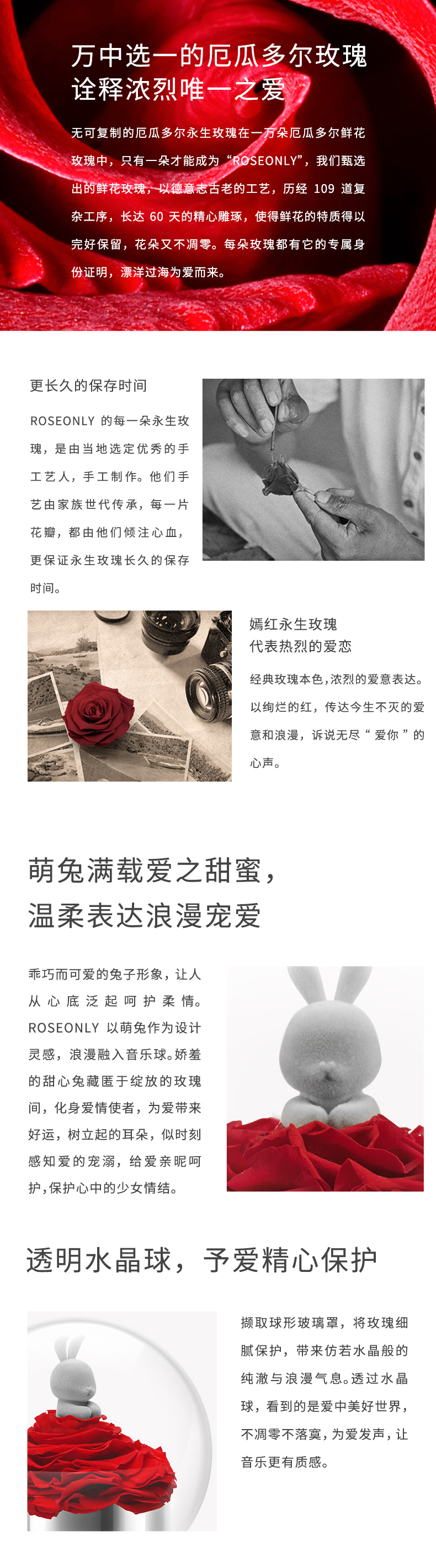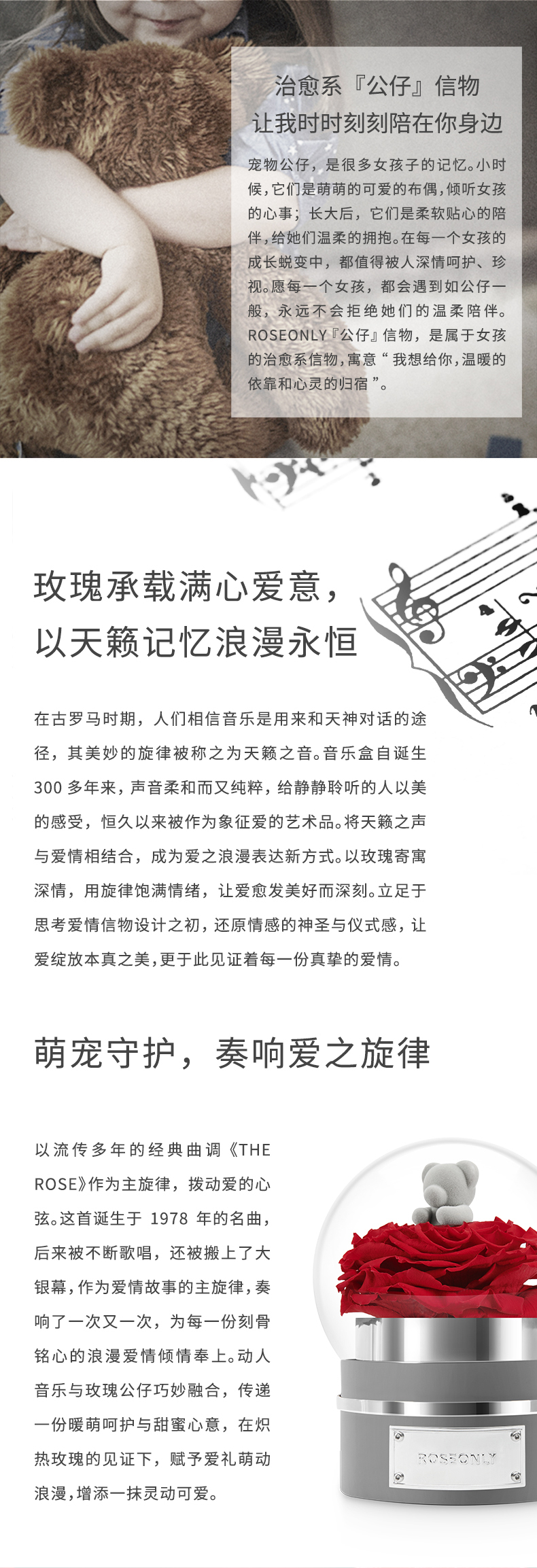 【音乐公仔】ROSEONLY诺誓 永生玫瑰-玫瑰公仔 甜心兔熊猫公仔音乐球礼盒 送女友节日礼物