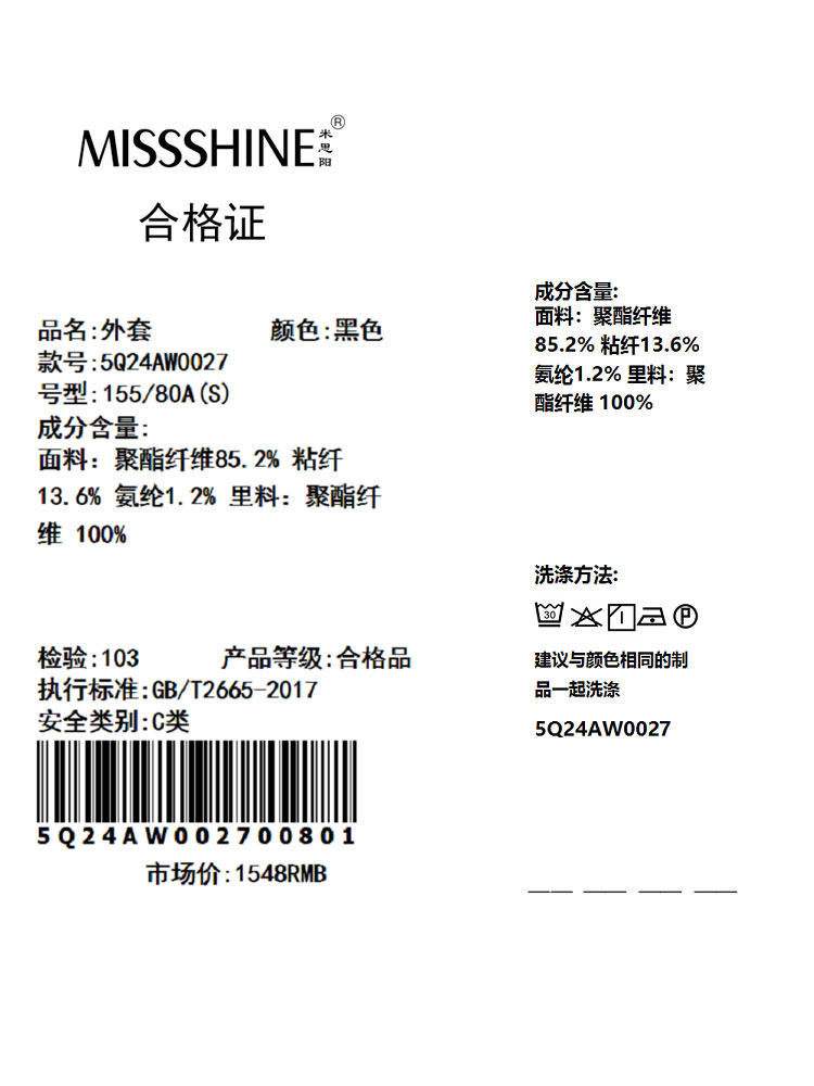 剩S/M/L/XL/XXL 【高级感外套】2026春季新款时尚通勤休闲百搭外套5Q24AW0027