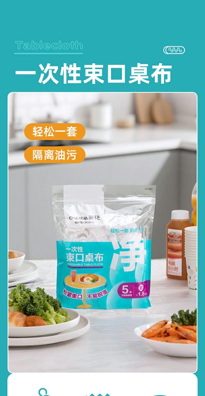 【茶花】一次性加厚防泼水桌布束口款
