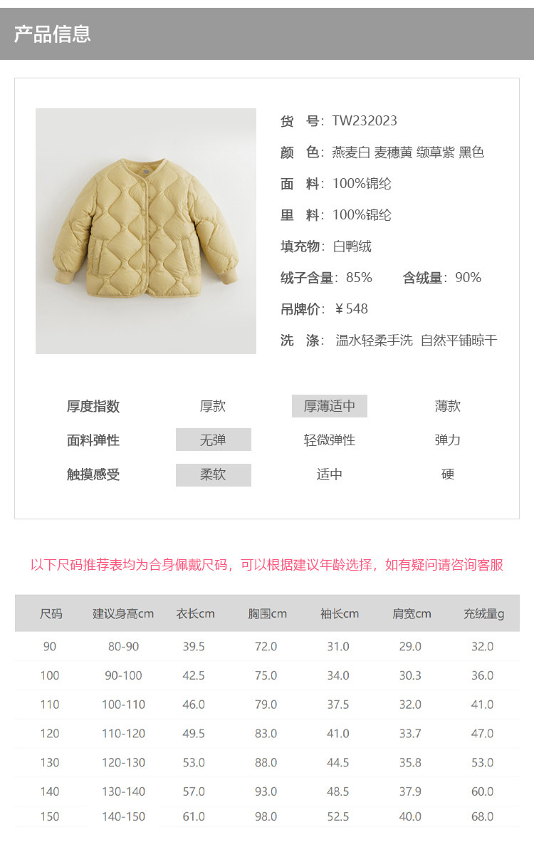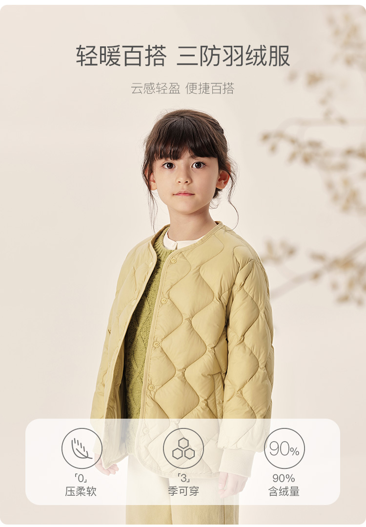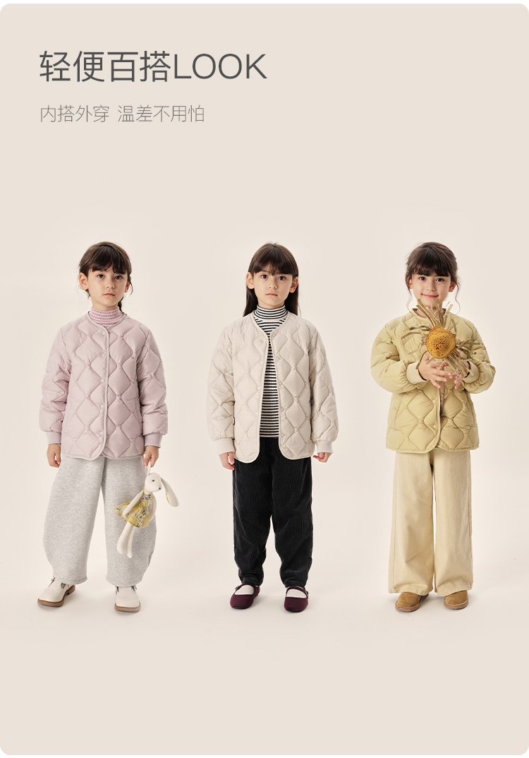 【马克珍妮 芦芙】冬装新款女童菱形格云感内胆超轻羽绒服 232023