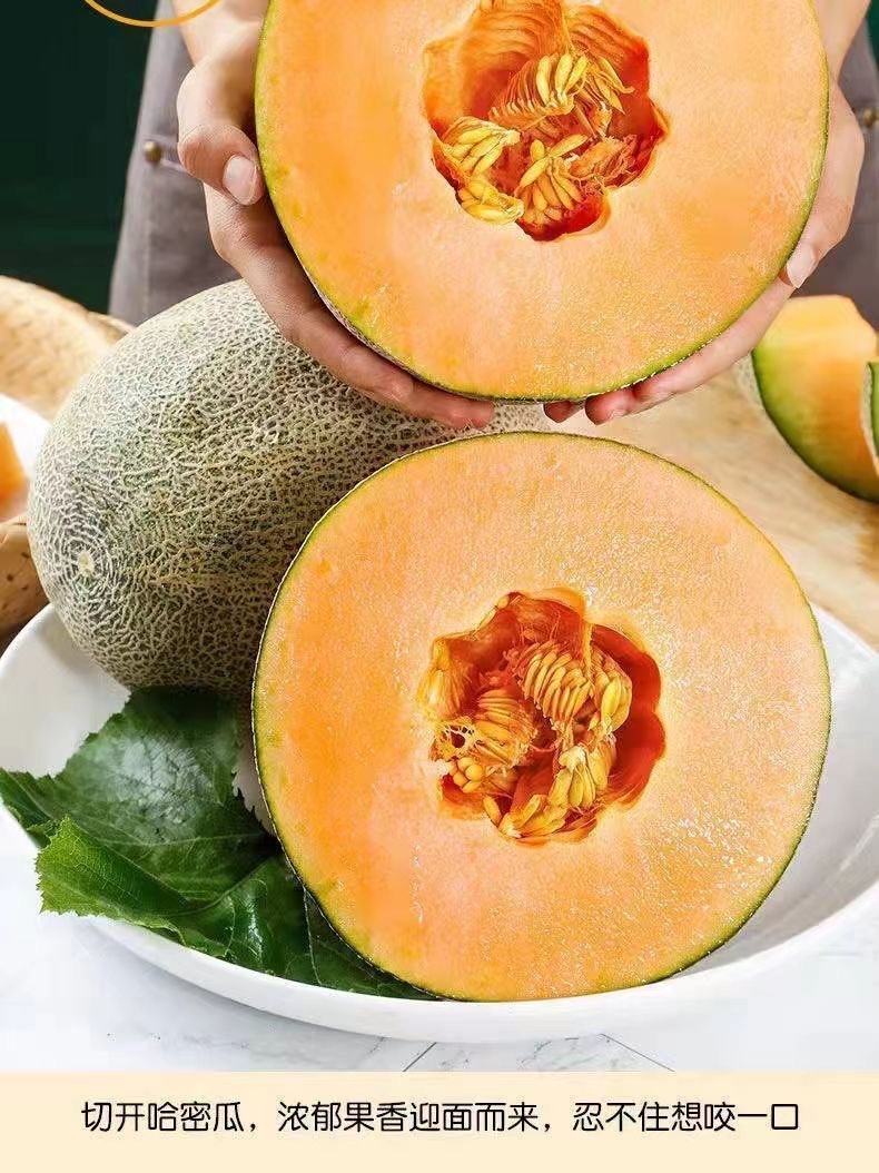【9斤更值!现摘现发新鲜哈密瓜】肉质细嫩,美味多汁,脆甜可口,甜度适中,清香扑鼻,口感细腻爽口,当季新鲜水果网纹瓜
