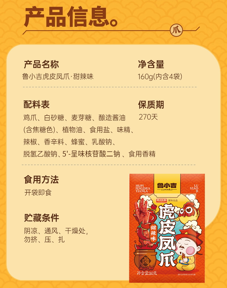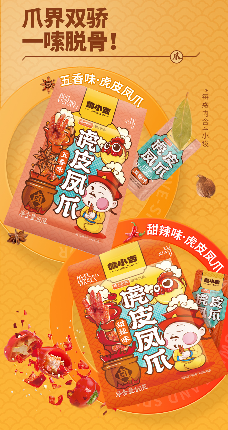 【休闲零食】德州扒鸡鲁小吉虎皮凤爪 五香/甜辣味 开袋即食