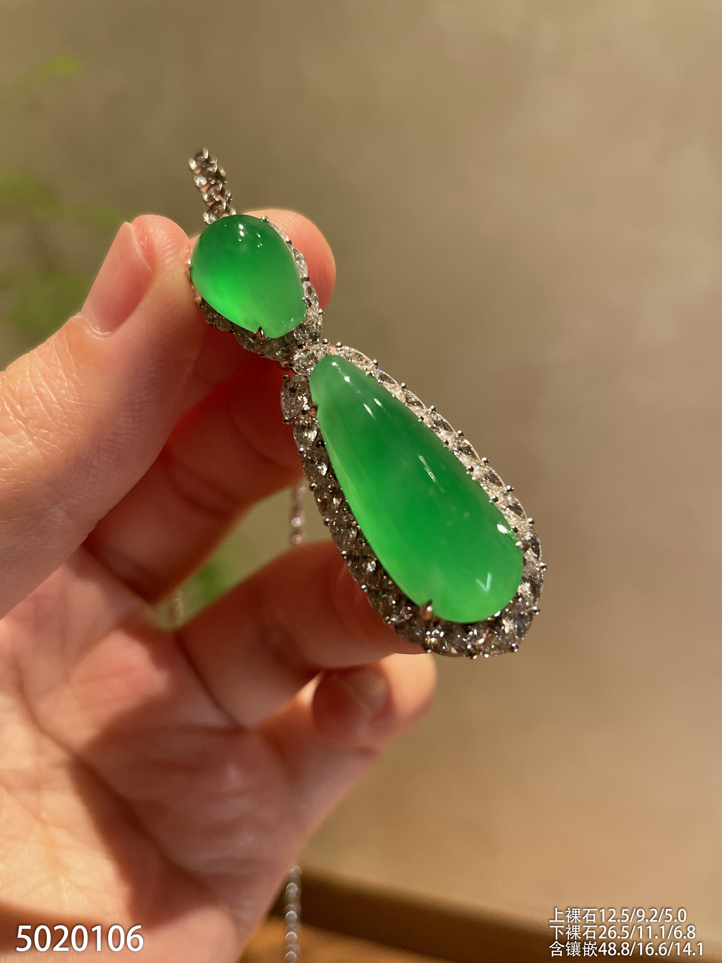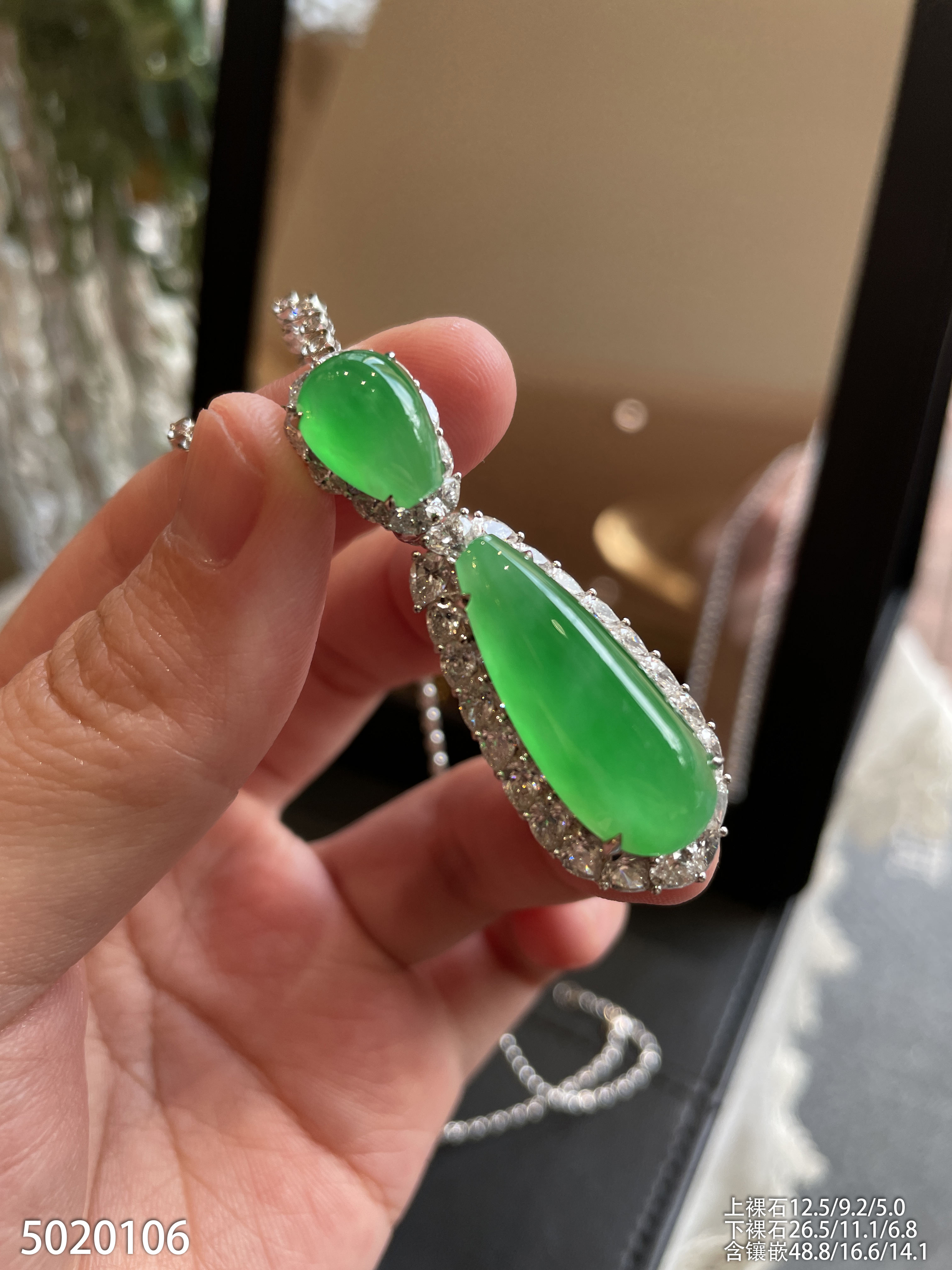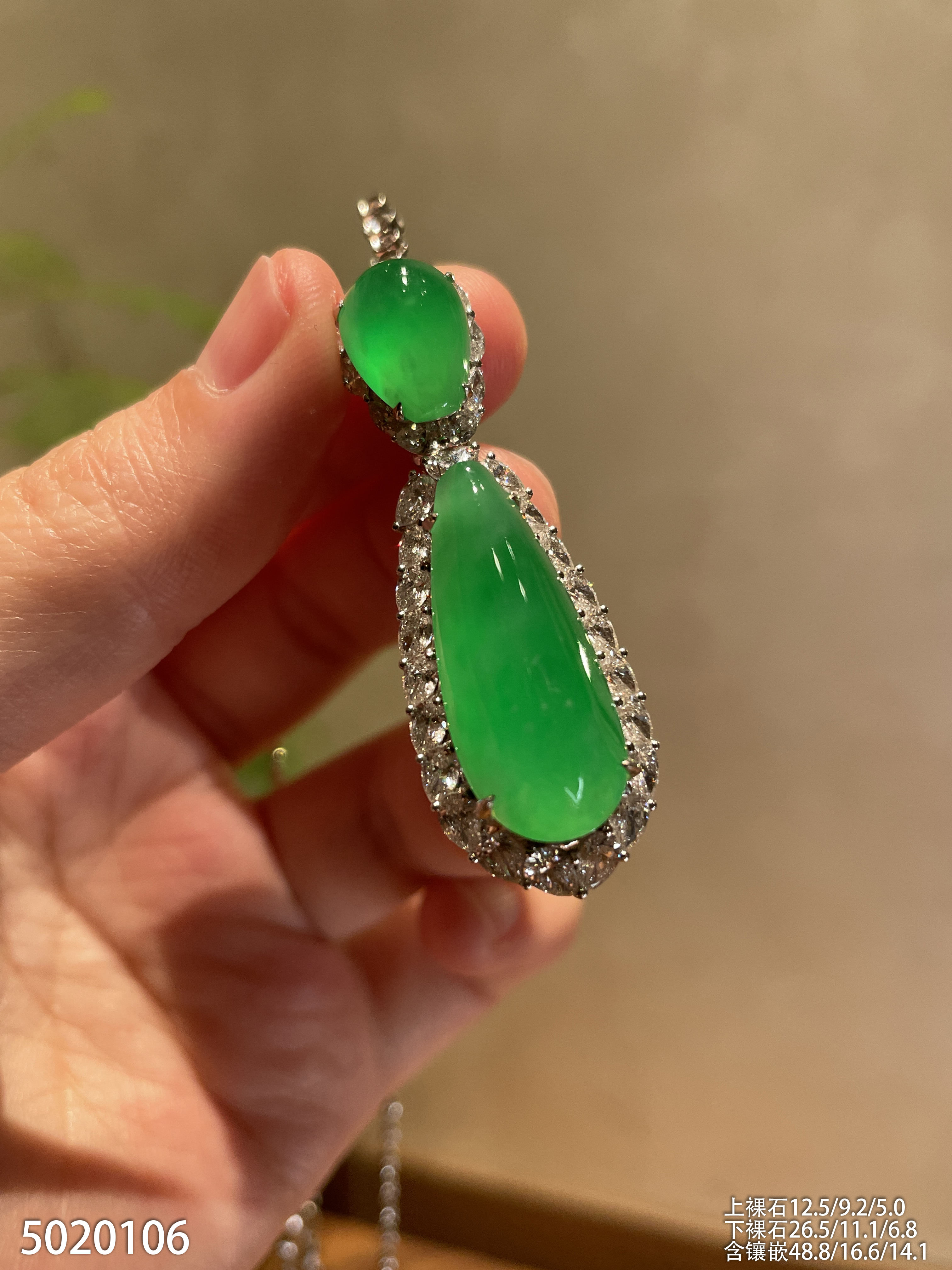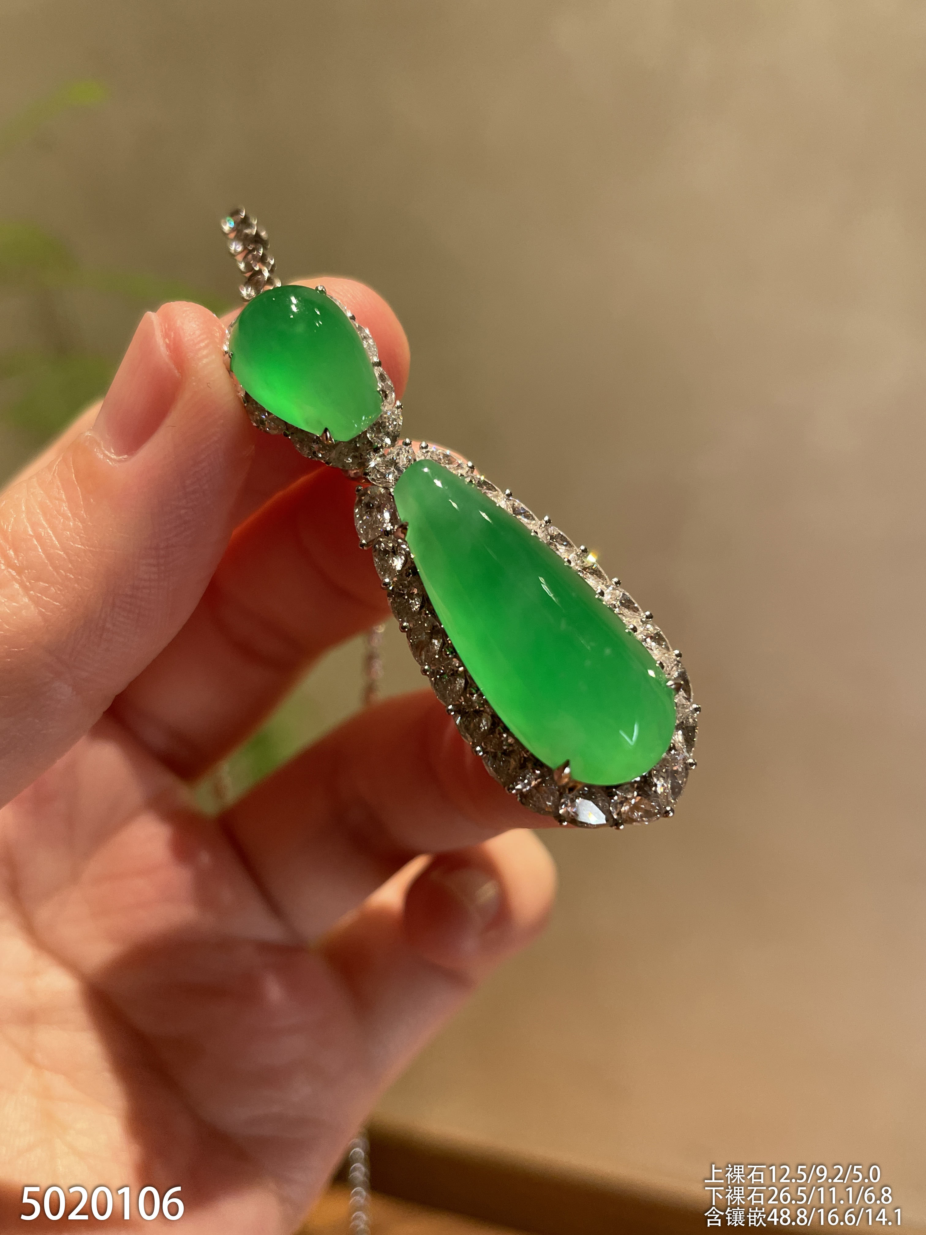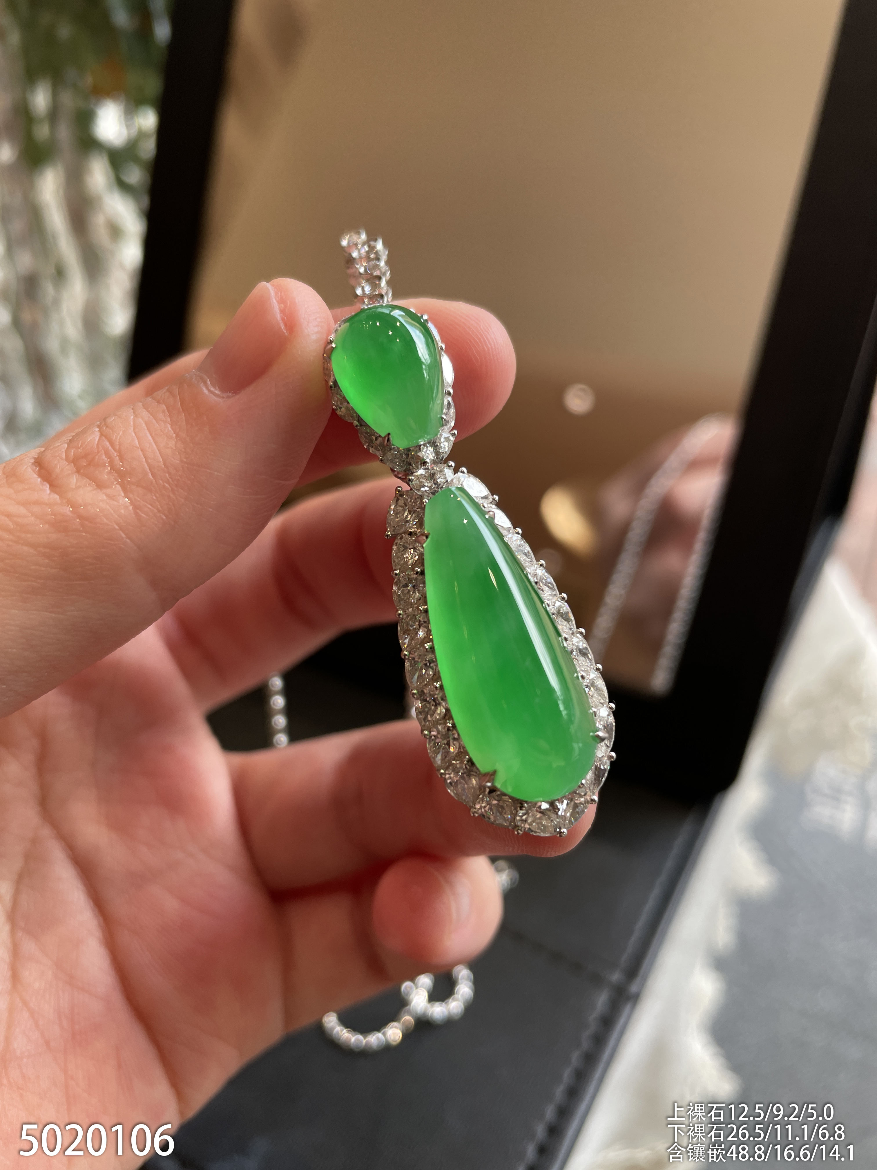 高冰种木那艳绿水滴吊坠【5020106】具体价格微信咨询