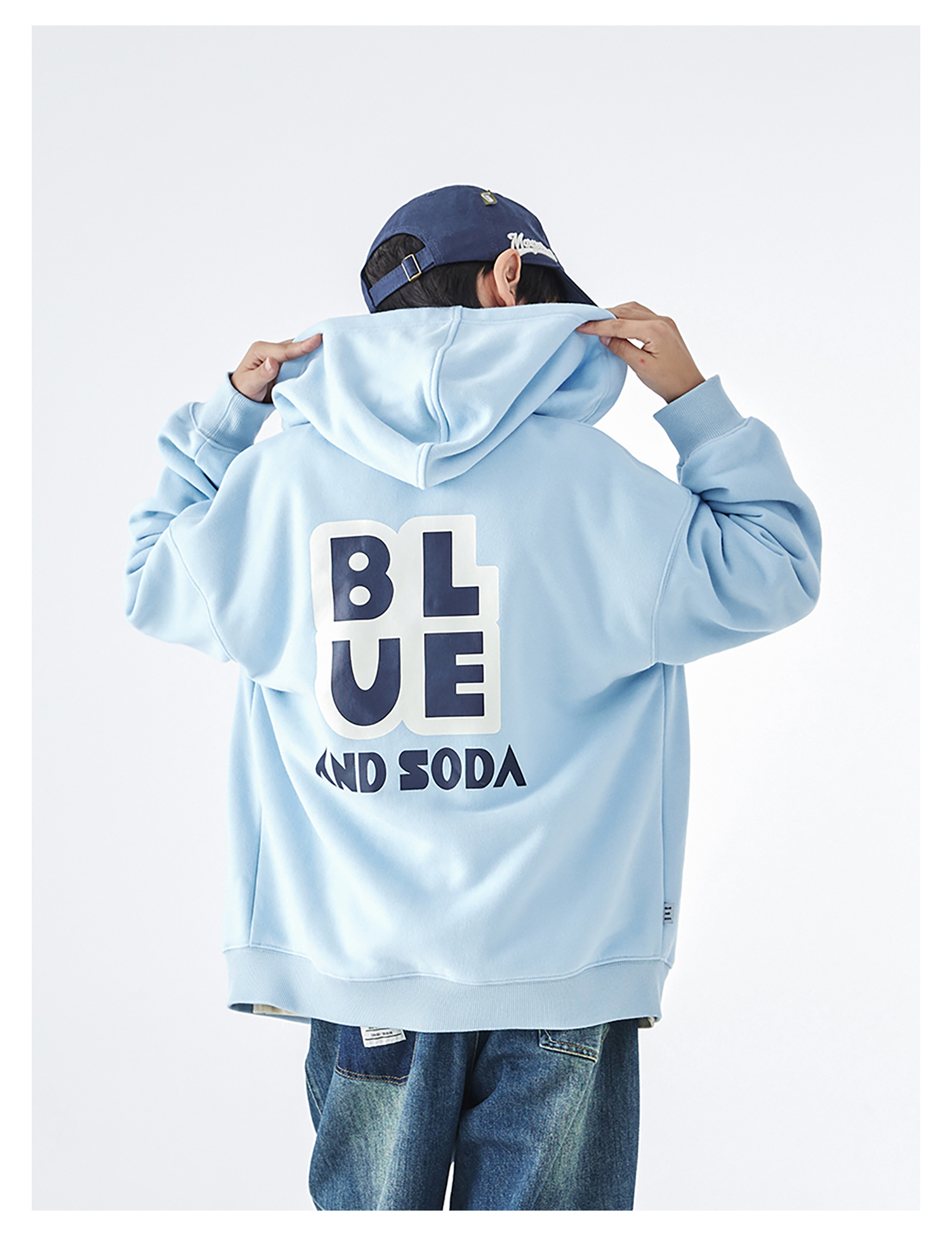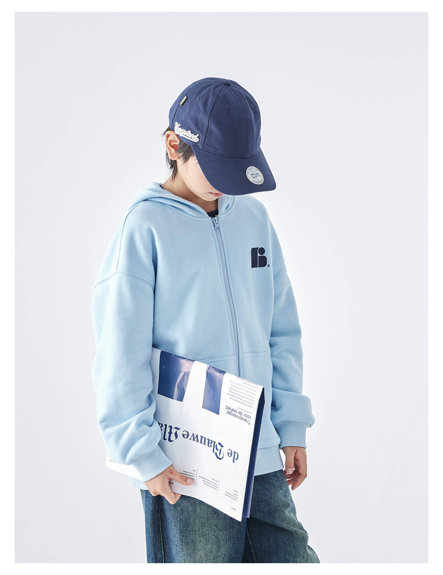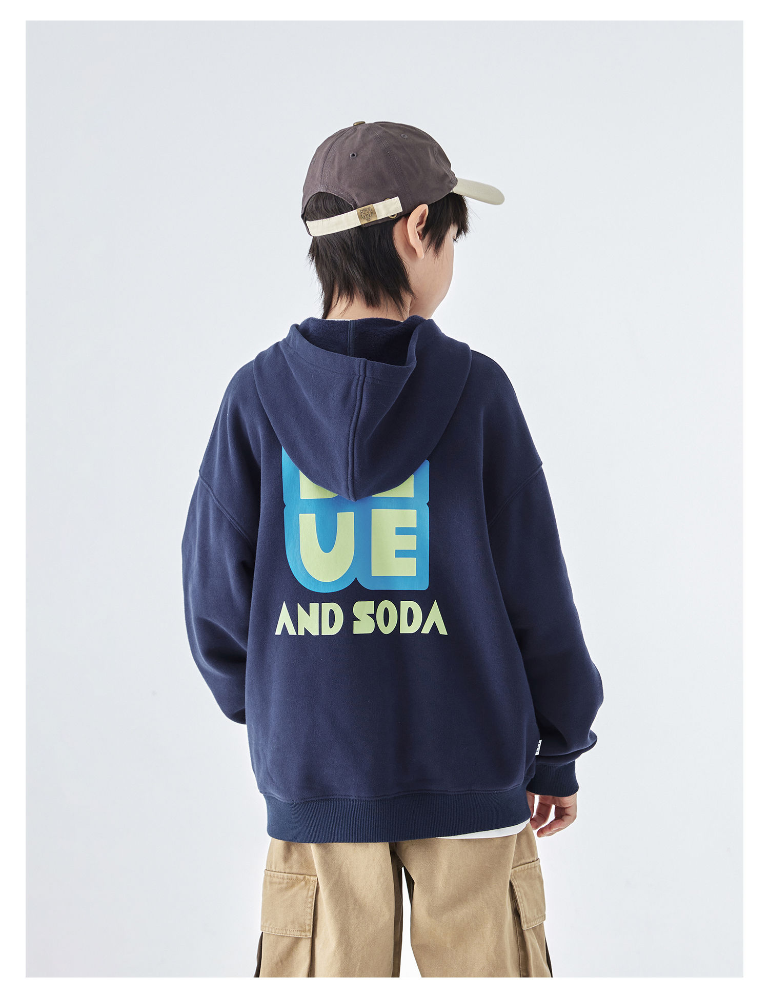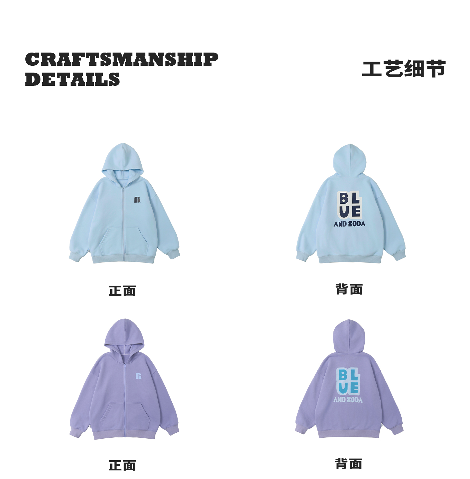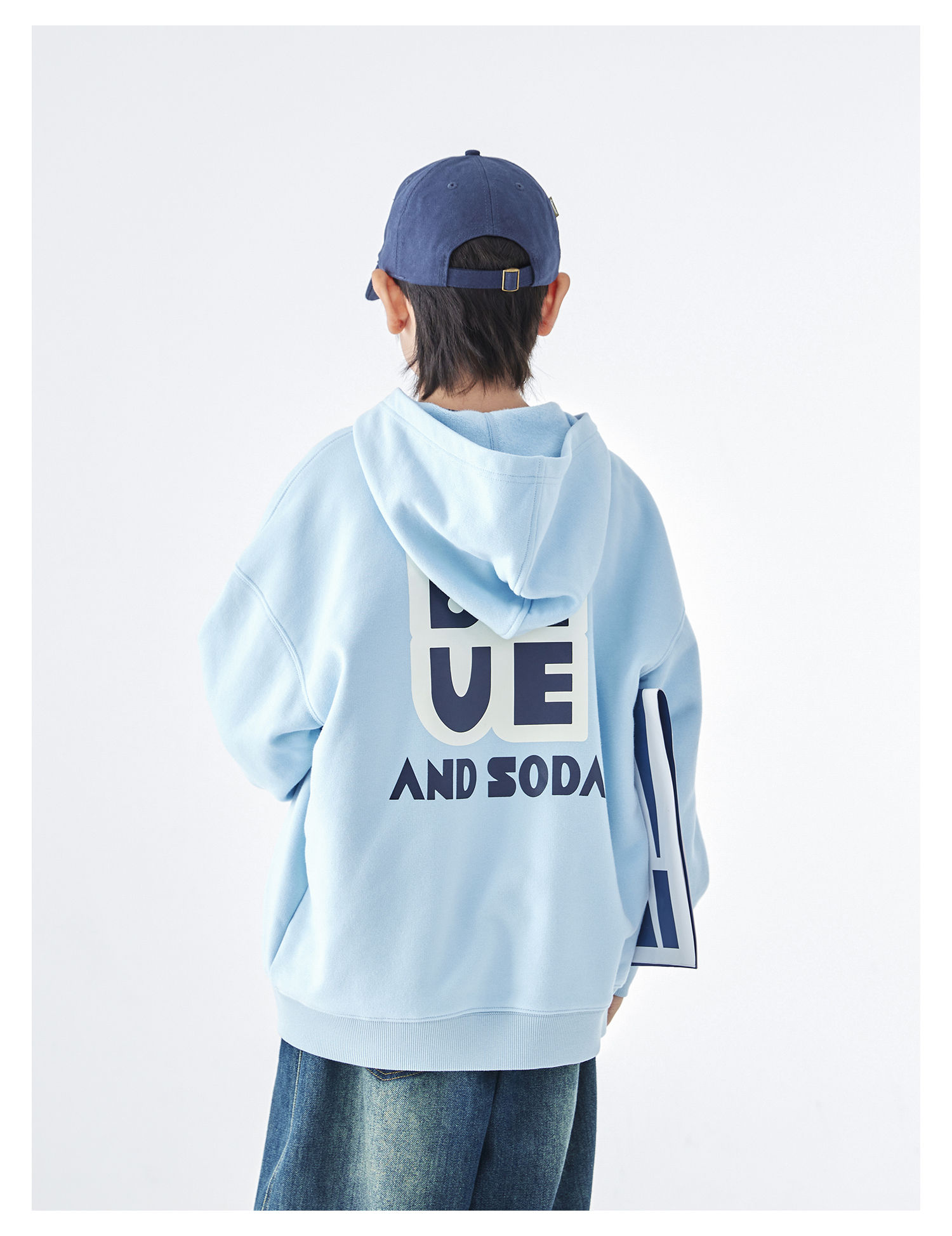 蓝汽水「晴空BLUE」25年秋冬新款亲子中大童字母连帽卫衣宽松外套