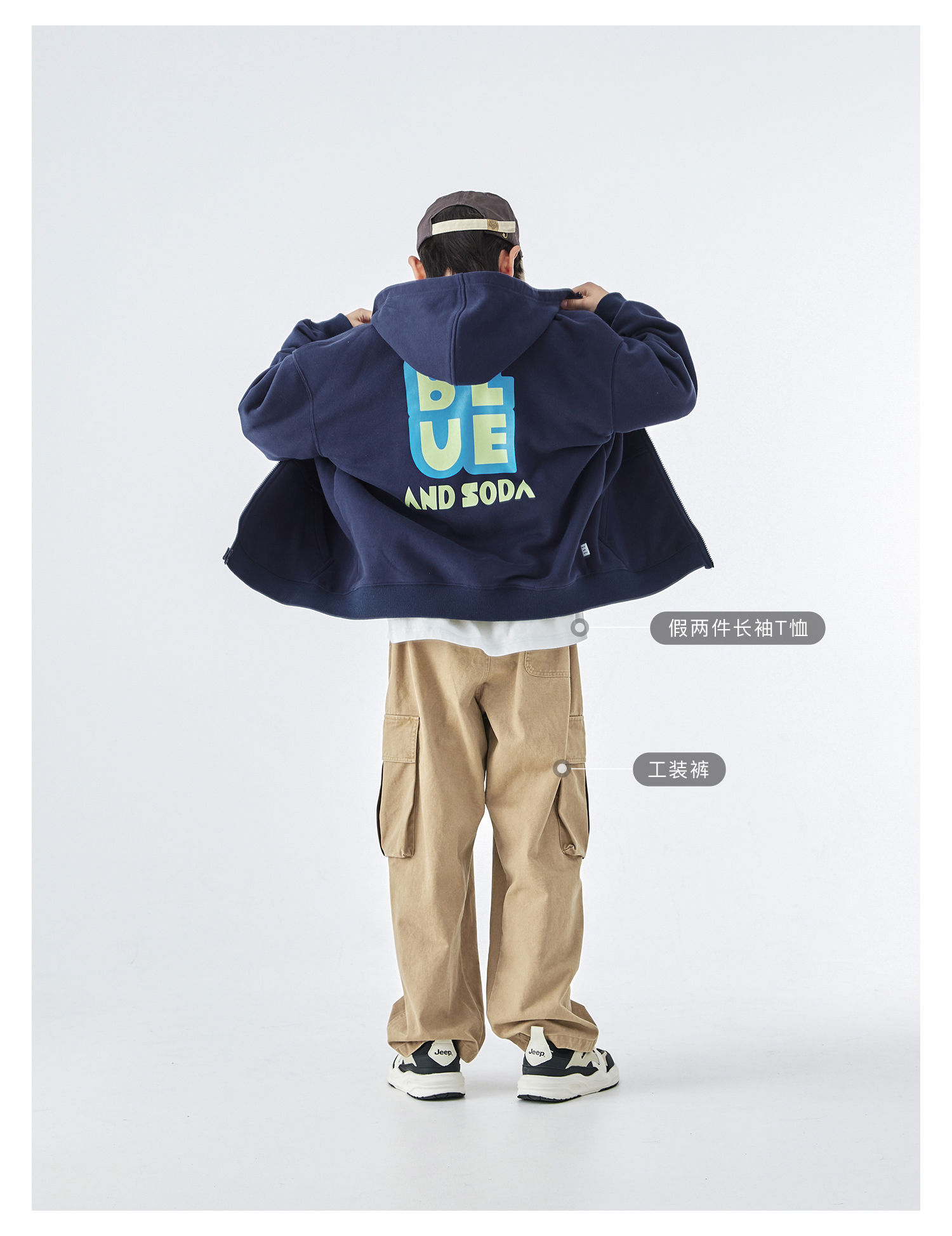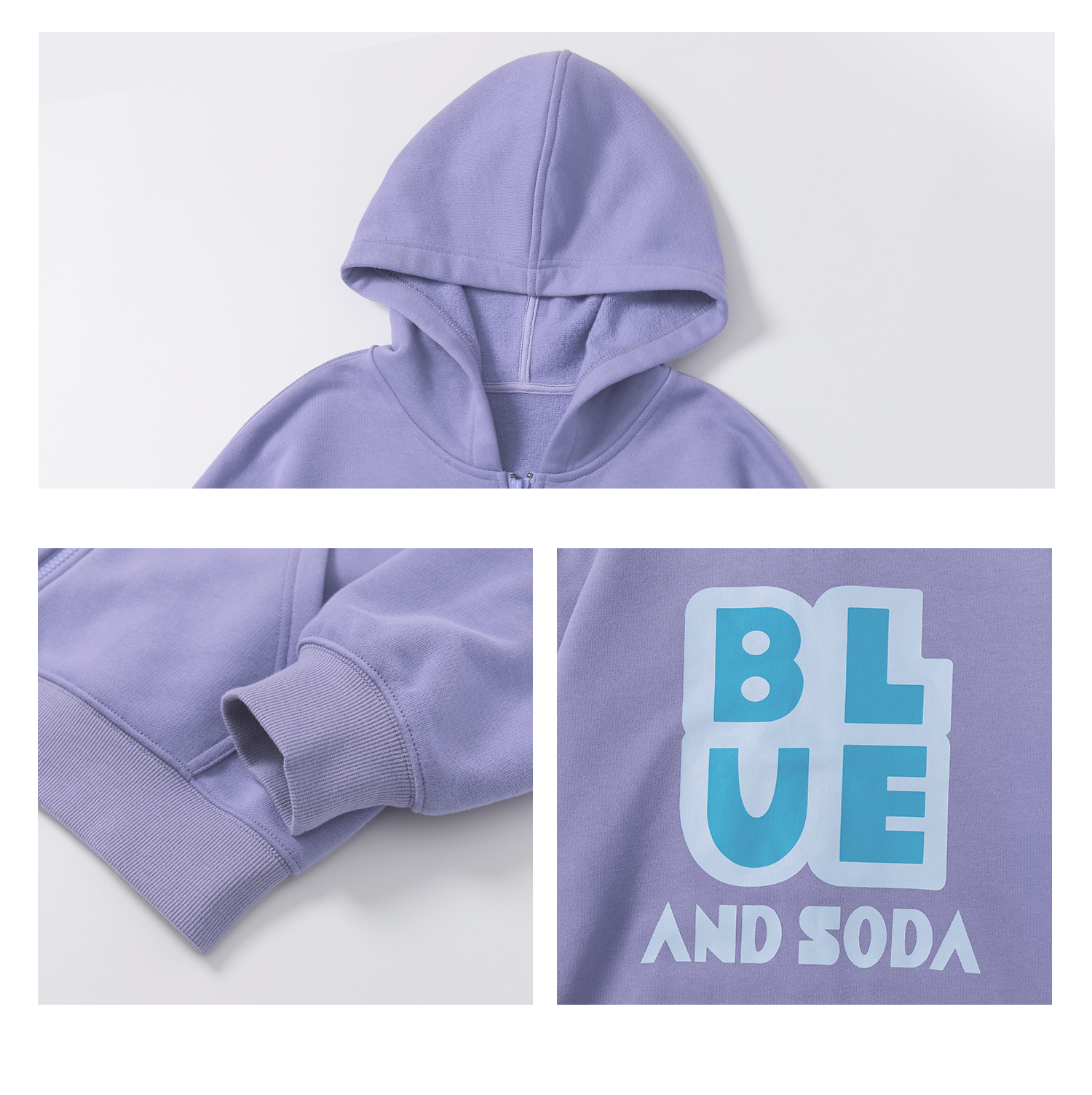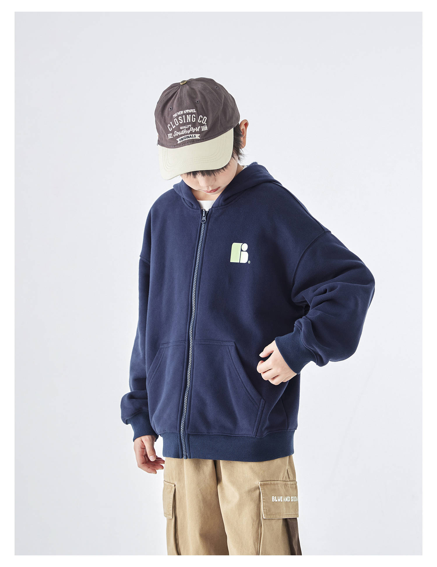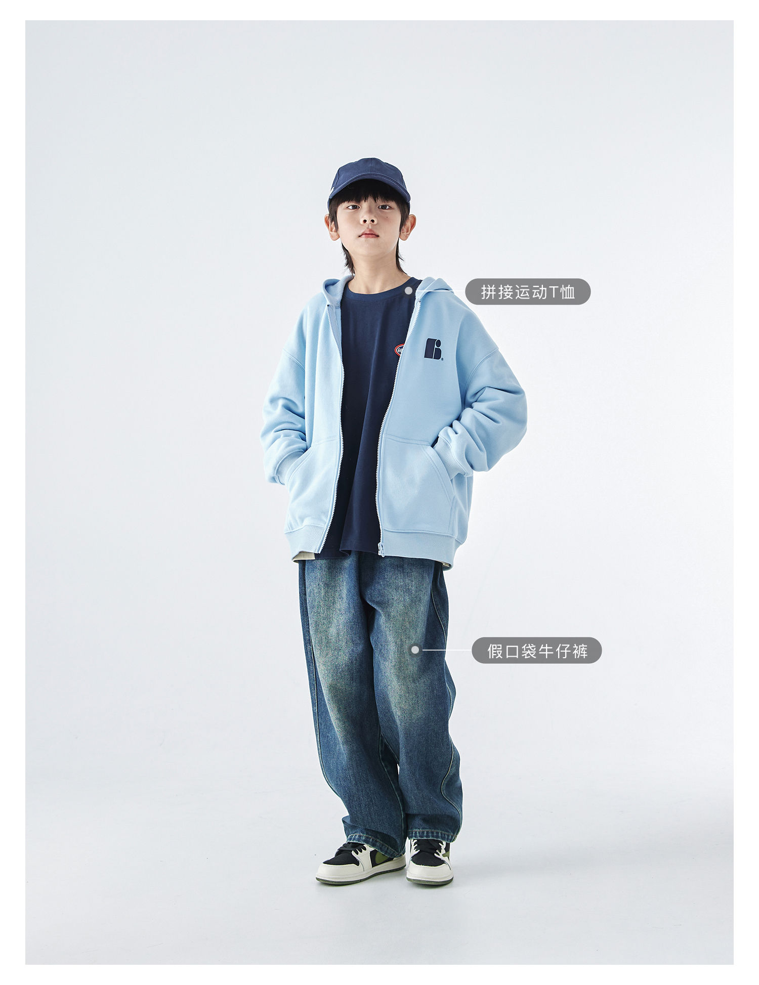 蓝汽水「晴空BLUE」25年秋冬新款亲子中大童字母连帽卫衣宽松外套