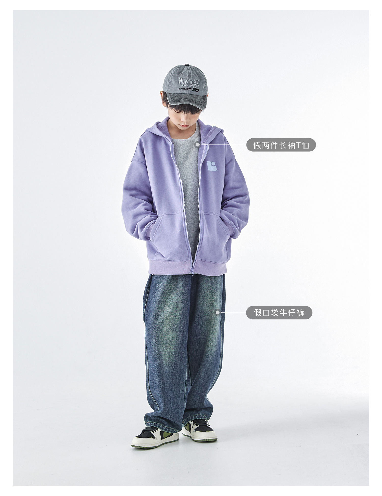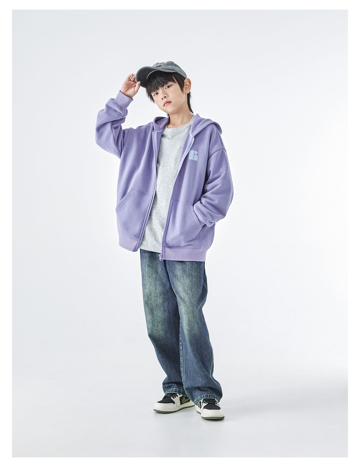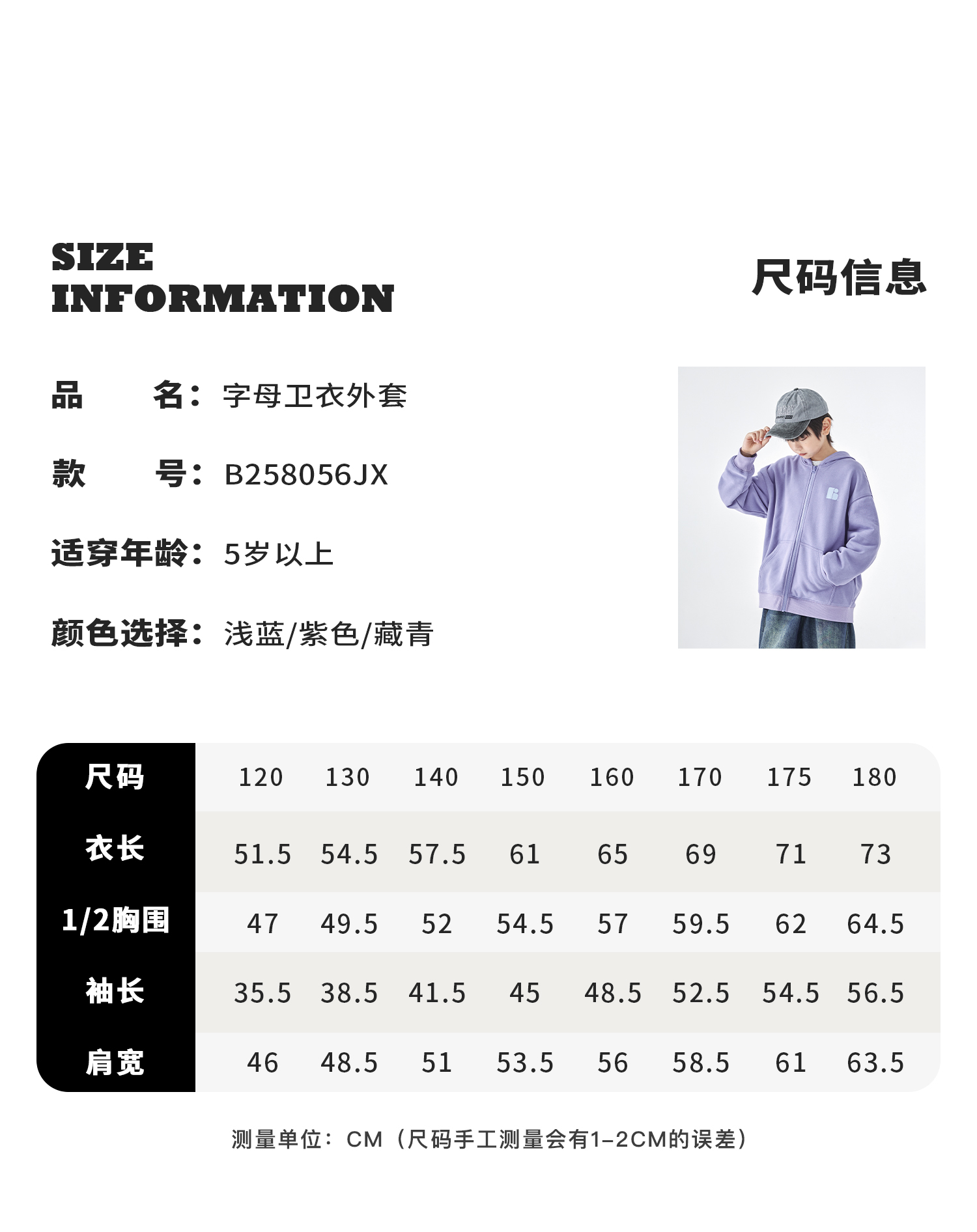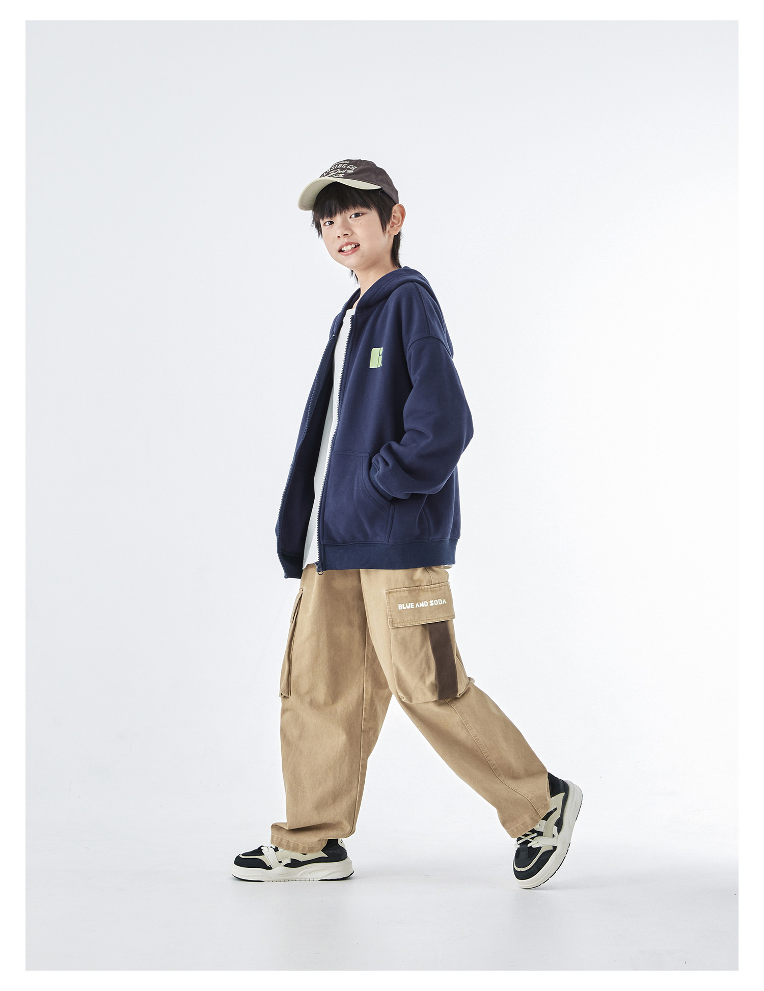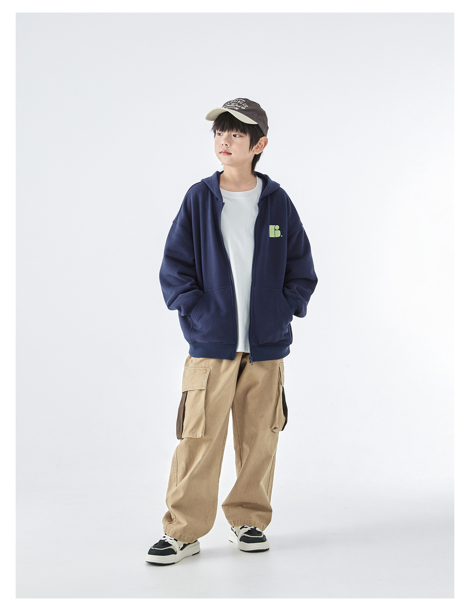 蓝汽水「晴空BLUE」25年秋冬新款亲子中大童字母连帽卫衣宽松外套
