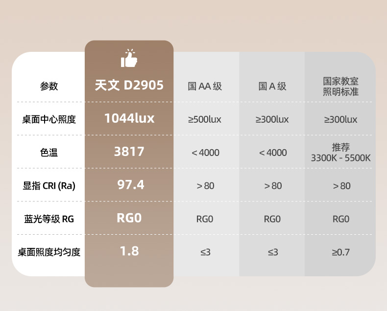 国AA级护眼灯智能RG0防蓝光五档亮度调节【适配天文2802一体桌】