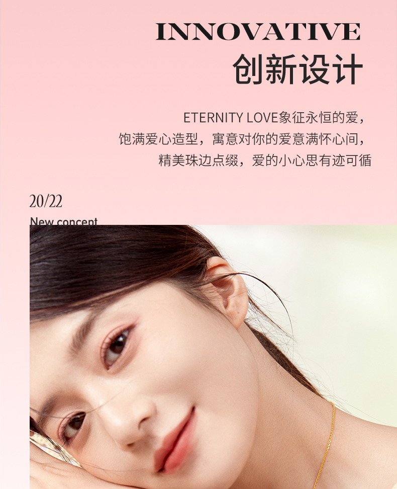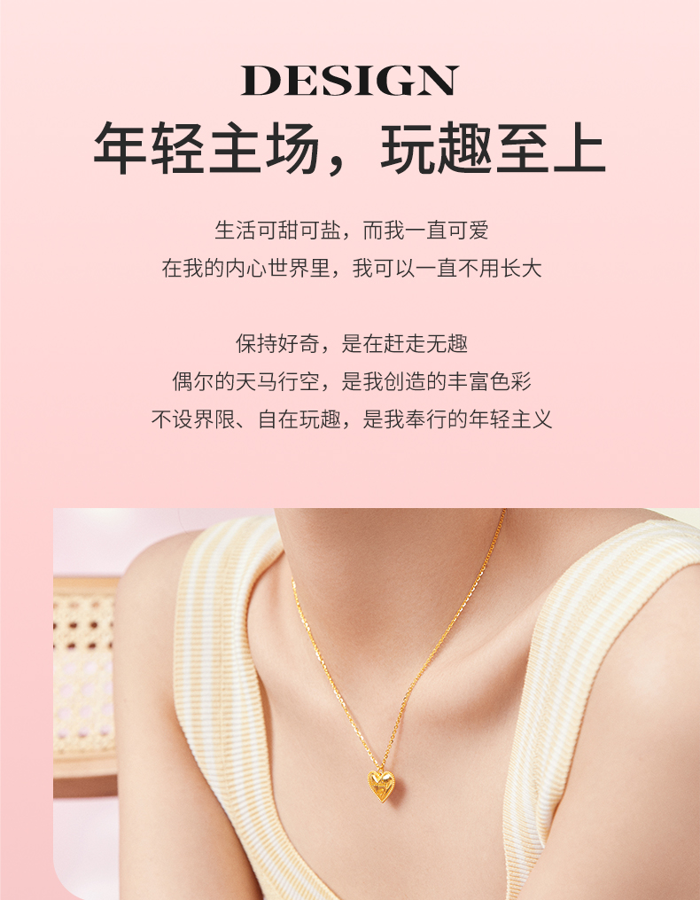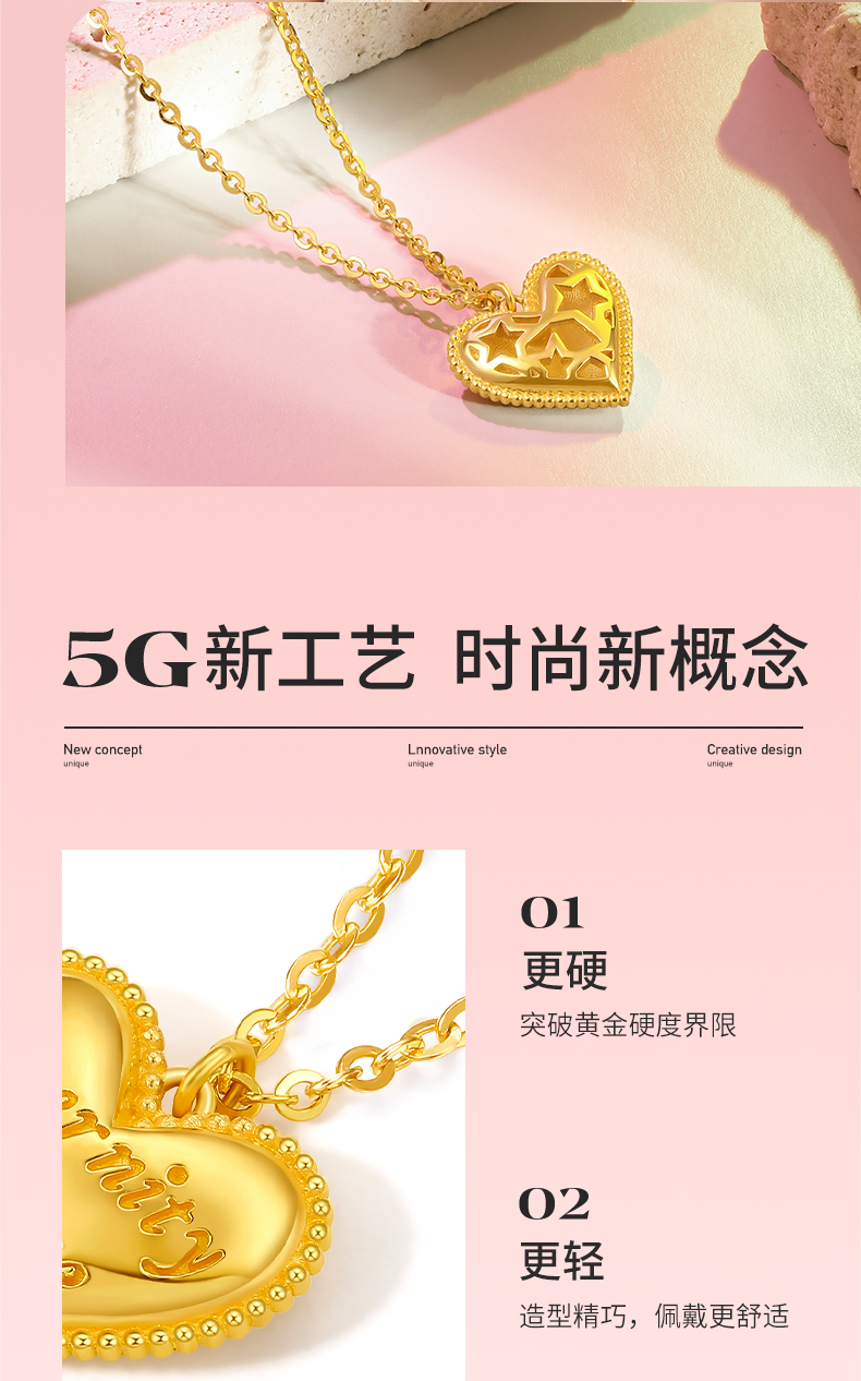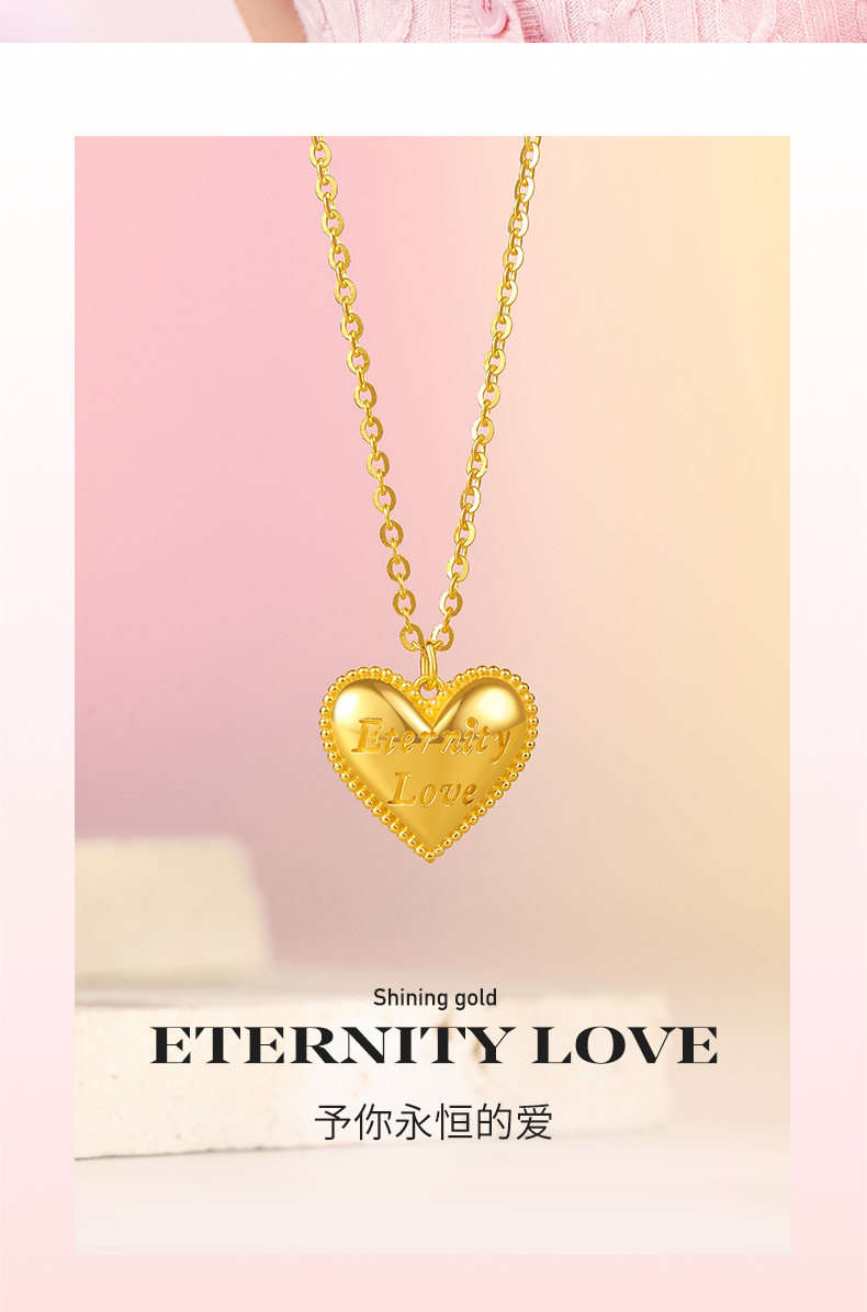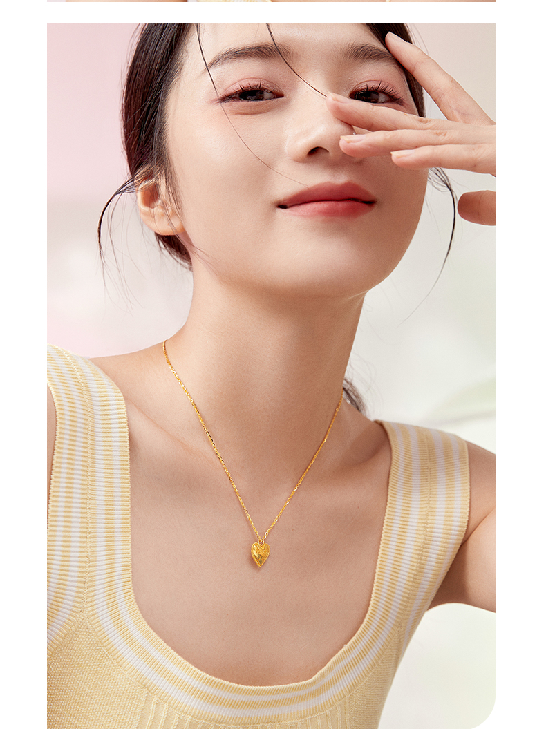周六福新款爱心黄金项链女5G无极金系列计价足金项链送女友礼物