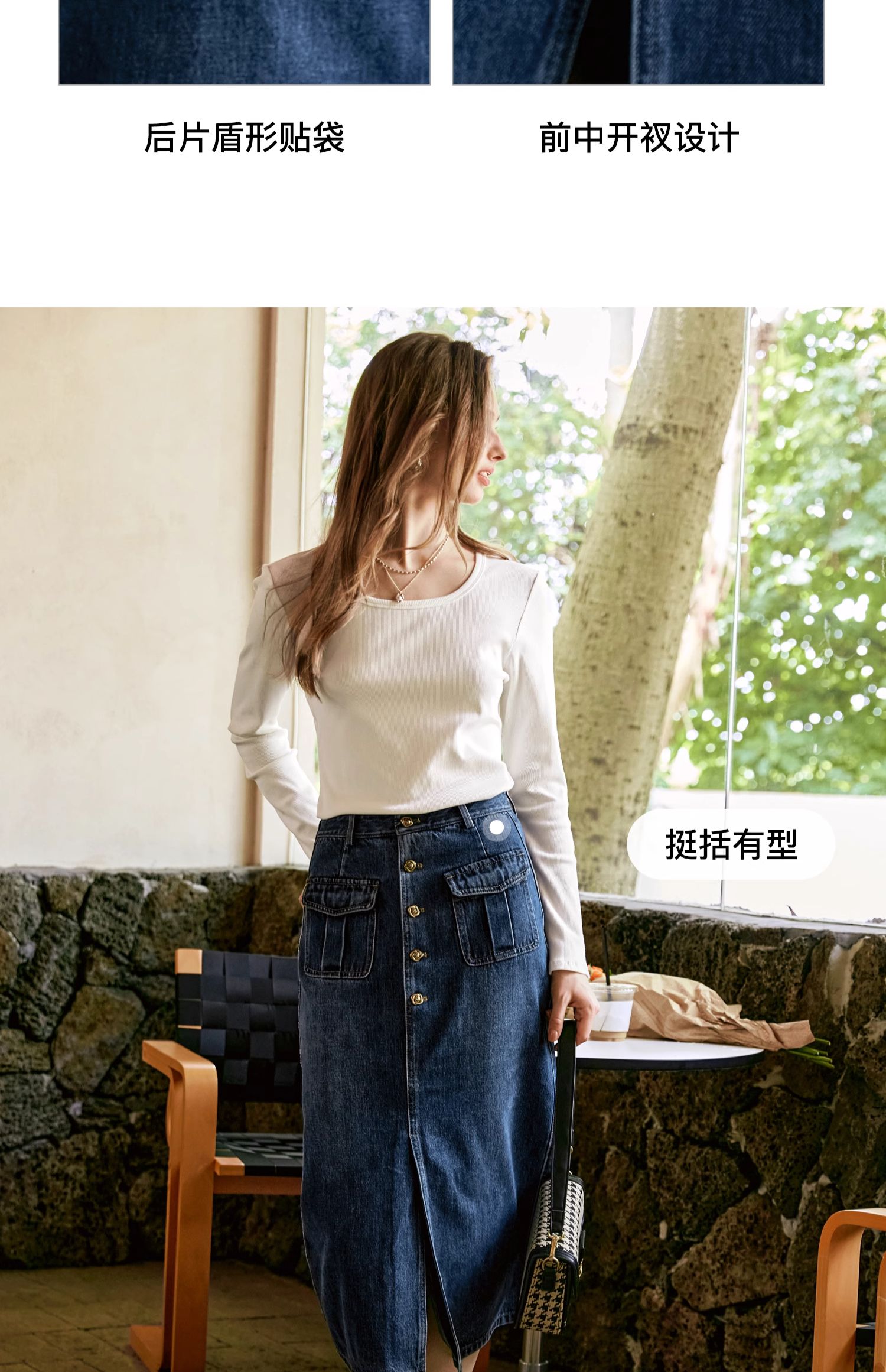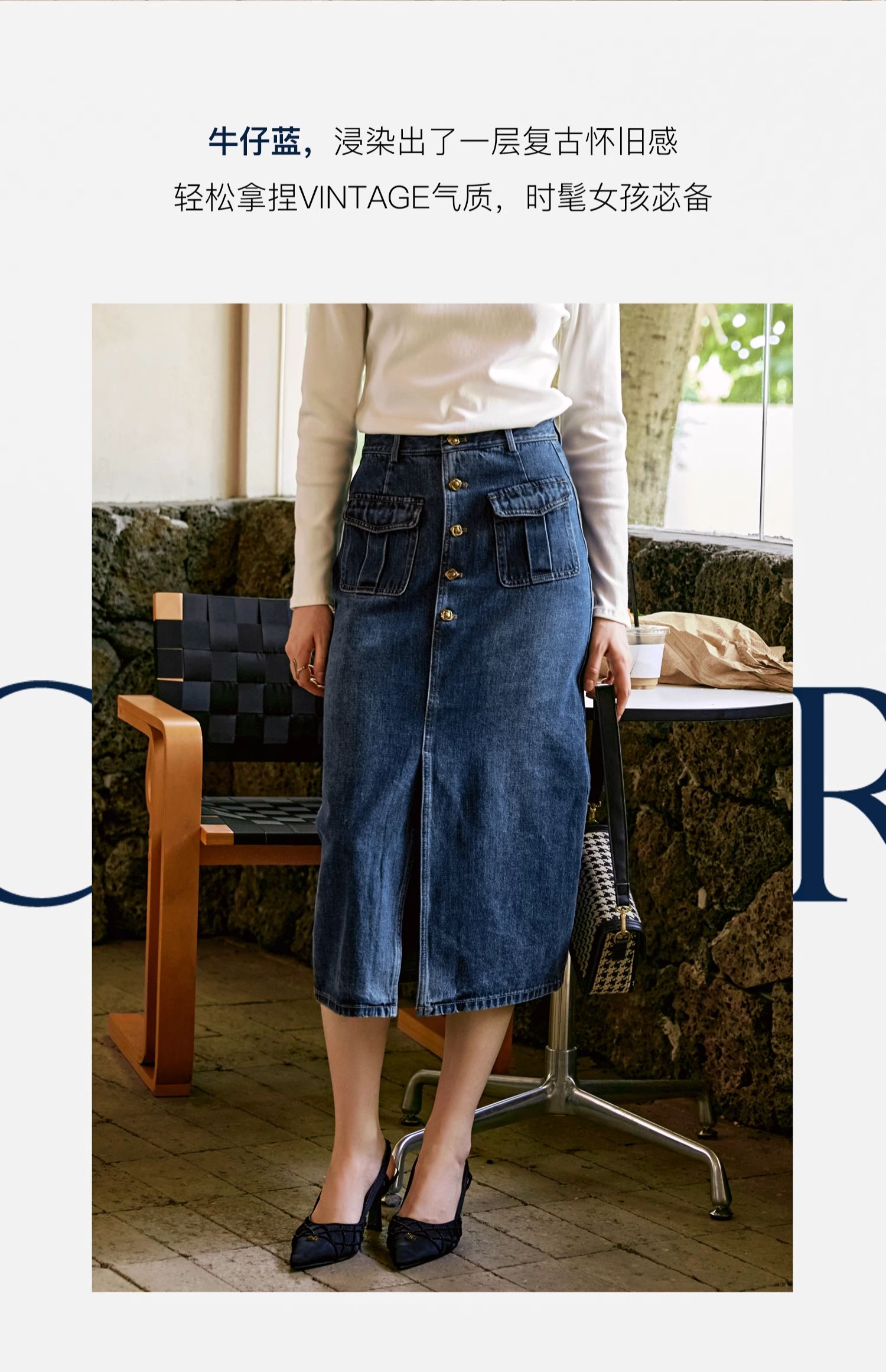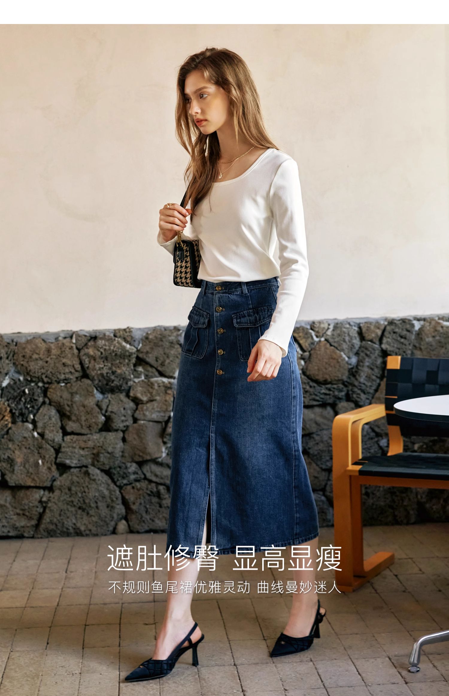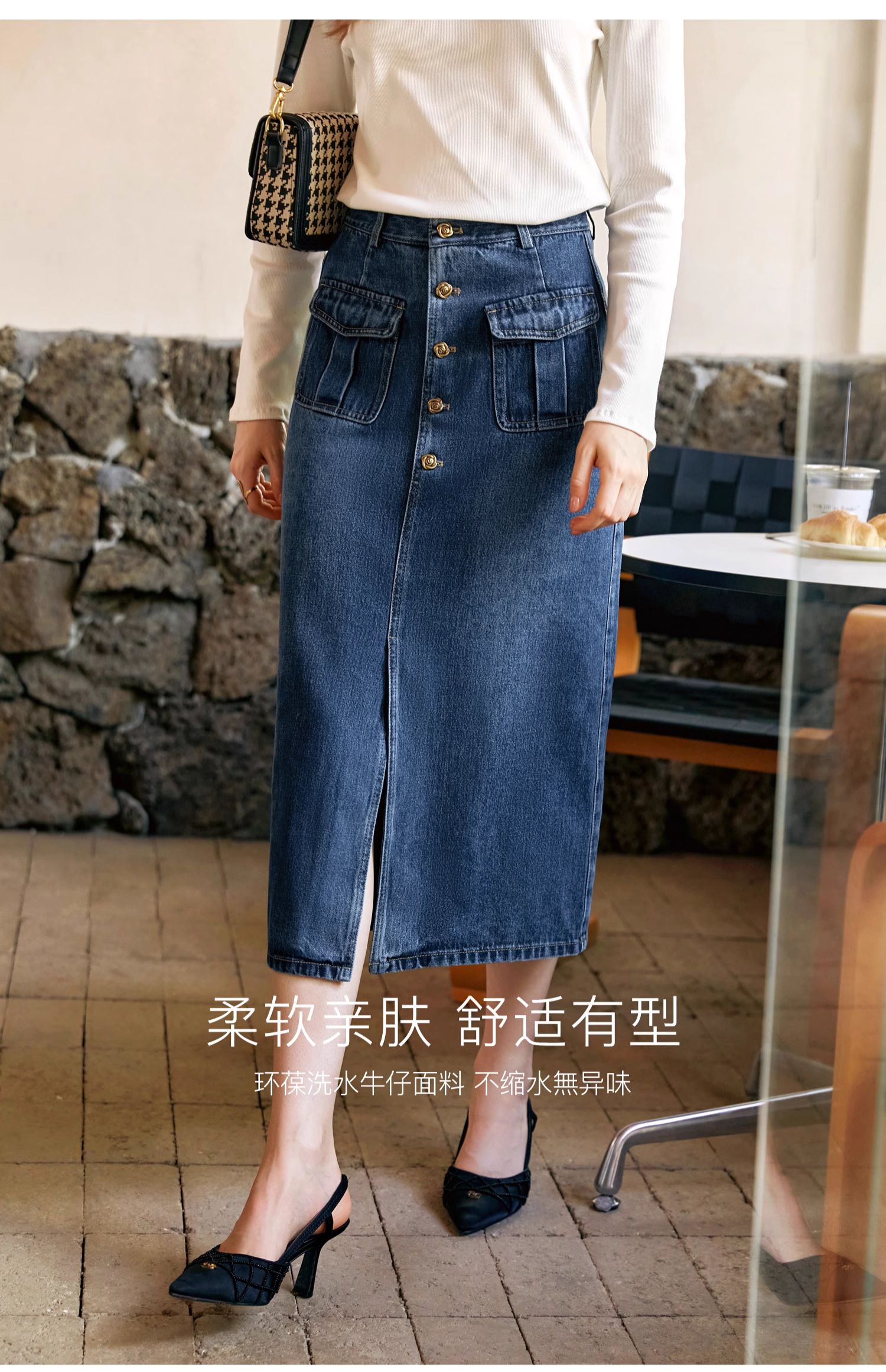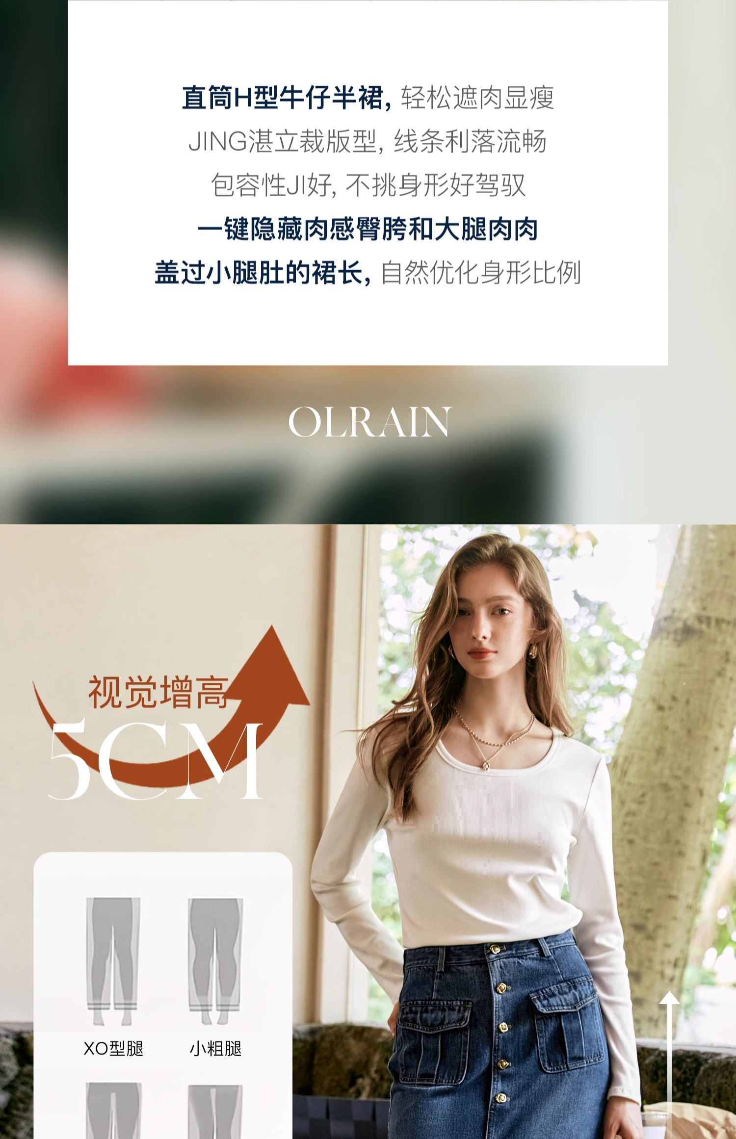 OLrain欧芮儿牛仔半身裙女早秋2024年新款复古高腰通勤显瘦中长裙