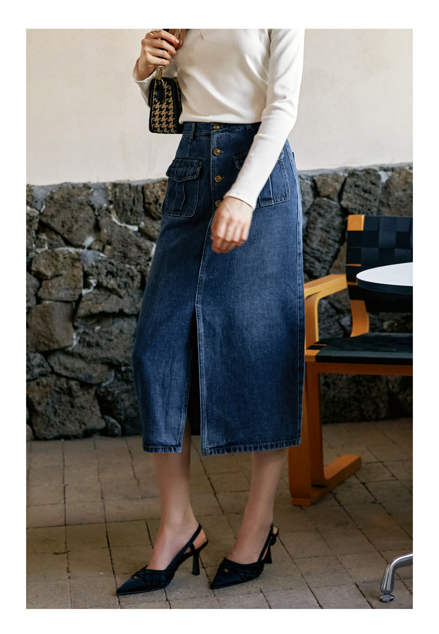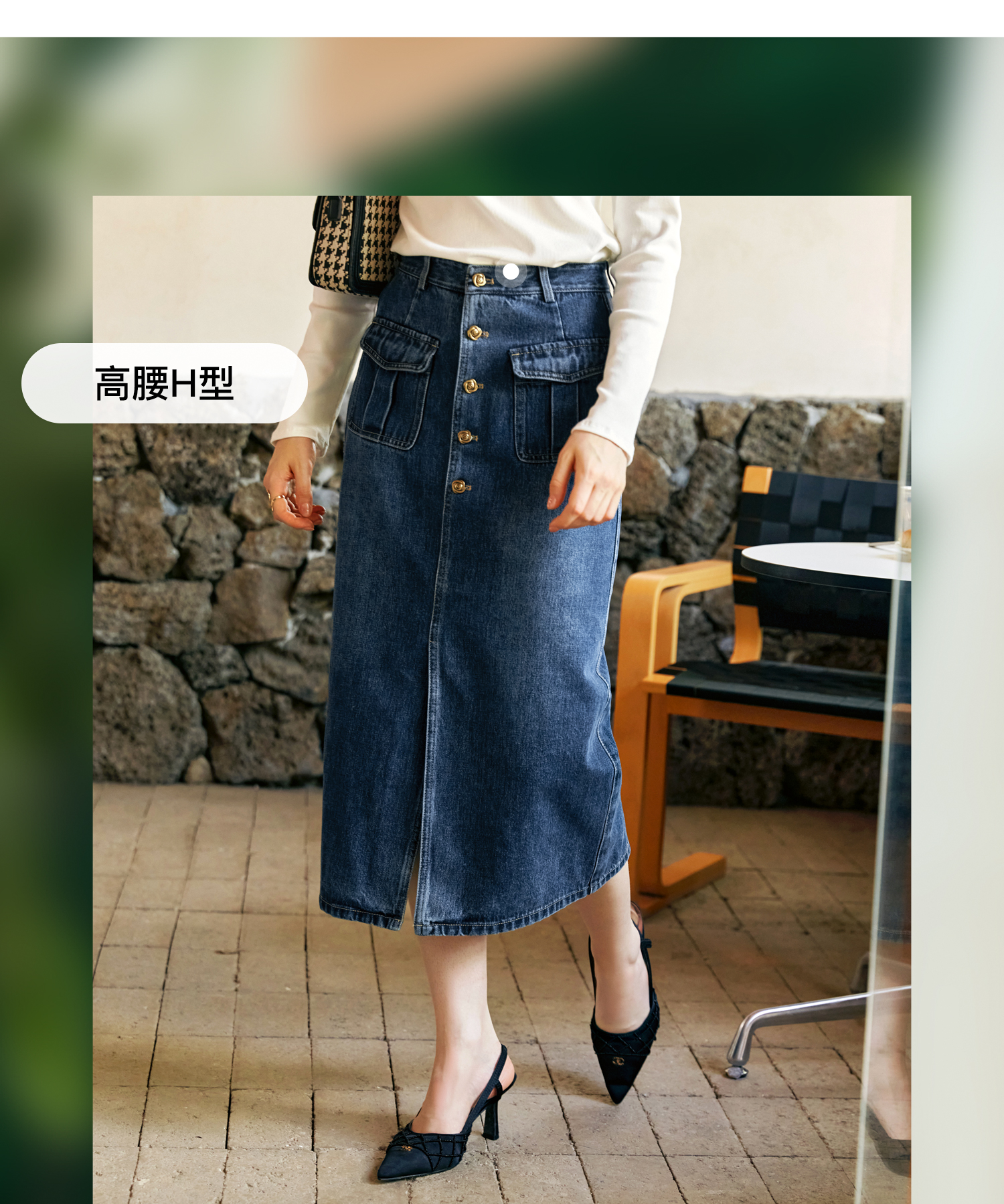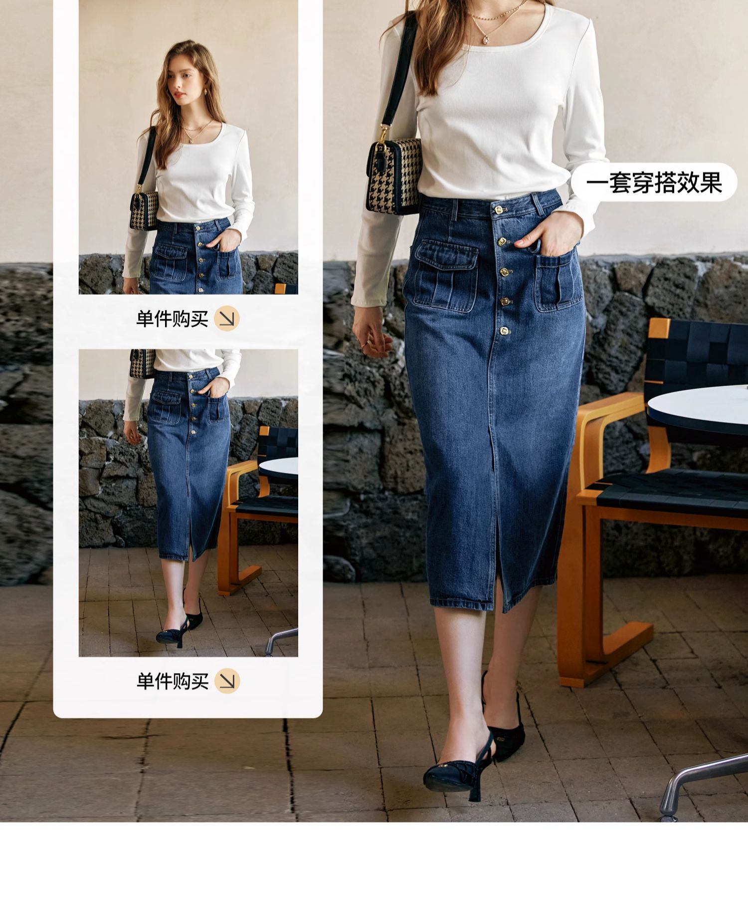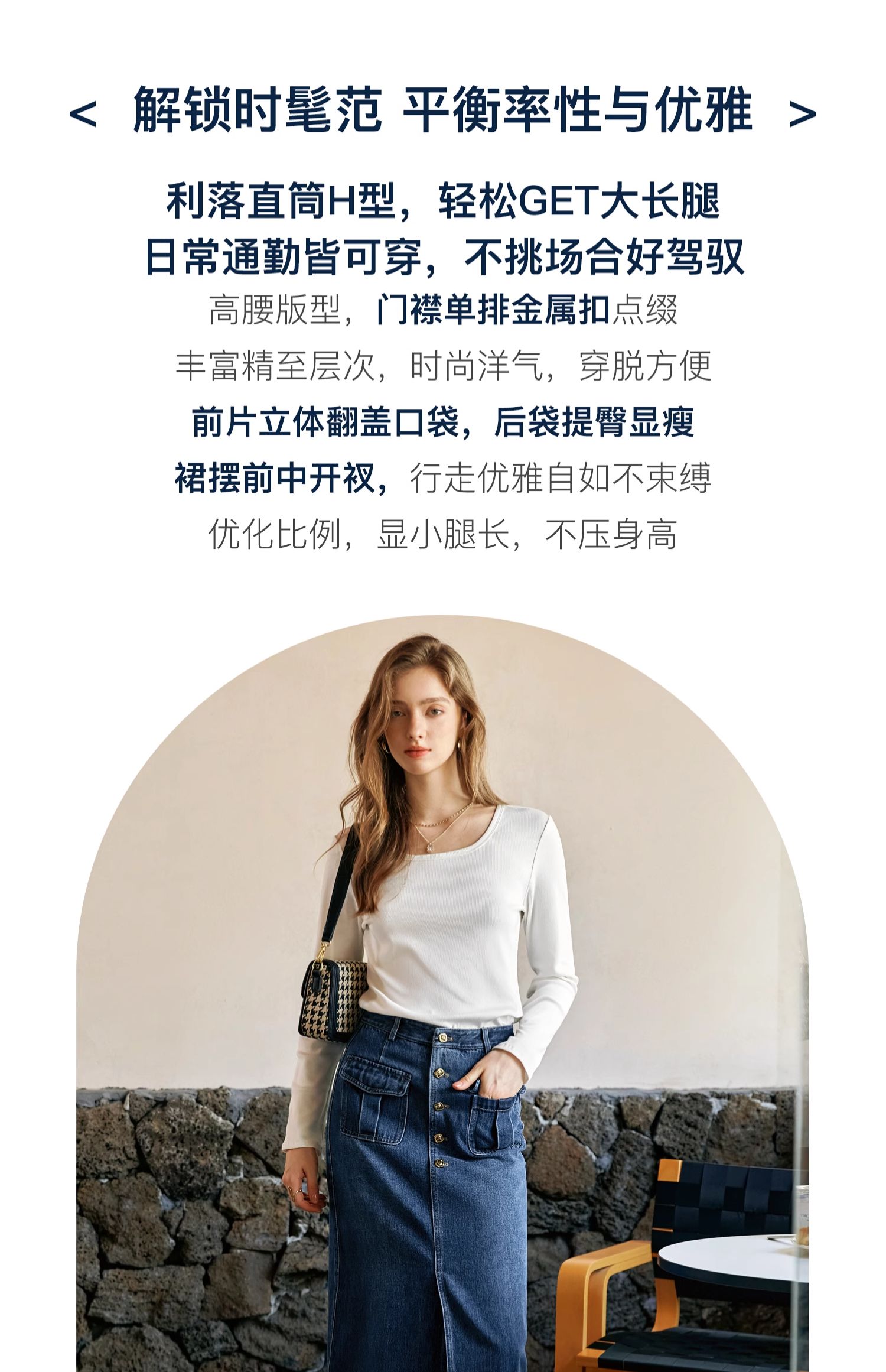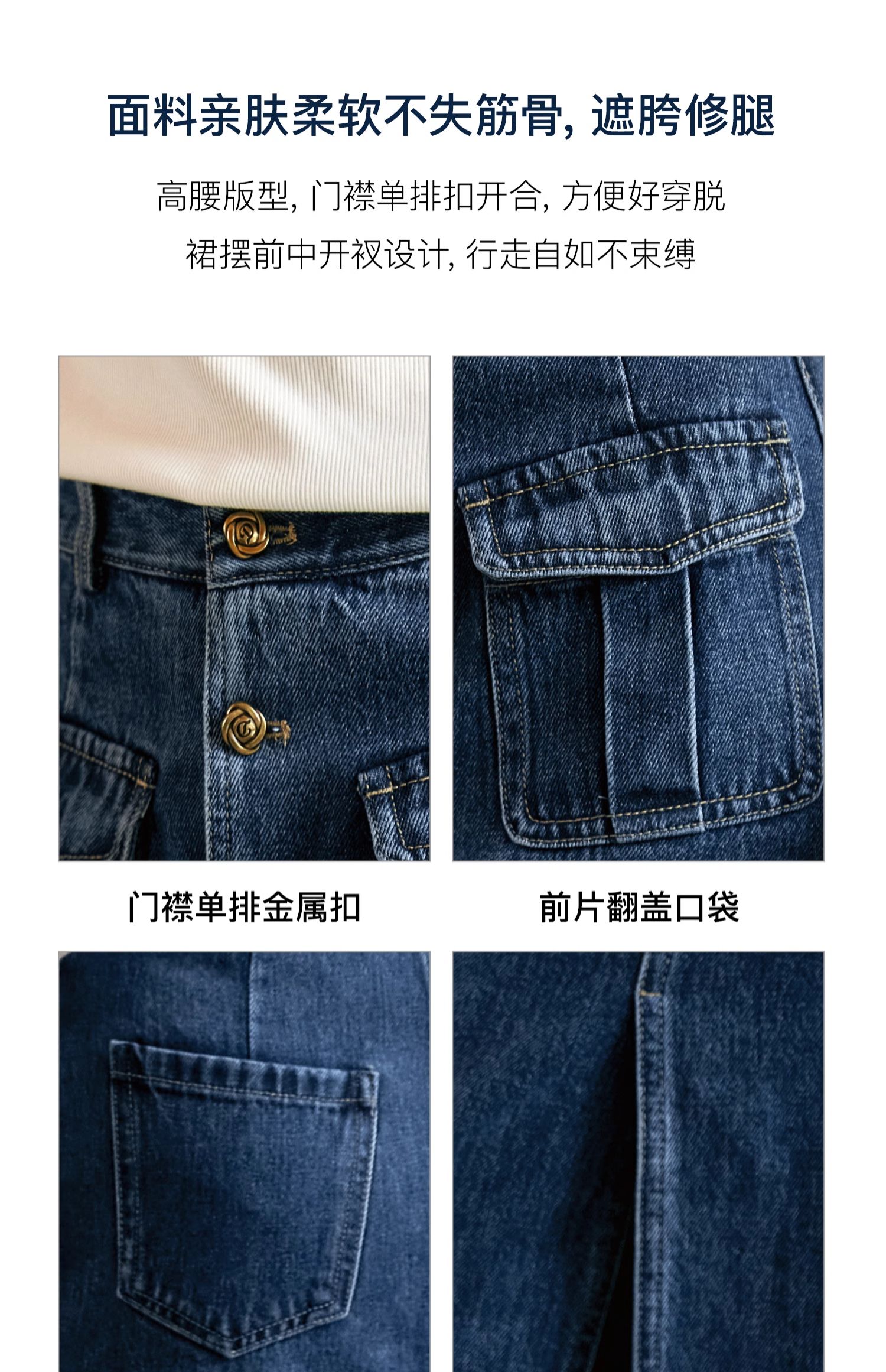 OLrain欧芮儿牛仔半身裙女早秋2024年新款复古高腰通勤显瘦中长裙
