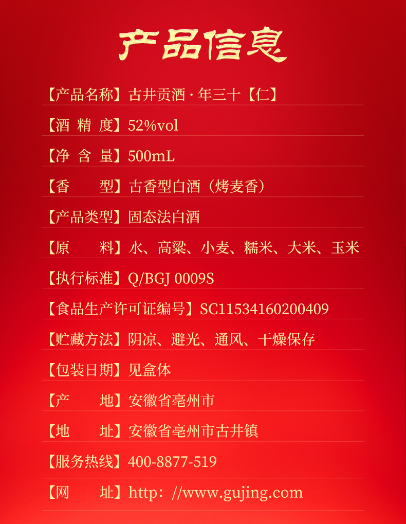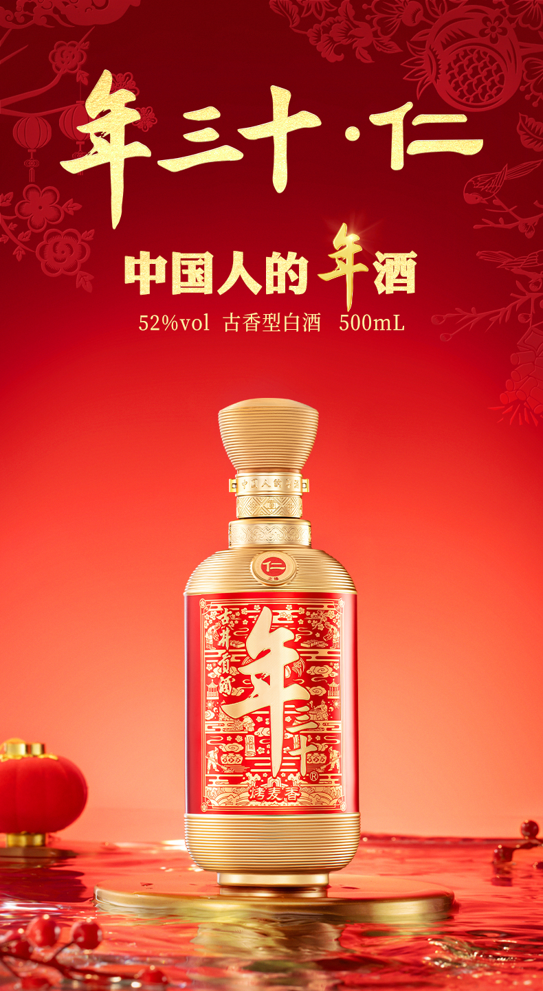 古井贡酒年三十·仁 52度500ml白酒送礼自饮宴请