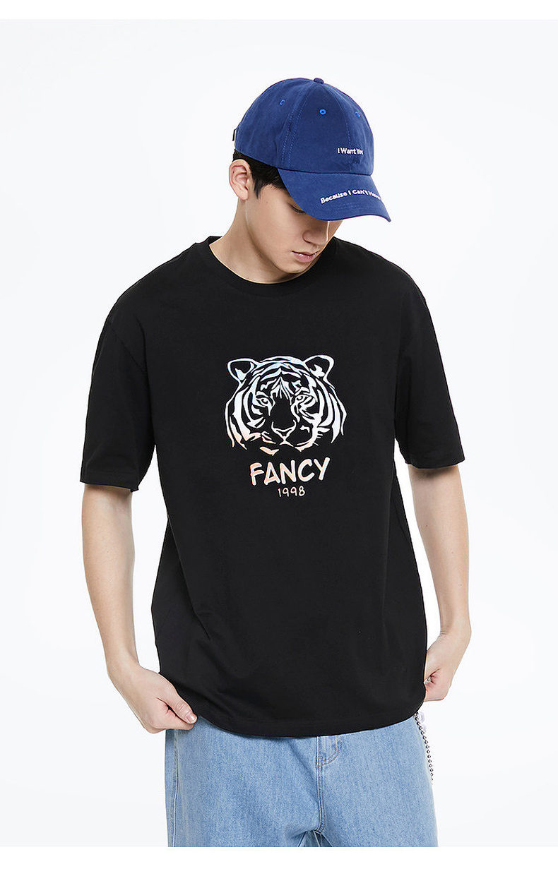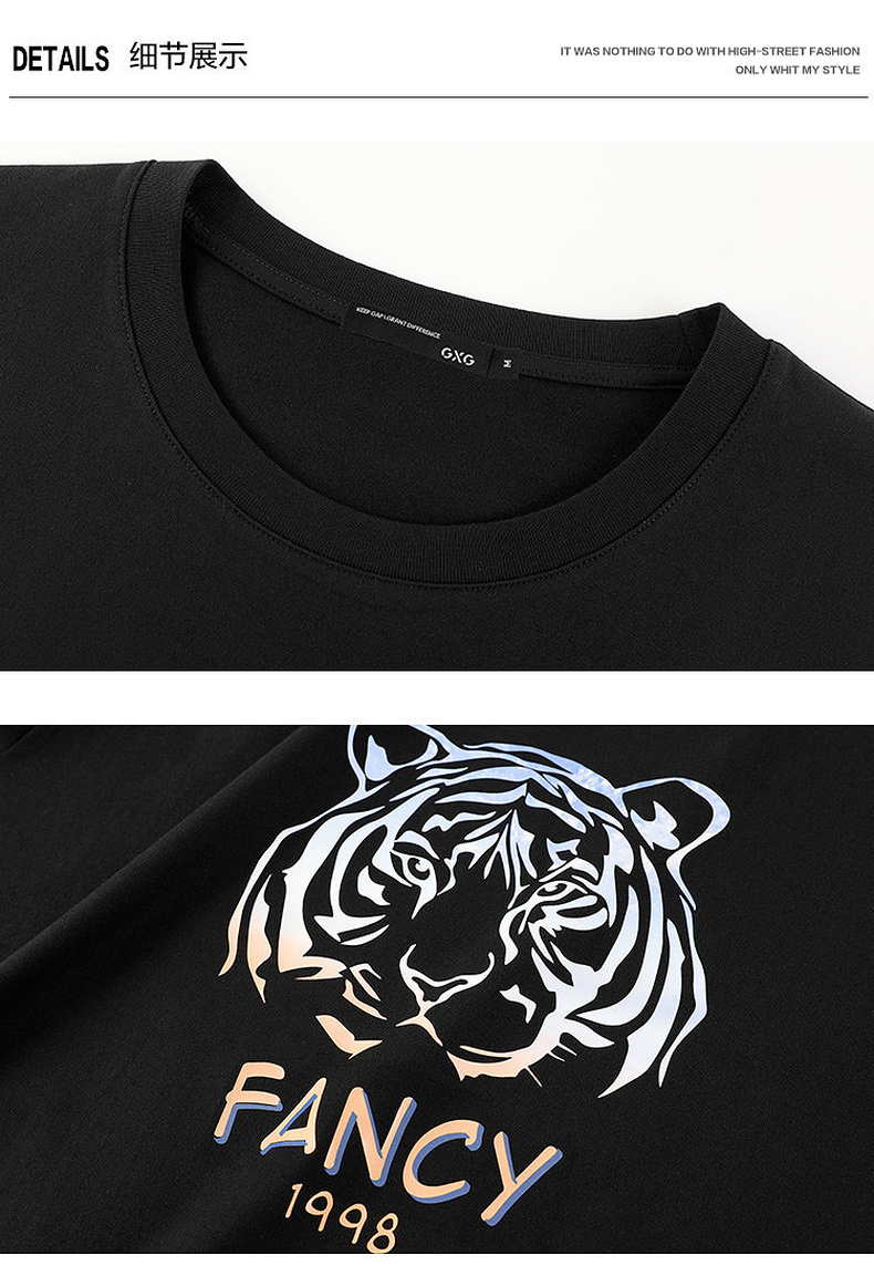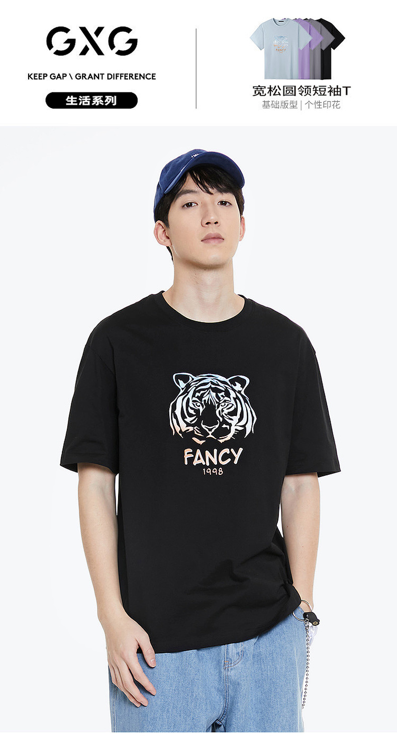 GXG男装【潮流虎头印花】夏季休闲男士t恤纯棉百搭短袖K&C