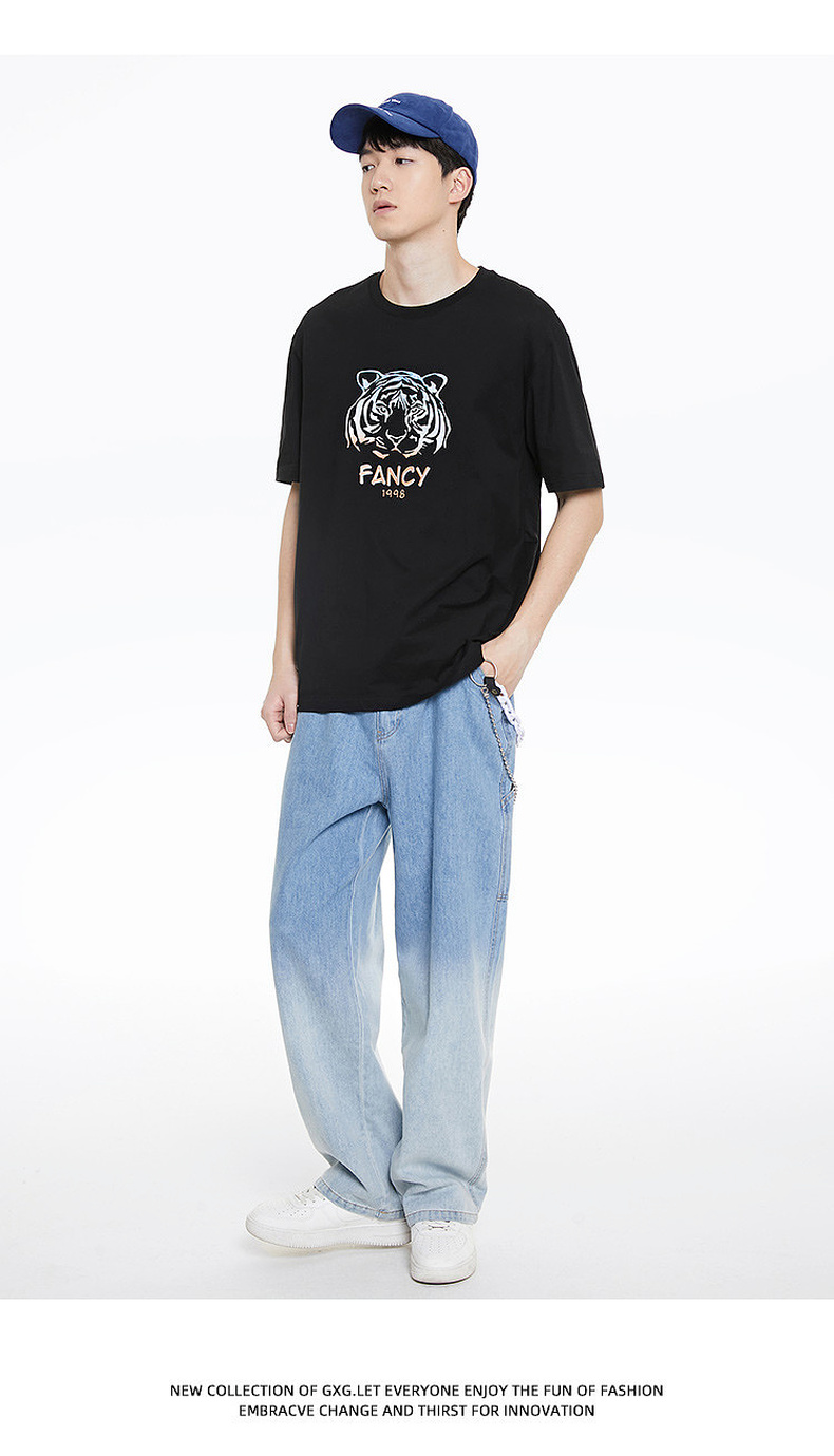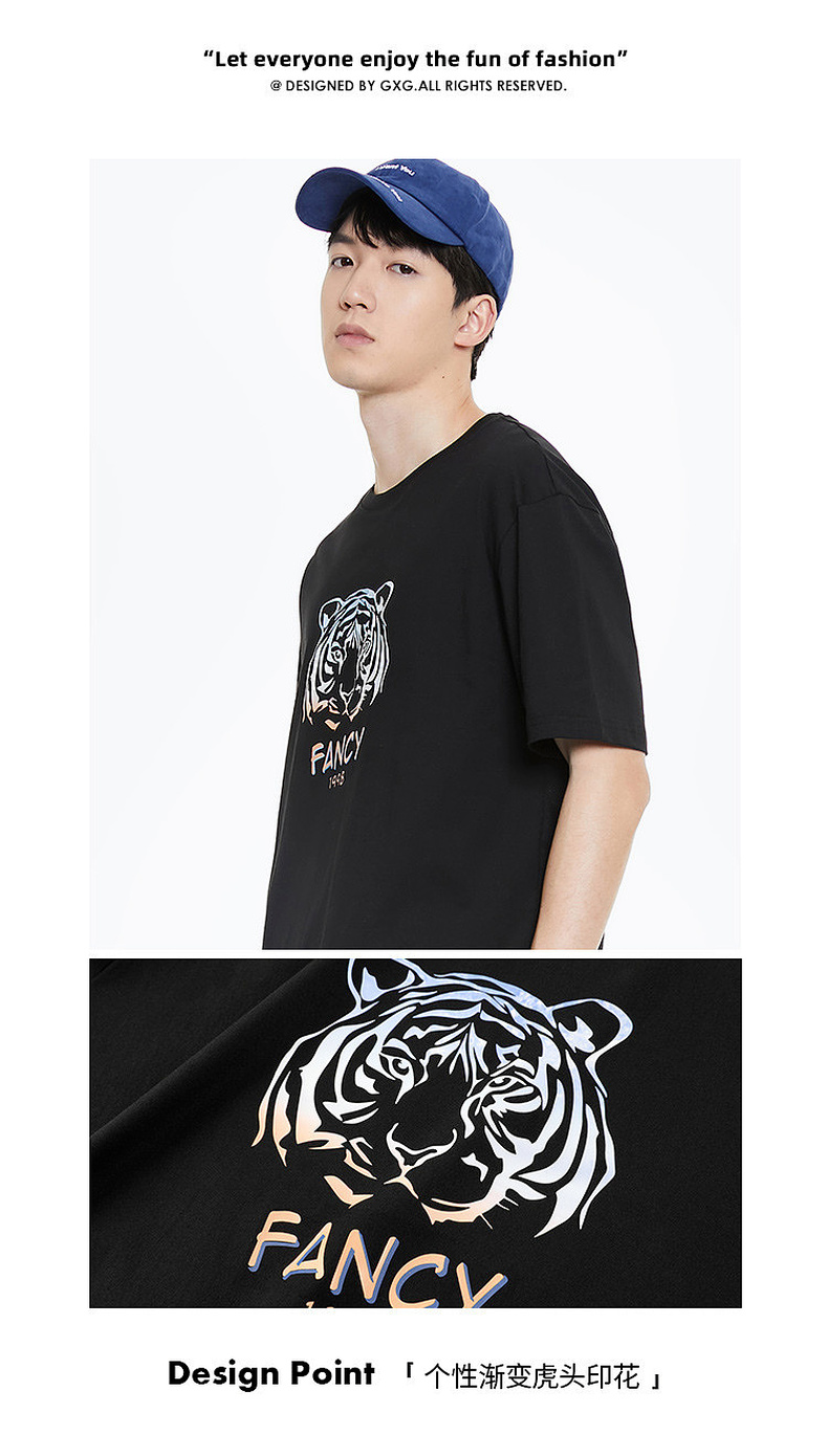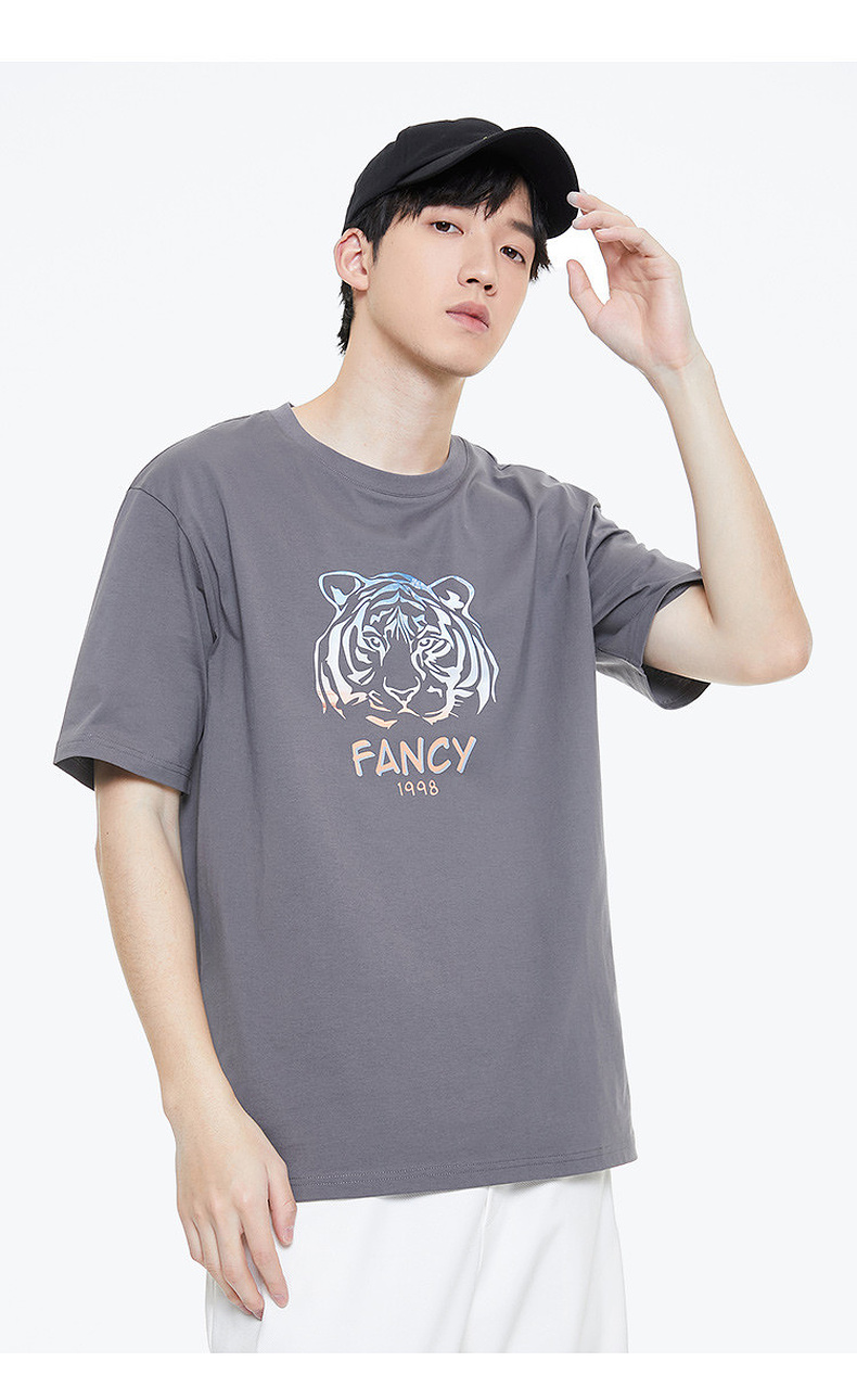 GXG男装【潮流虎头印花】夏季休闲男士t恤纯棉百搭短袖K&C
