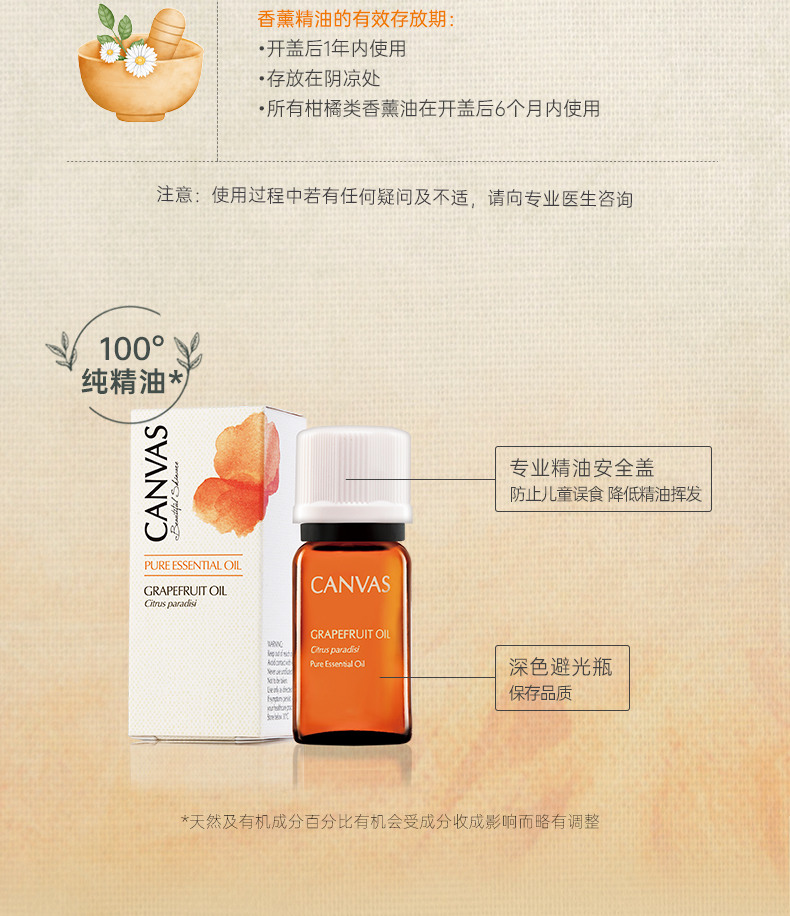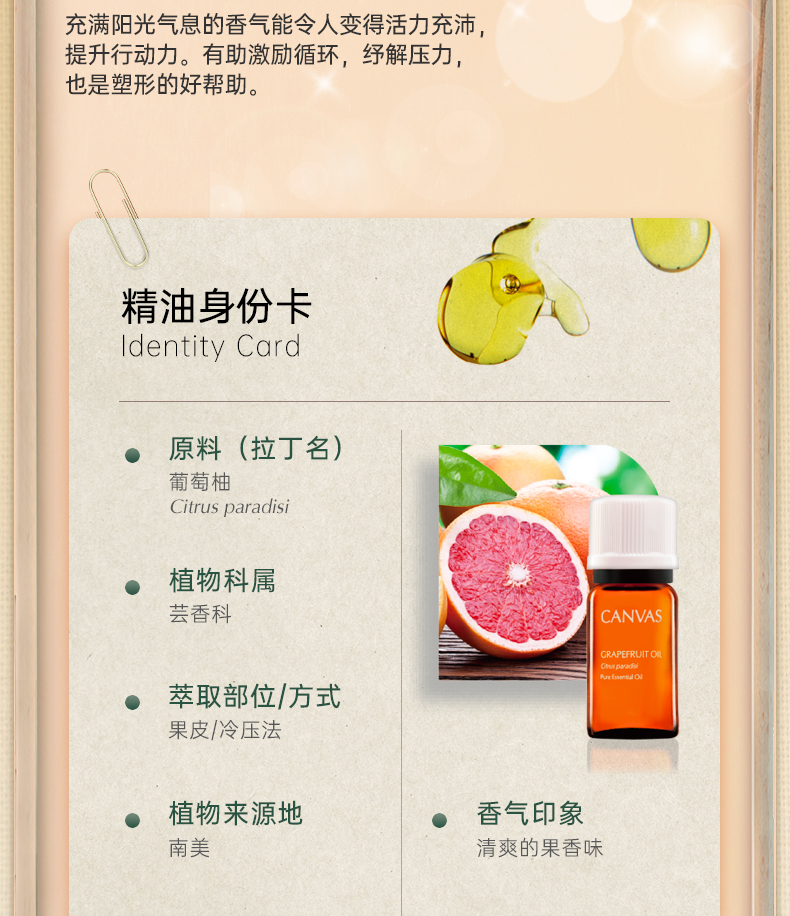 保税直发 CANVAS 卡芬诗 葡萄柚单方香薰精油 12mL