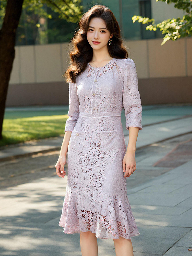 奢姿大码女装2025夏季气质圆领蕾丝连衣裙胖妹妹时尚减龄镂空裙子9951893611