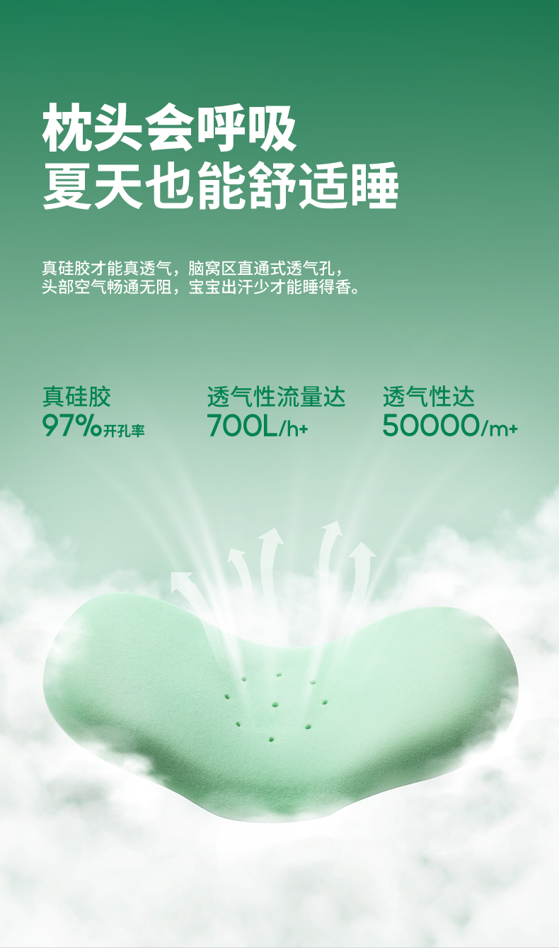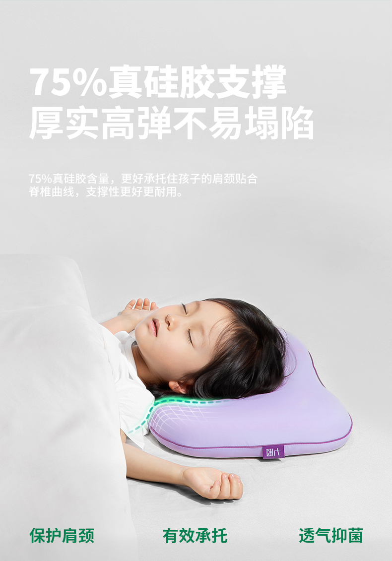 7C七西儿童枕1-6岁宝宝枕婴儿枕6-16岁以上青少年枕高温水洗硅胶