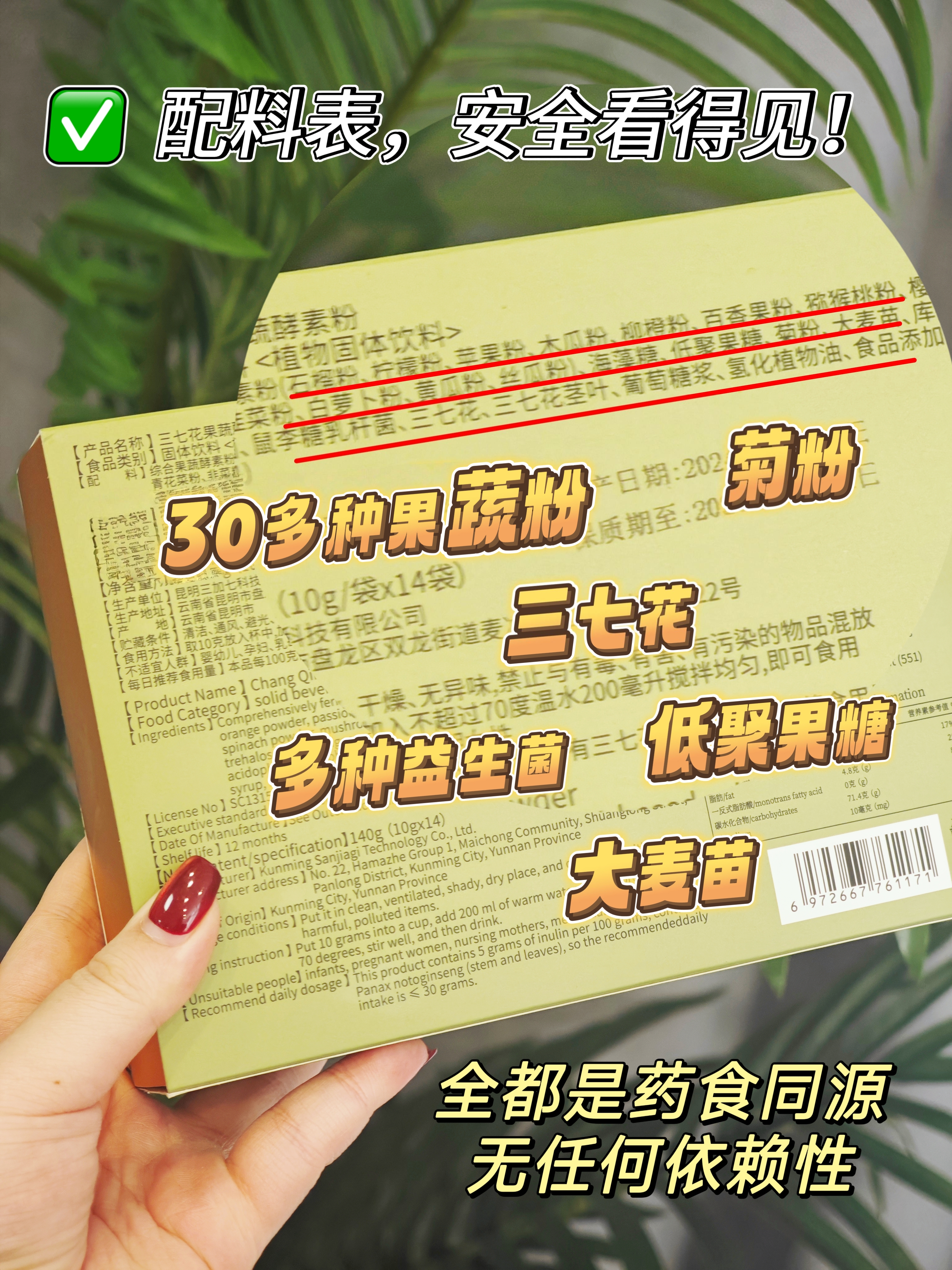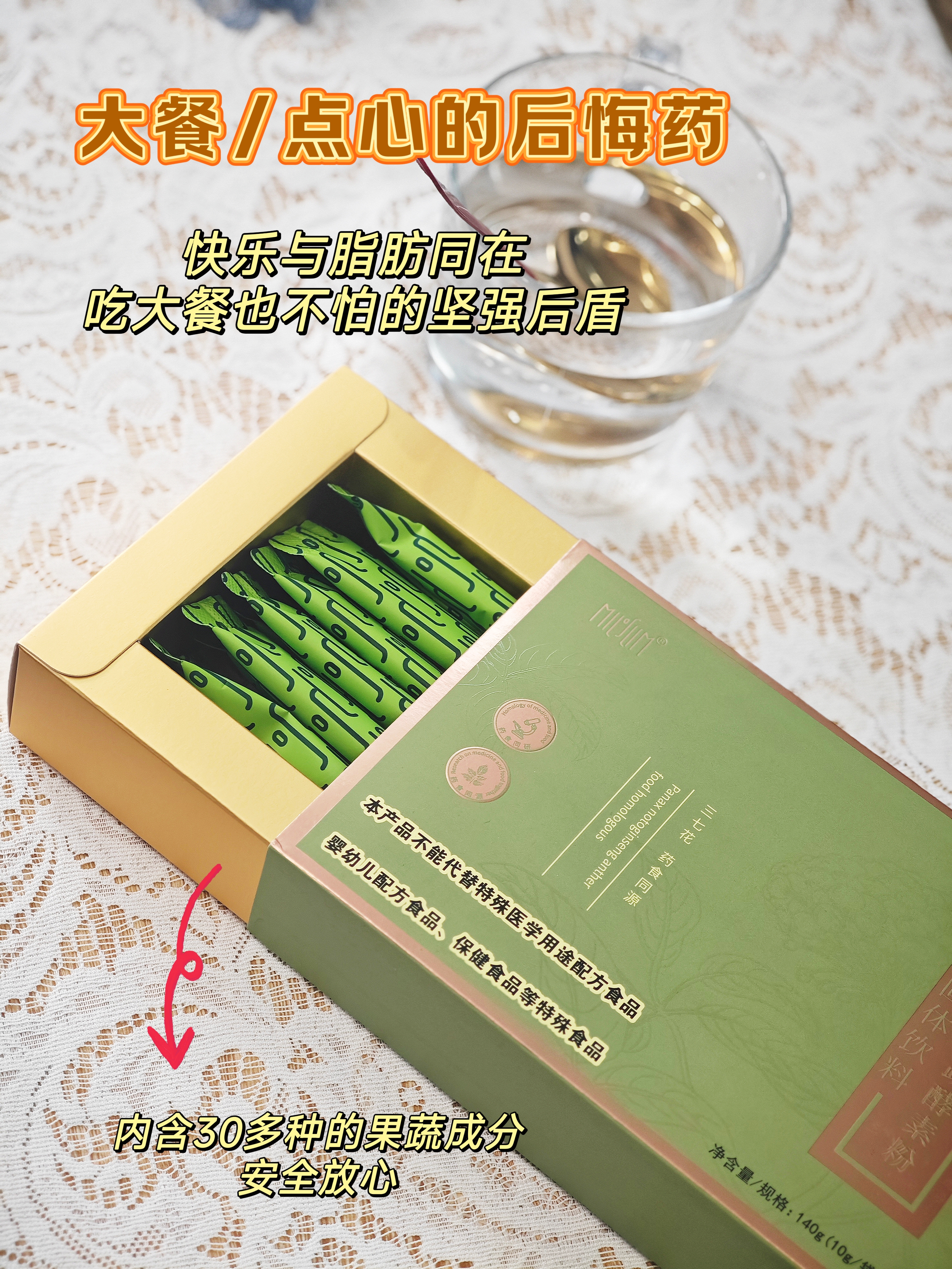 【常清粉】以三七为核心制品!粉质更细腻,喝起来会有点微苦!含三七花和五十种果蔬低温发酵益生菌,吃出来的肠道健康!配料干净,一份10g*14袋*3盒!【TJ-J】