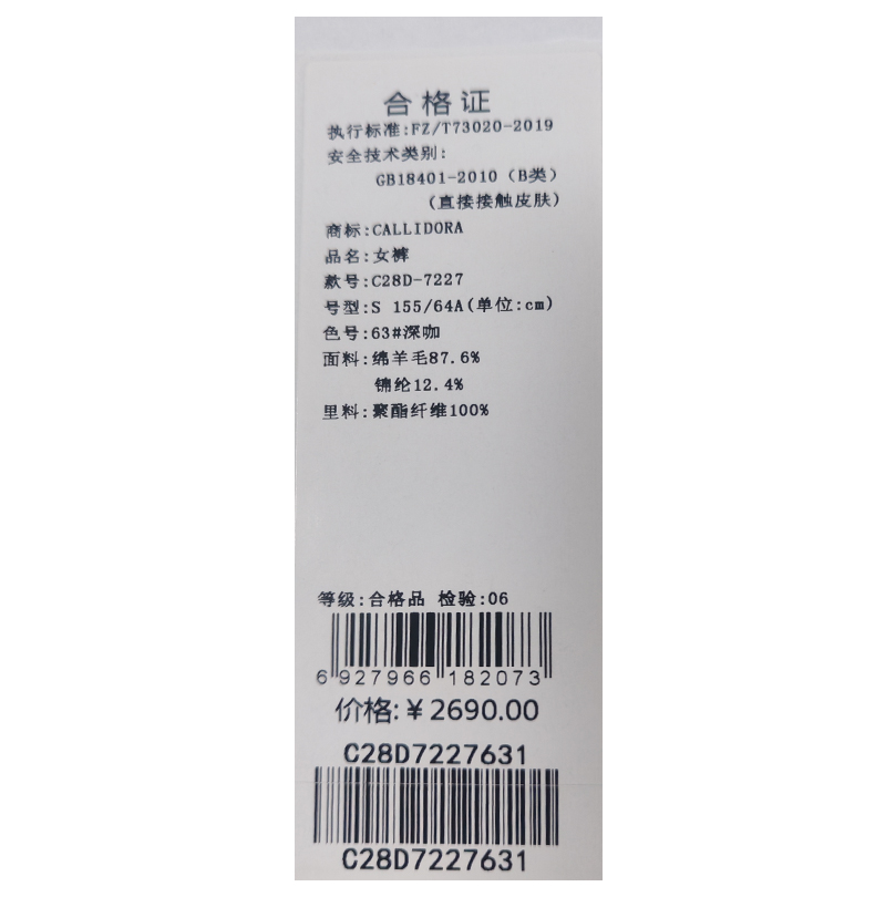 卡莉朵拉女裤C28D7227