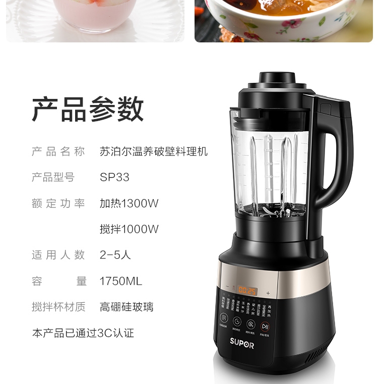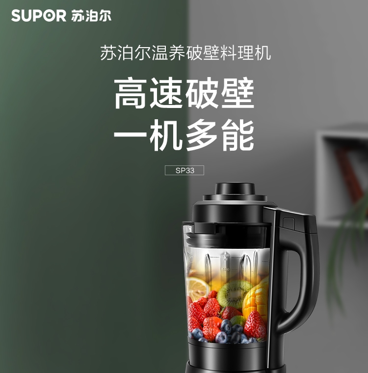 苏泊尔( SUPOR)破壁机多功能家用豆浆机加热破壁料理机搅拌机辅食机榨汁机绞肉机 SP33 (线下同款)