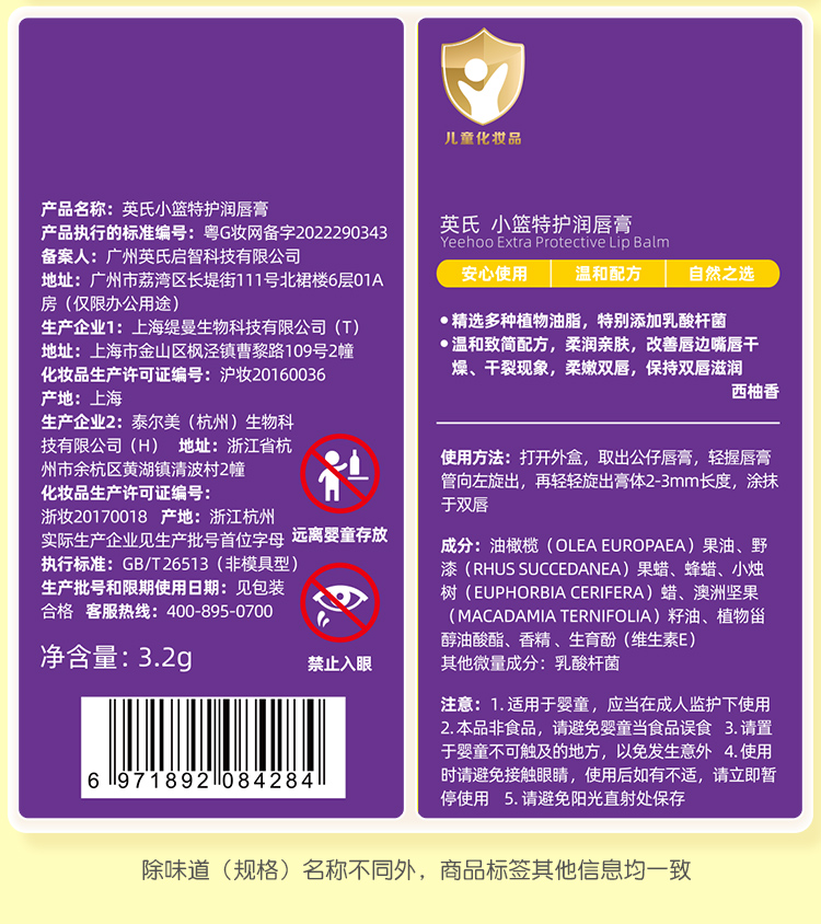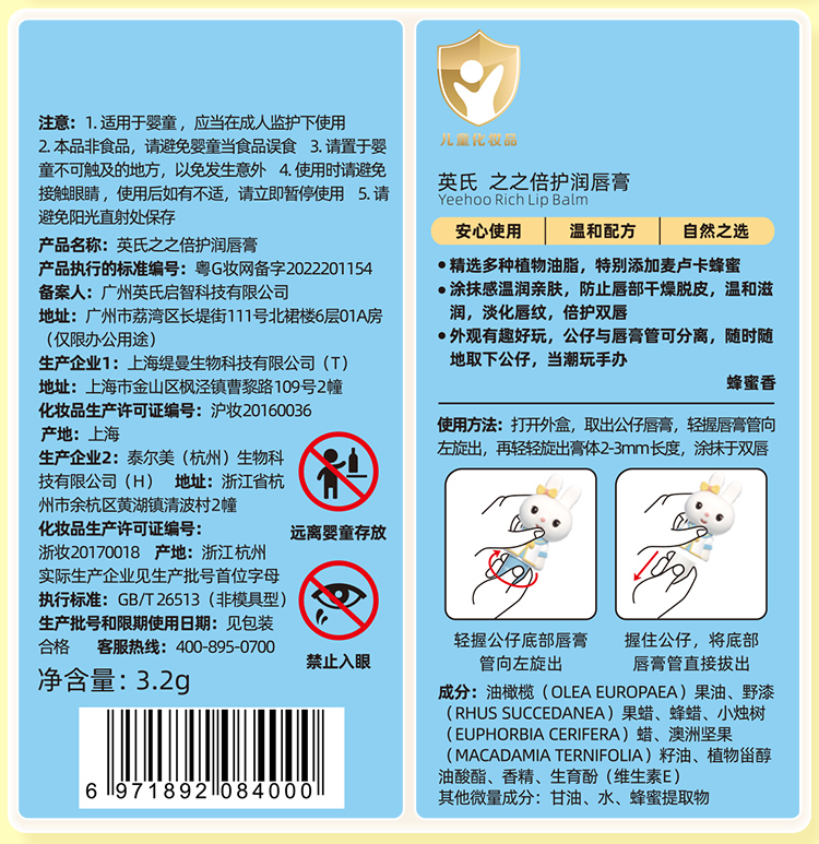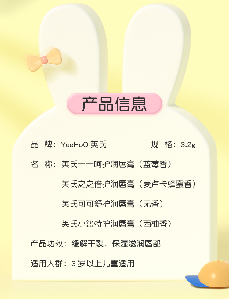 英氏兔子润唇膏儿童唇膏小男女孩专用宝宝滋润保湿护唇防干裂玩偶