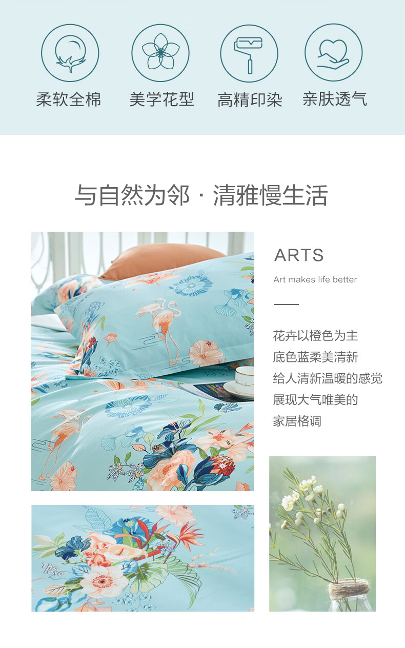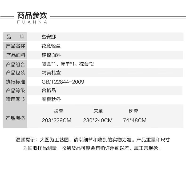 【纯棉】富安娜床单四件/花意轻尘【203*229cm】 XHR