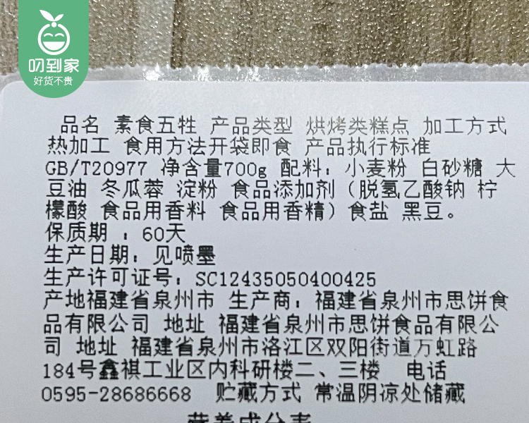 泉珍思饼素食五牲(700g/盒 5个)生产日期:3月27日 保质期:60天