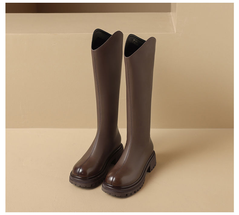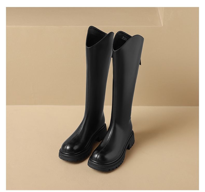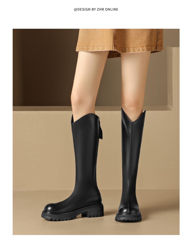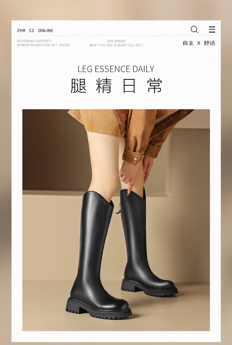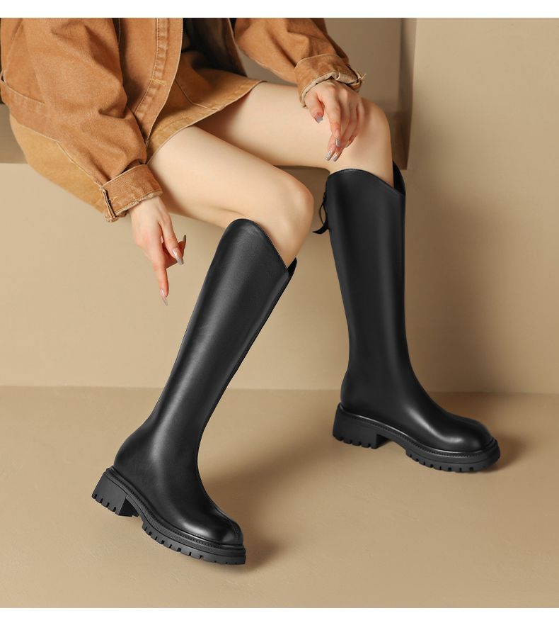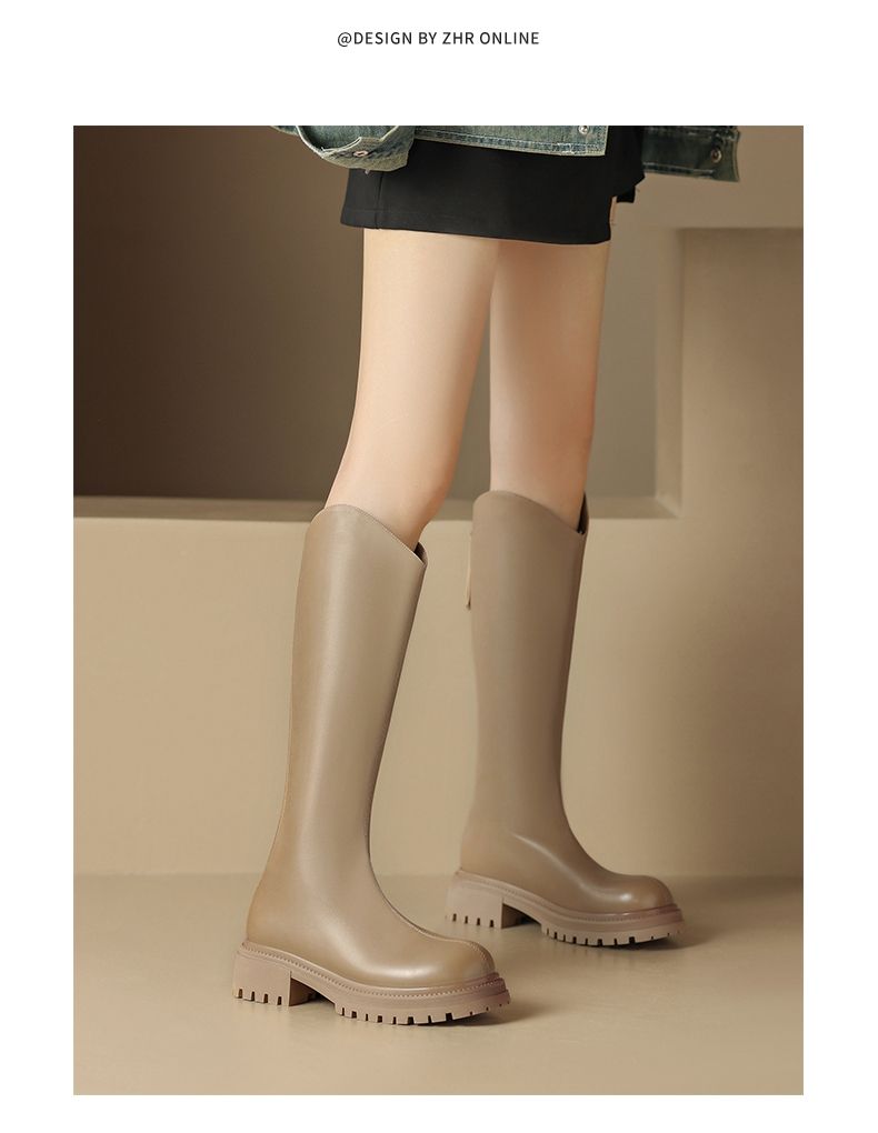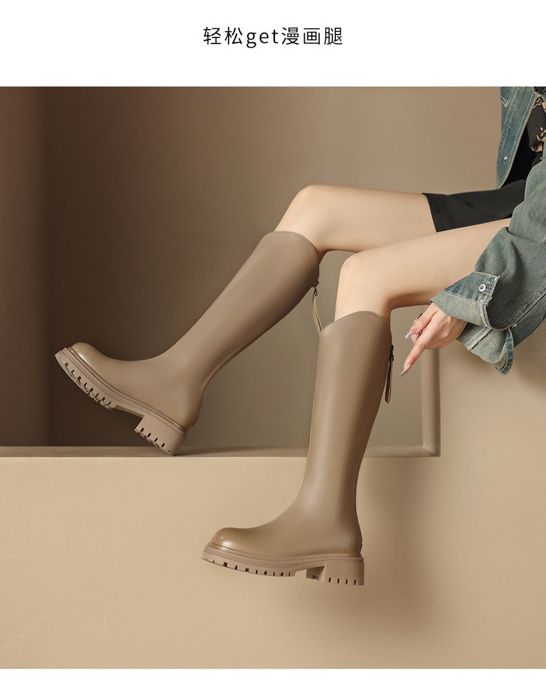 ZHR厚底长筒靴加绒保暖女靴2023复古美拉德不过膝瘦瘦靴V口骑士靴