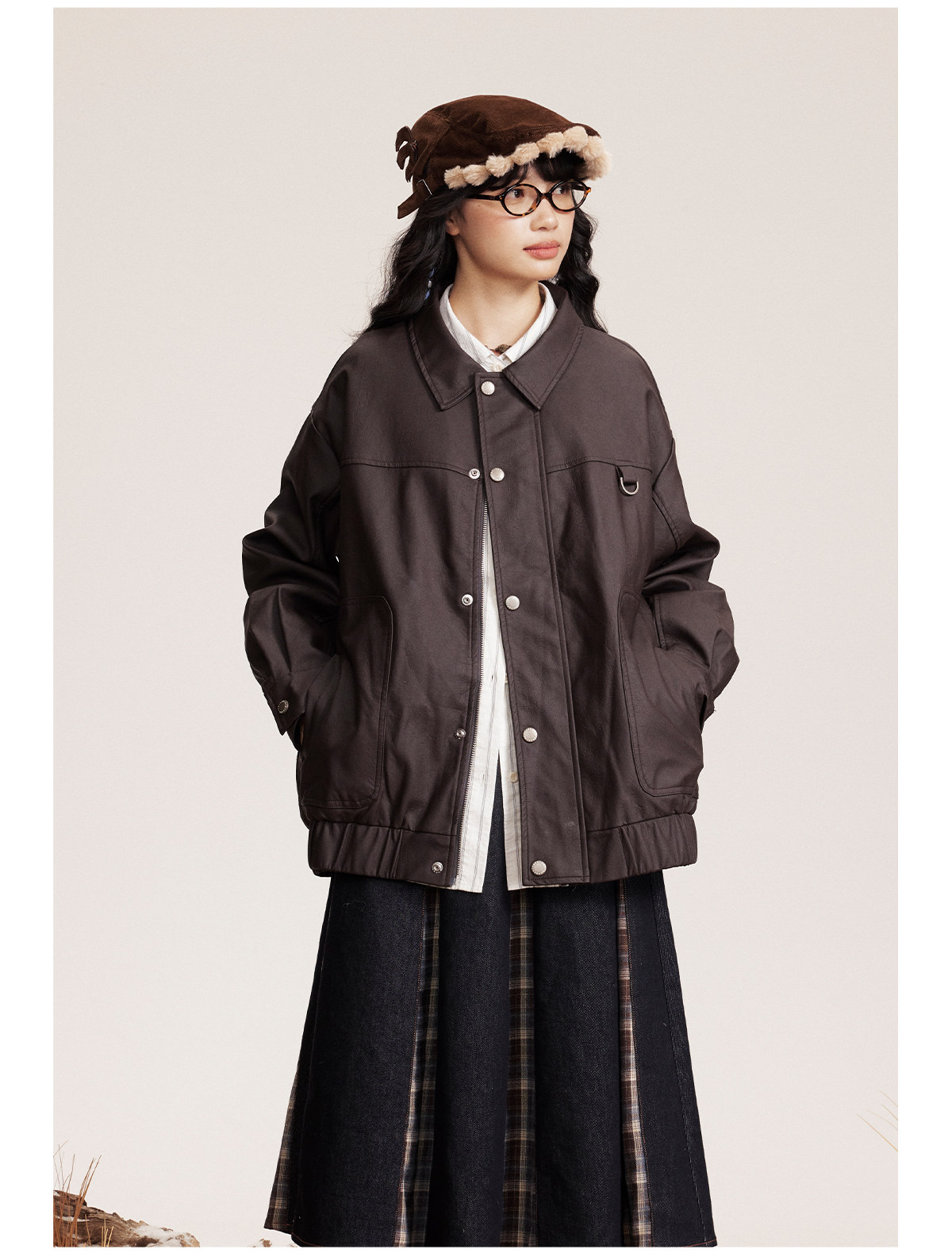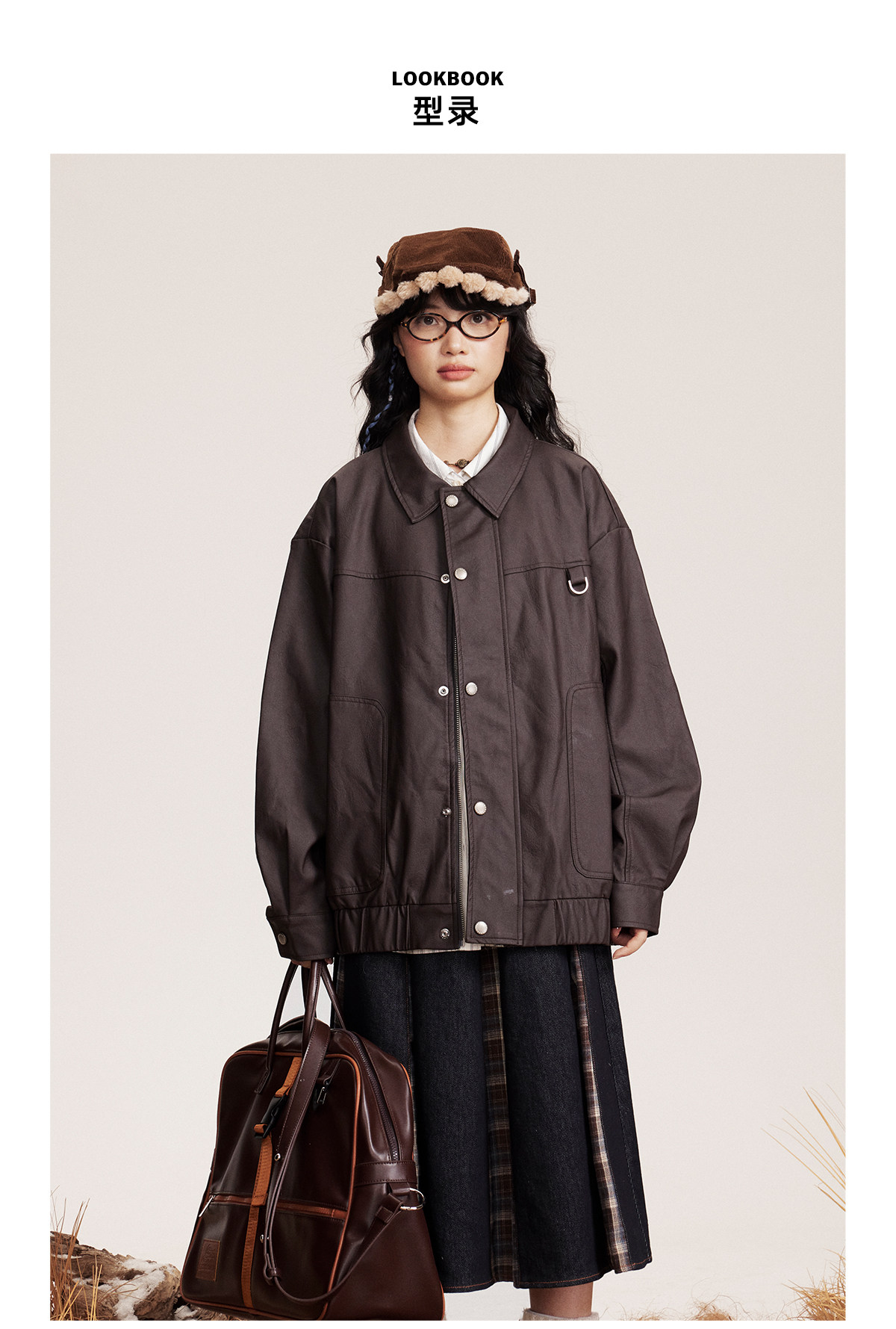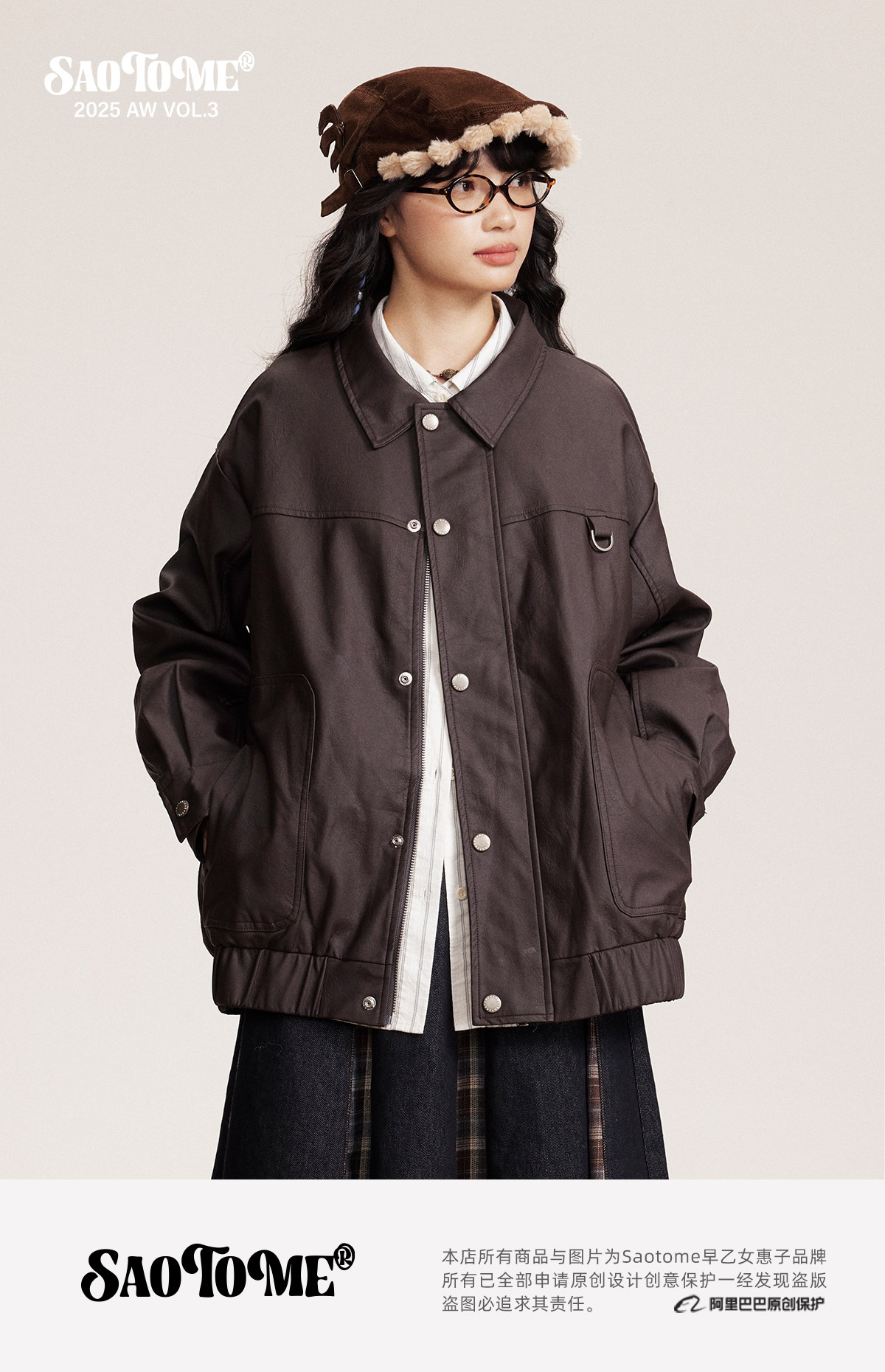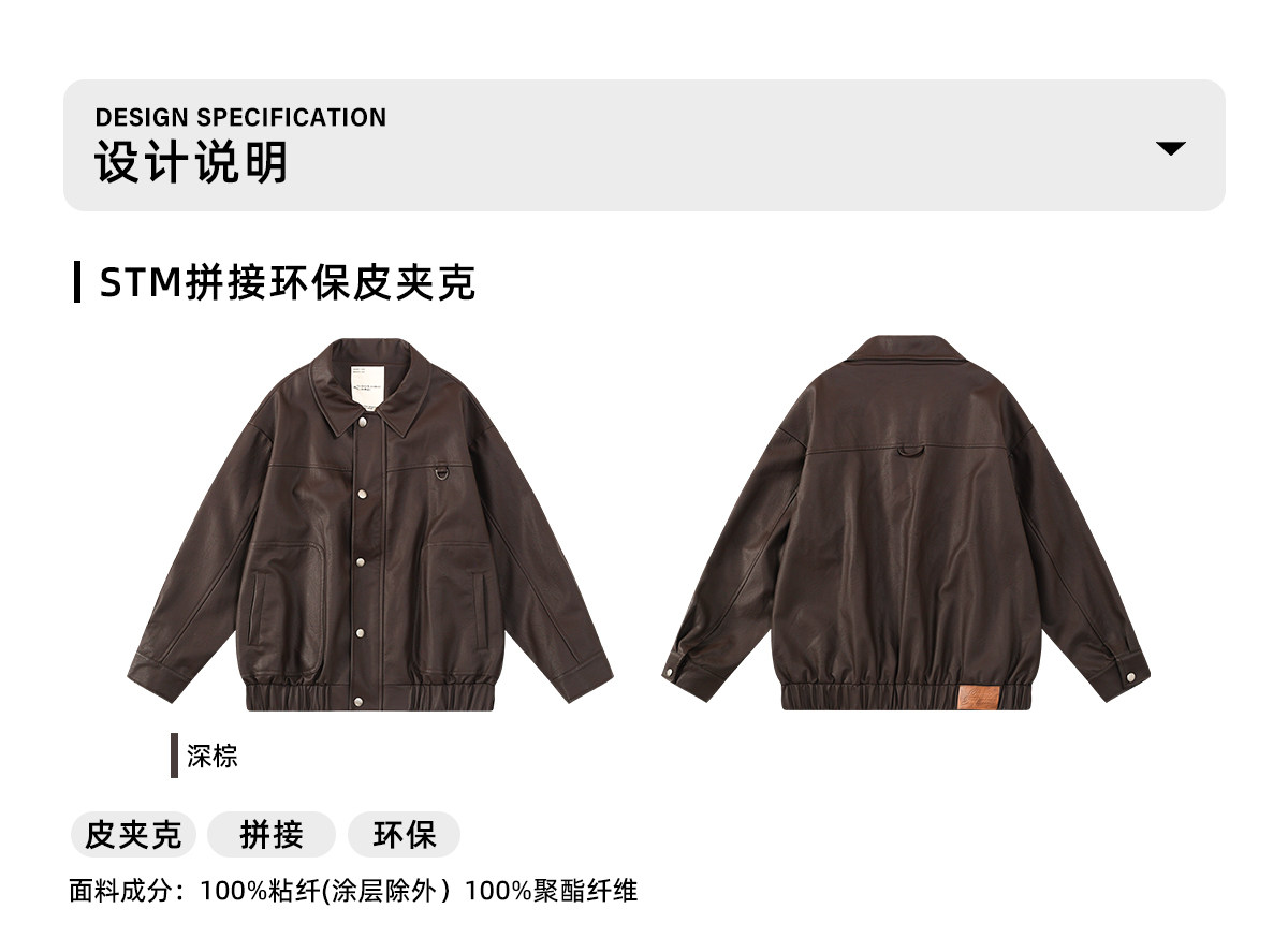 早乙女惠子saotome/STMJK0518/STM拼接环保皮夹克