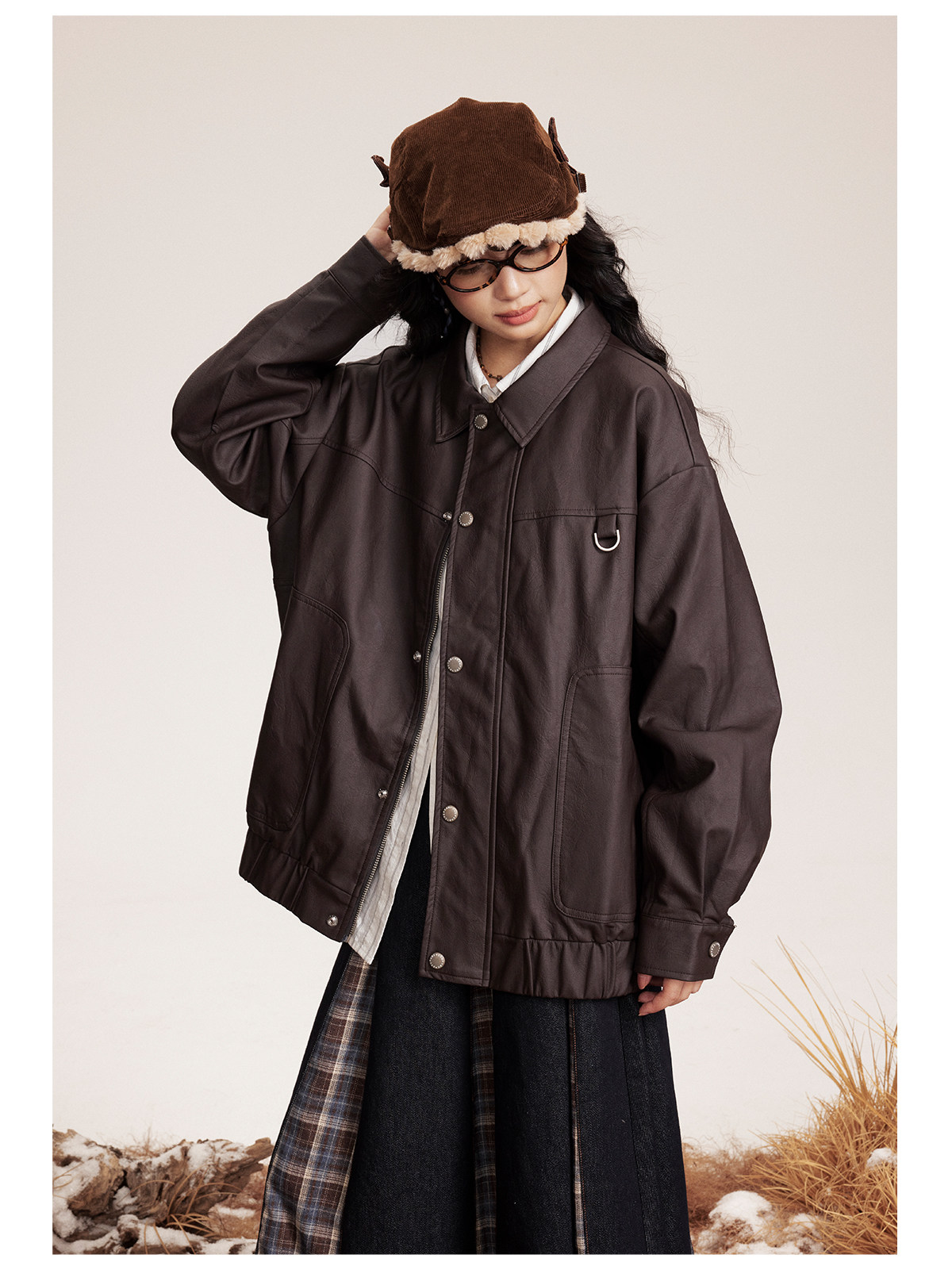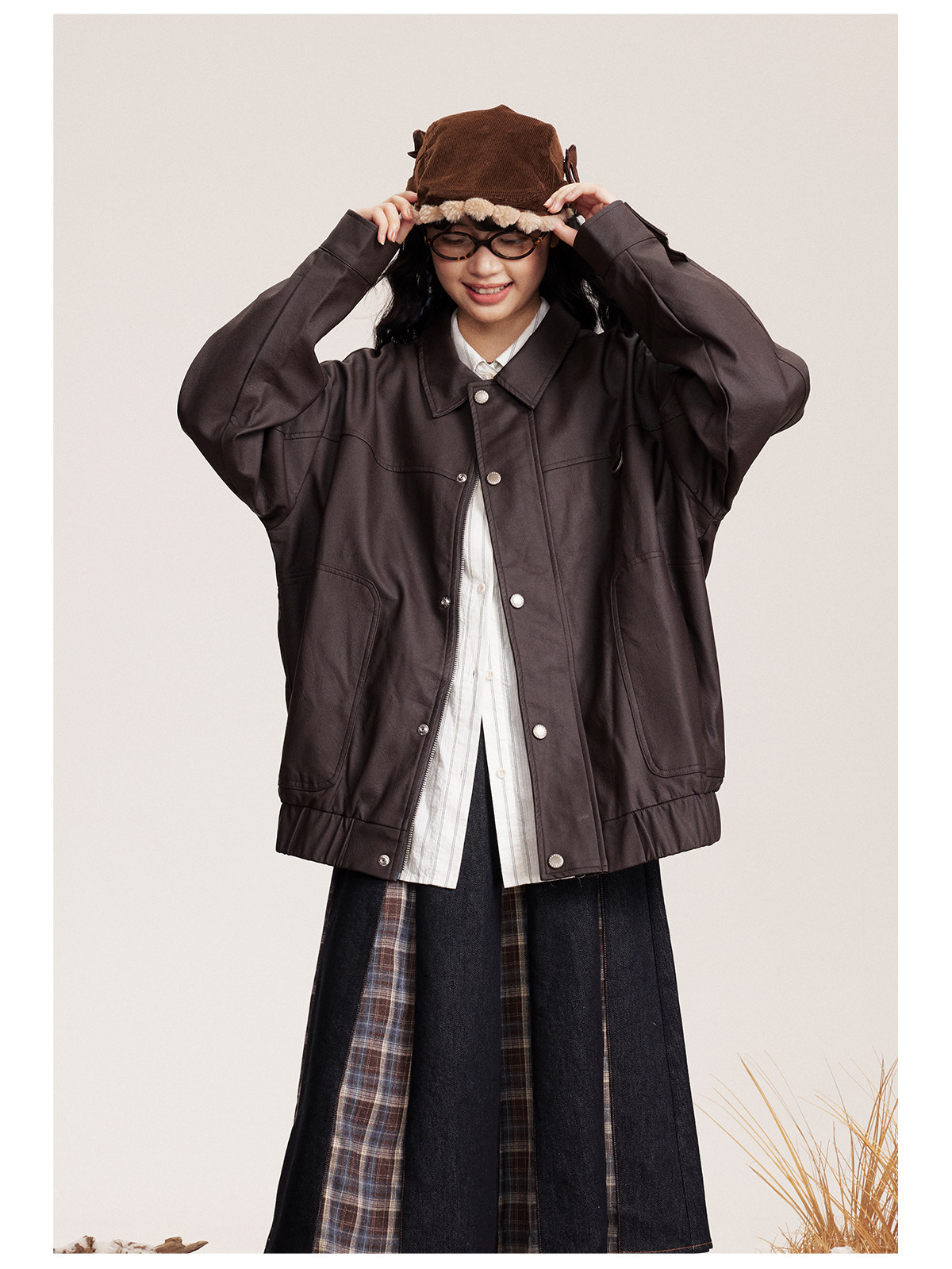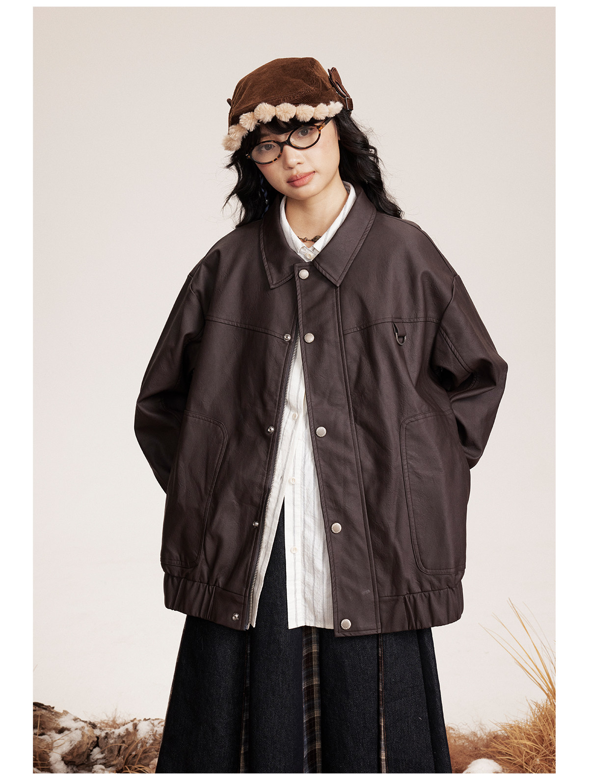 早乙女惠子saotome/STMJK0518/STM拼接环保皮夹克
