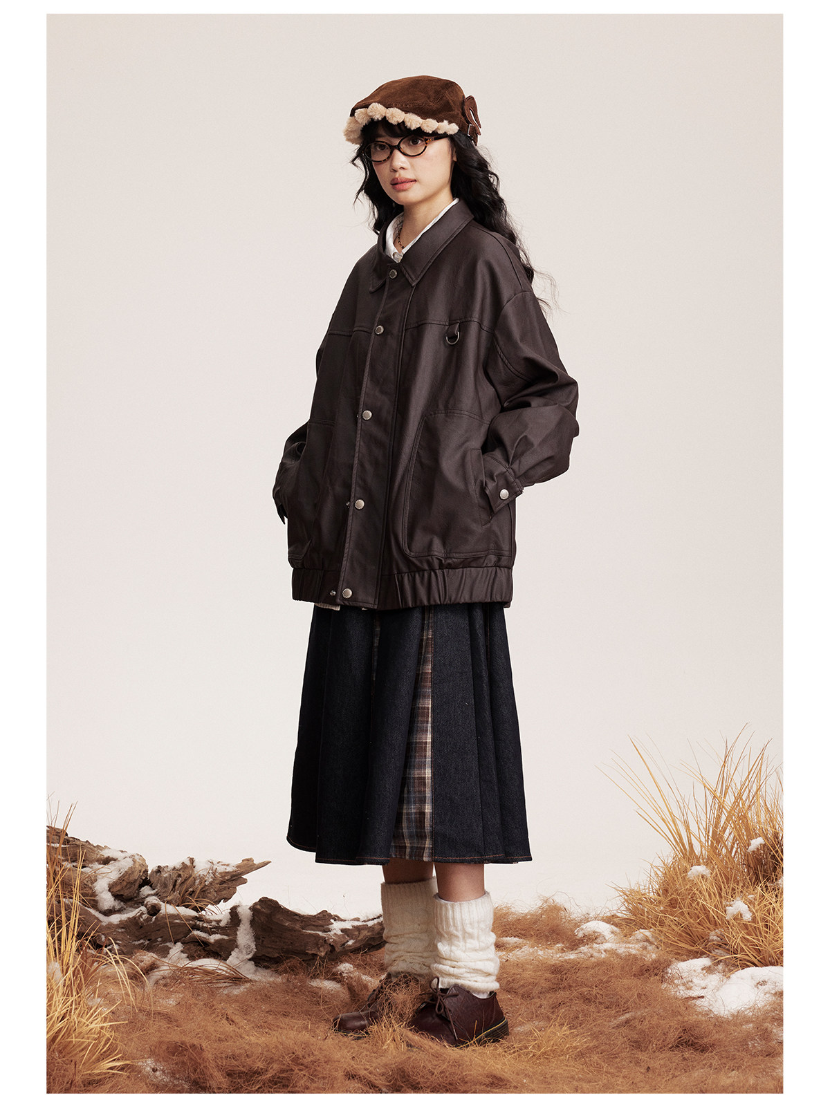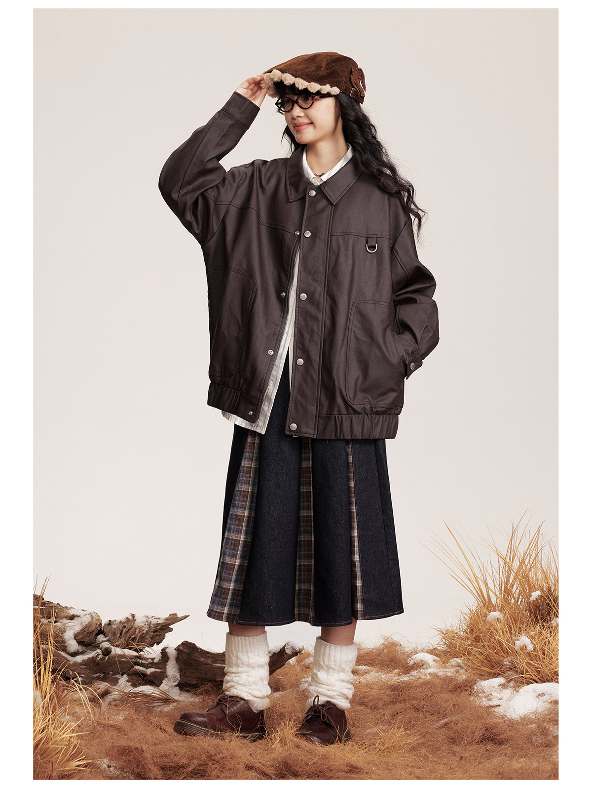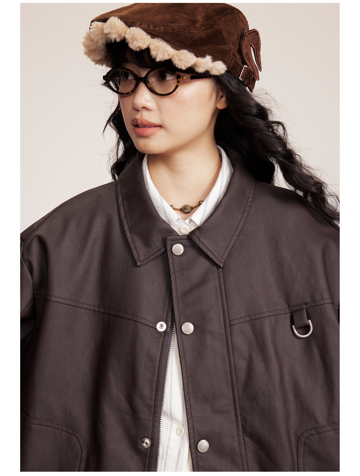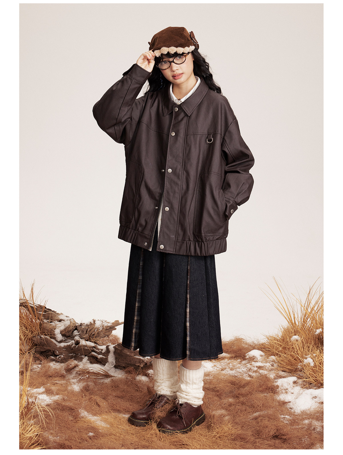 早乙女惠子saotome/STMJK0518/STM拼接环保皮夹克