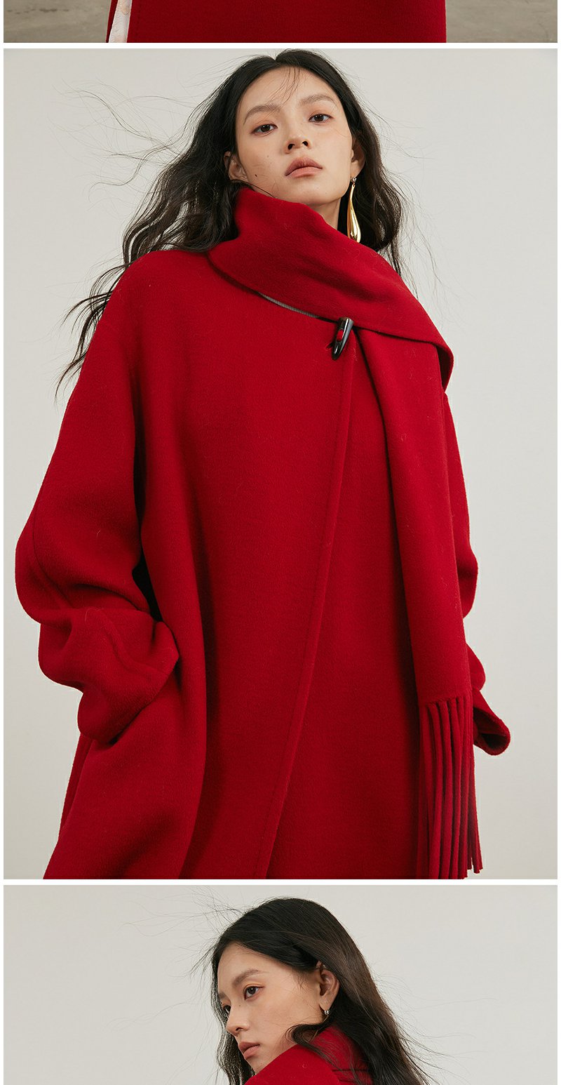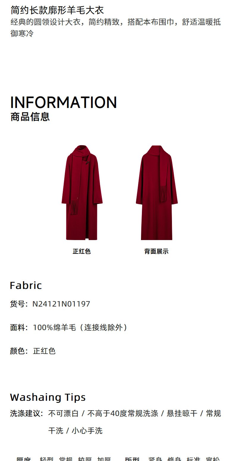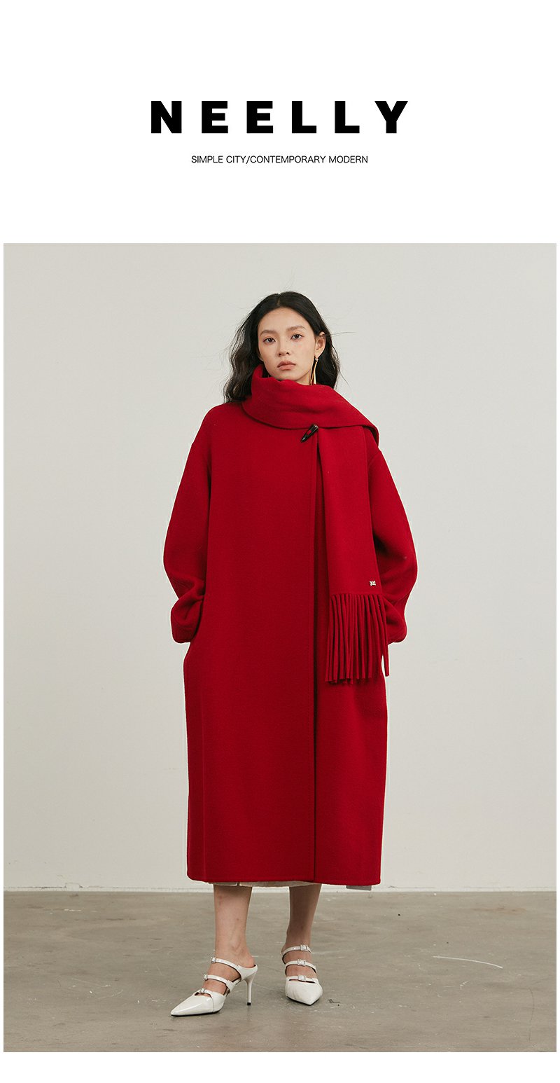 NEELLY纳俪商场同款冬季新款气质简约羊毛呢大衣女宽松显瘦长外套N24121N01197