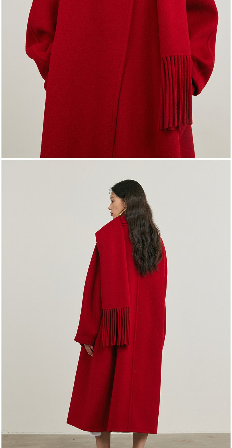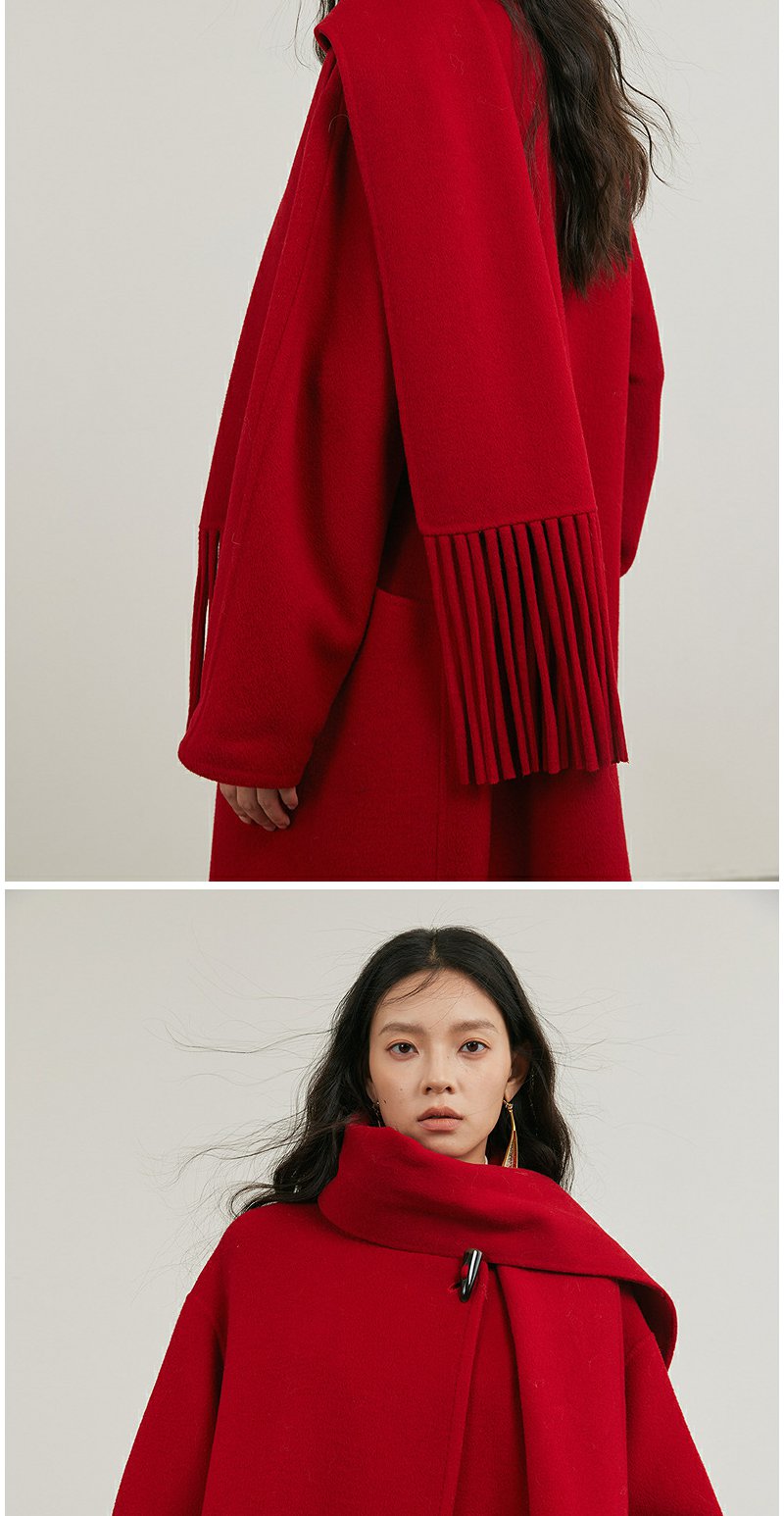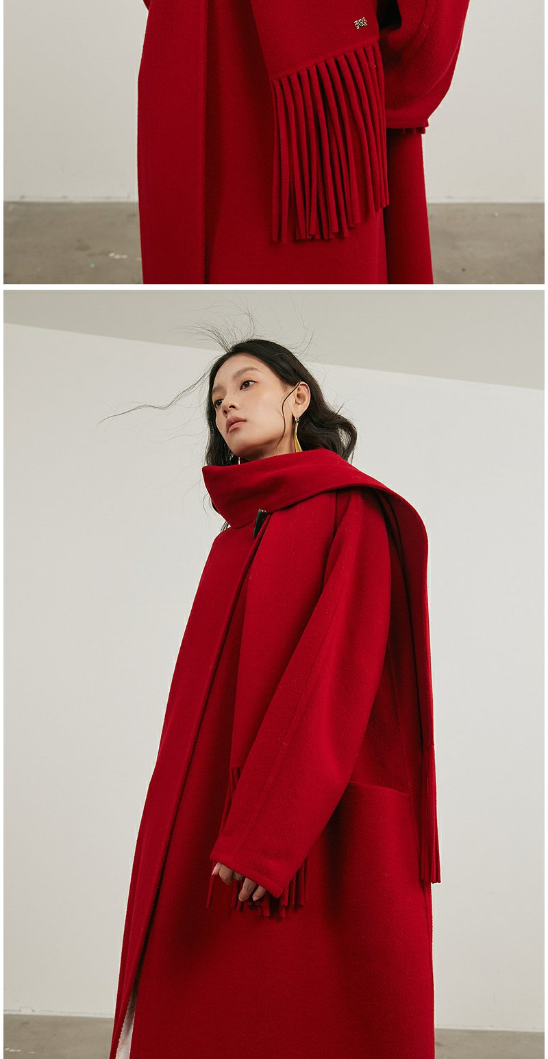 NEELLY纳俪商场同款冬季新款气质简约羊毛呢大衣女宽松显瘦长外套N24121N01197