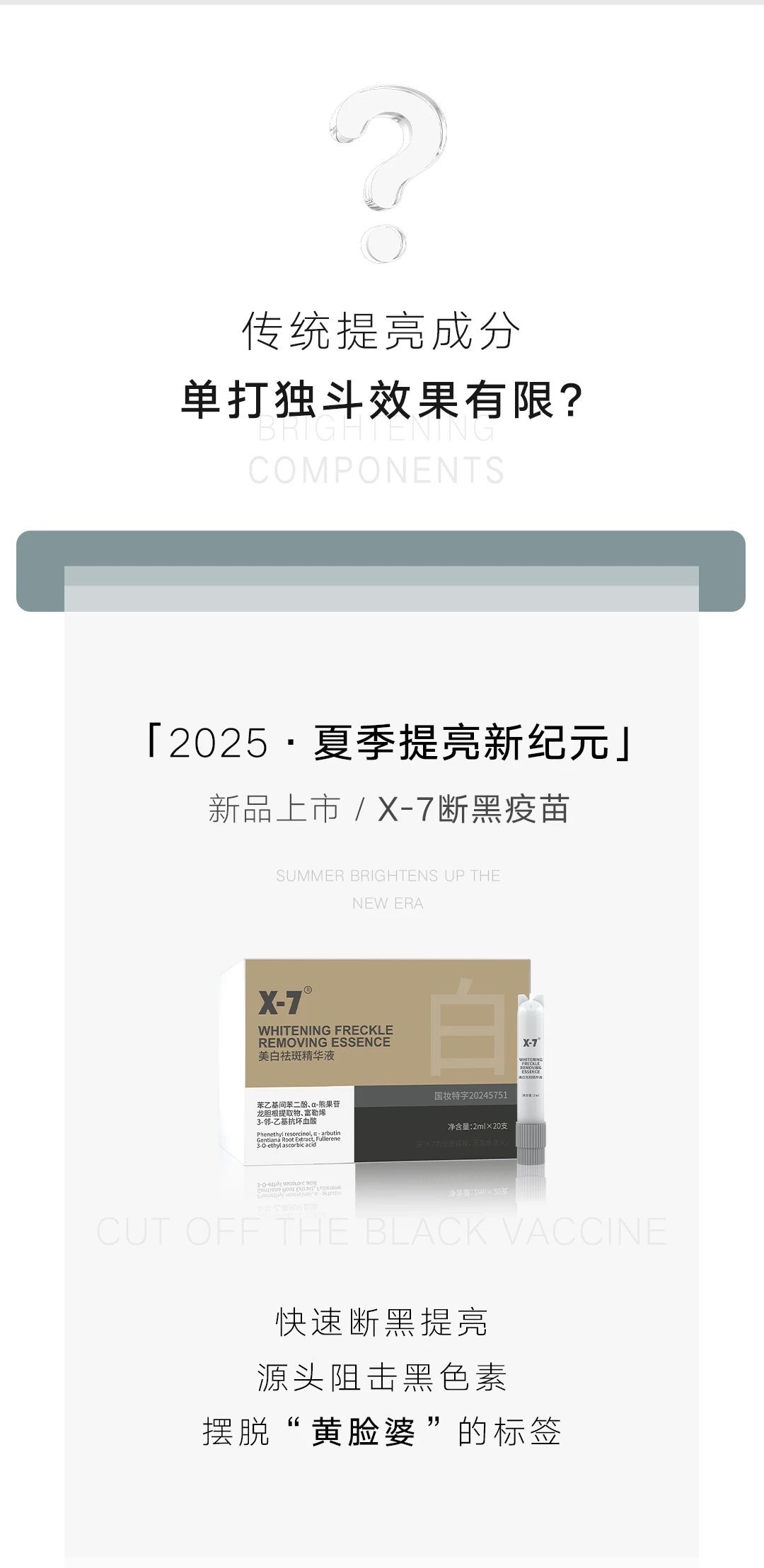 新品 X-7断黑疫苗美白祛斑精华液2ml×20支装/盒 淡斑改善暗沉 色沉黄褐斑 提亮肤色