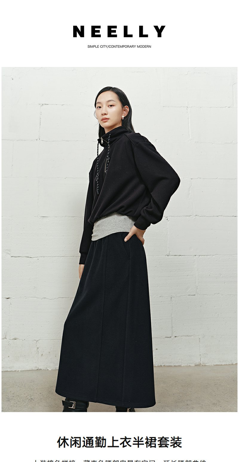 NEELLY纳俪商场同款冬新款慵懒显瘦两件套女时尚百搭上衣半裙套装N25101Z01024