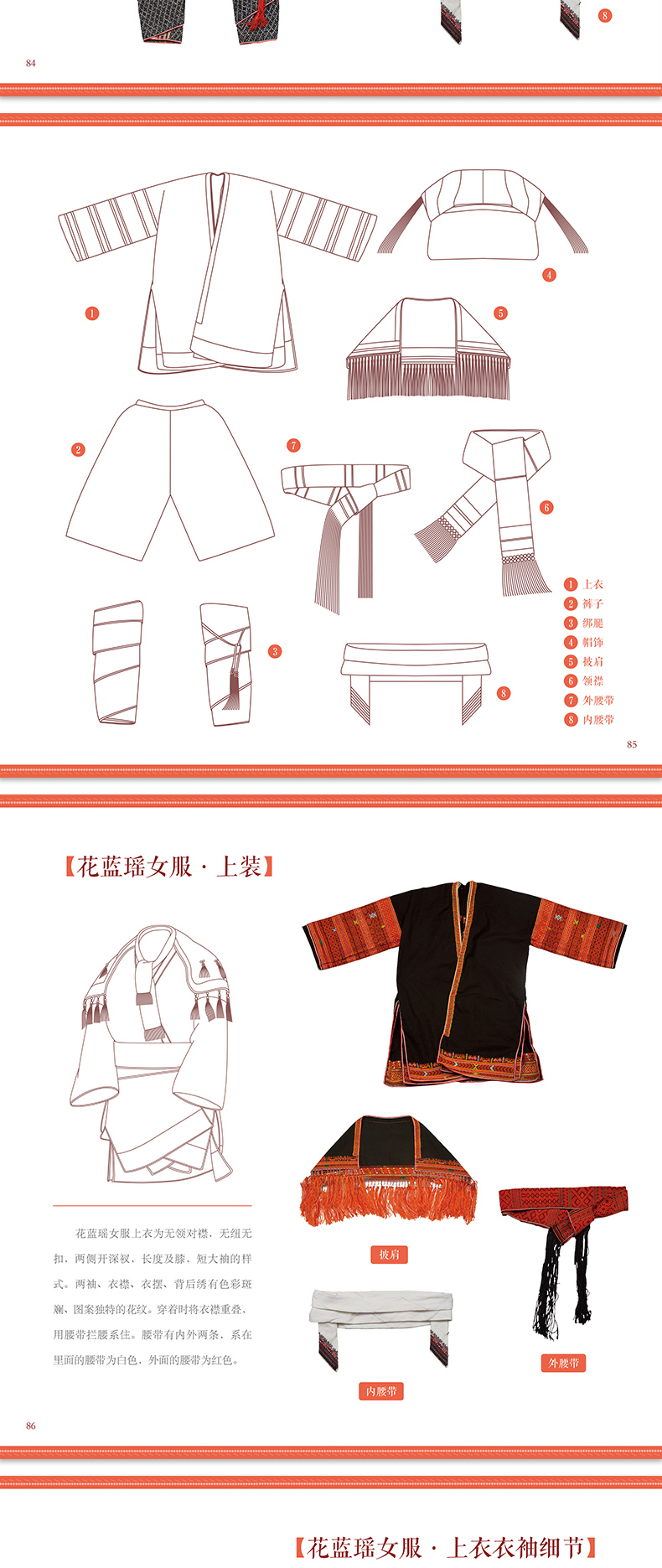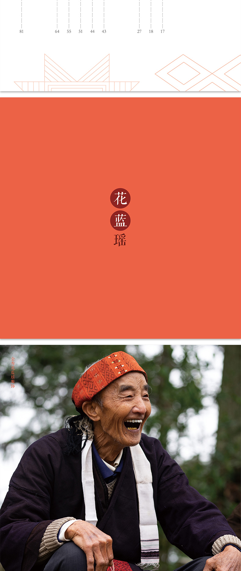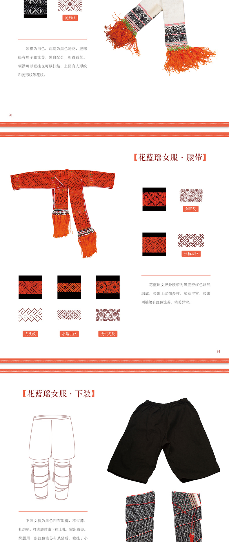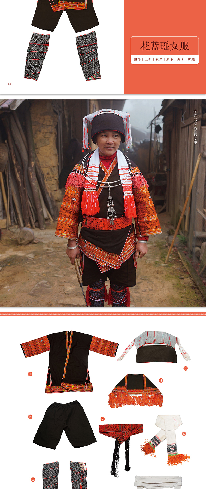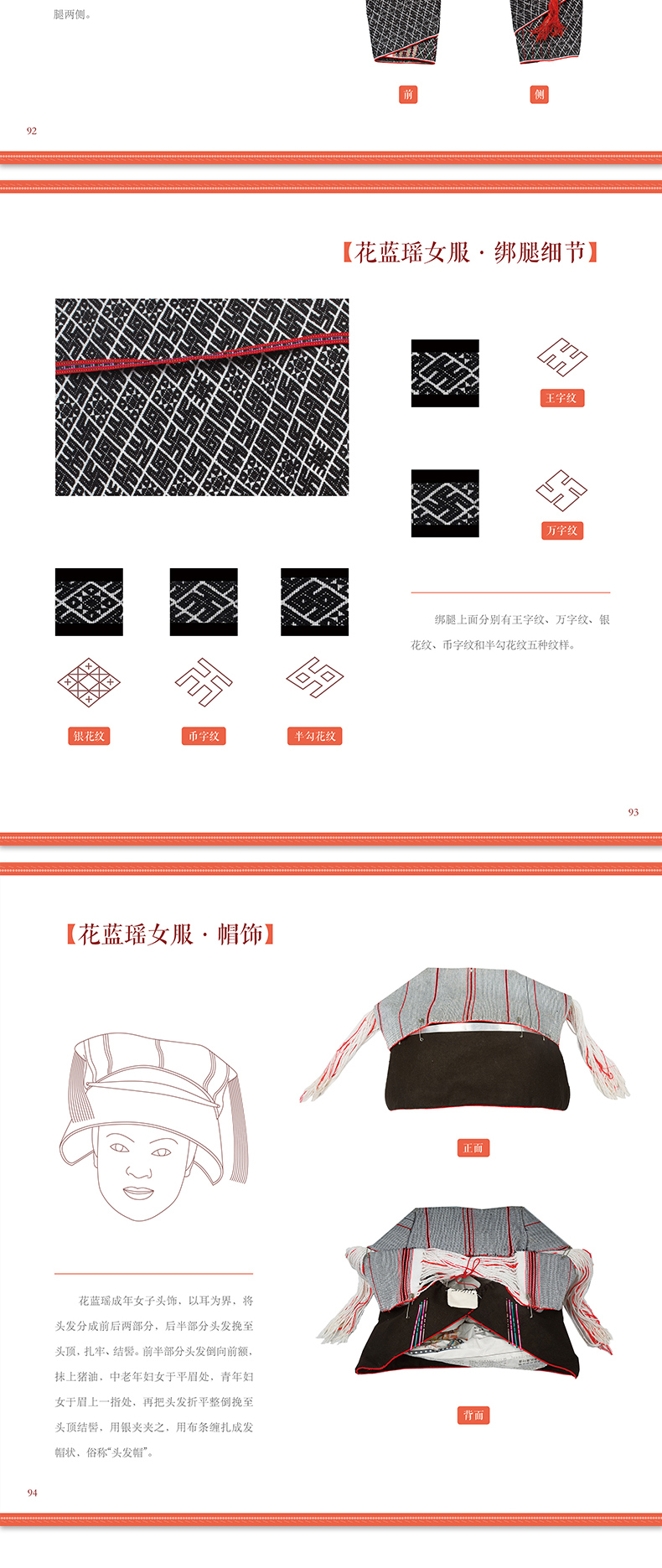 《金秀瑶族服饰图鉴》作者通过在金秀瑶族少数民族地区实地调查,采集了茶山瑶、坳瑶、花篮瑶、山子瑶、盘瑶等 5 个瑶族支系民族服饰,对金秀瑶族丰富多彩的服饰做了详细、系统的介绍,对金秀瑶族服饰的形制、结构、图案、纹样、色彩与穿戴方法、人文内涵等各方面进行了全面系统的解析,从而审视金秀瑶族服饰的形成与构成特征。