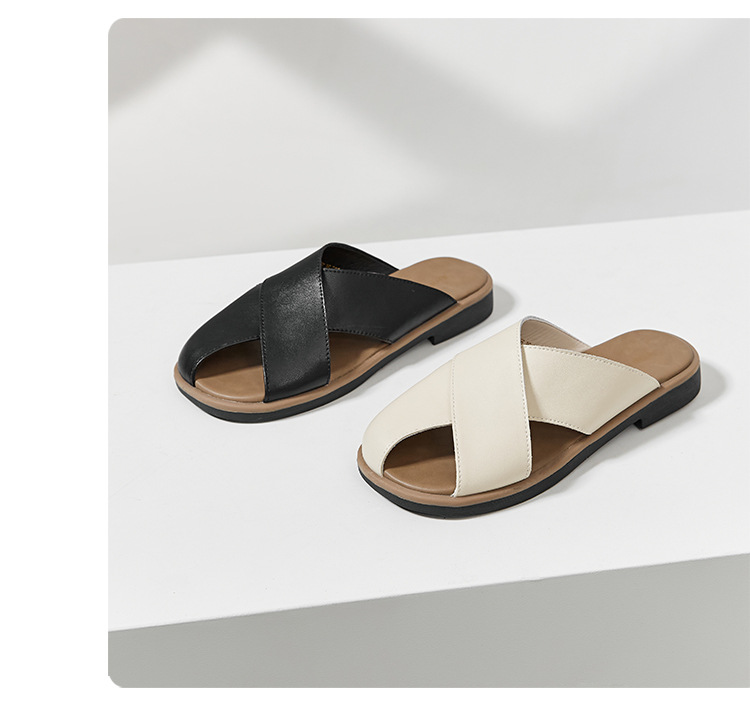 ZHR则则包头拖鞋女2024夏季ins时尚休闲简约交叉凉拖外穿复古半拖