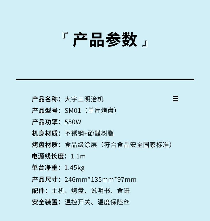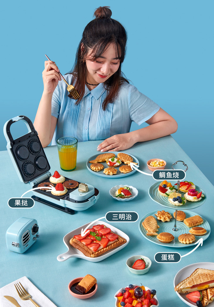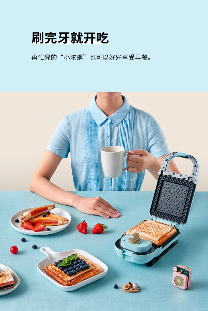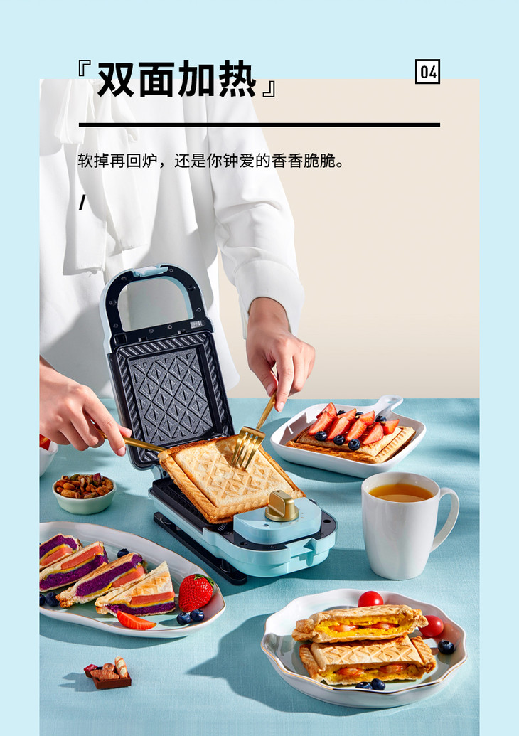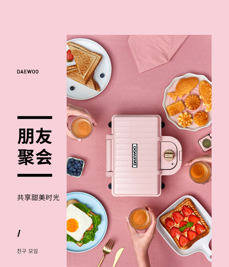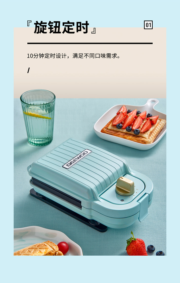 【大宇】大宇三明治机早餐机轻食家用网红小型多功能懒人烤盘华夫饼机单排标配SM01