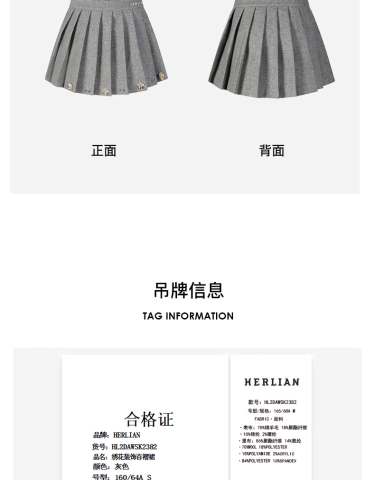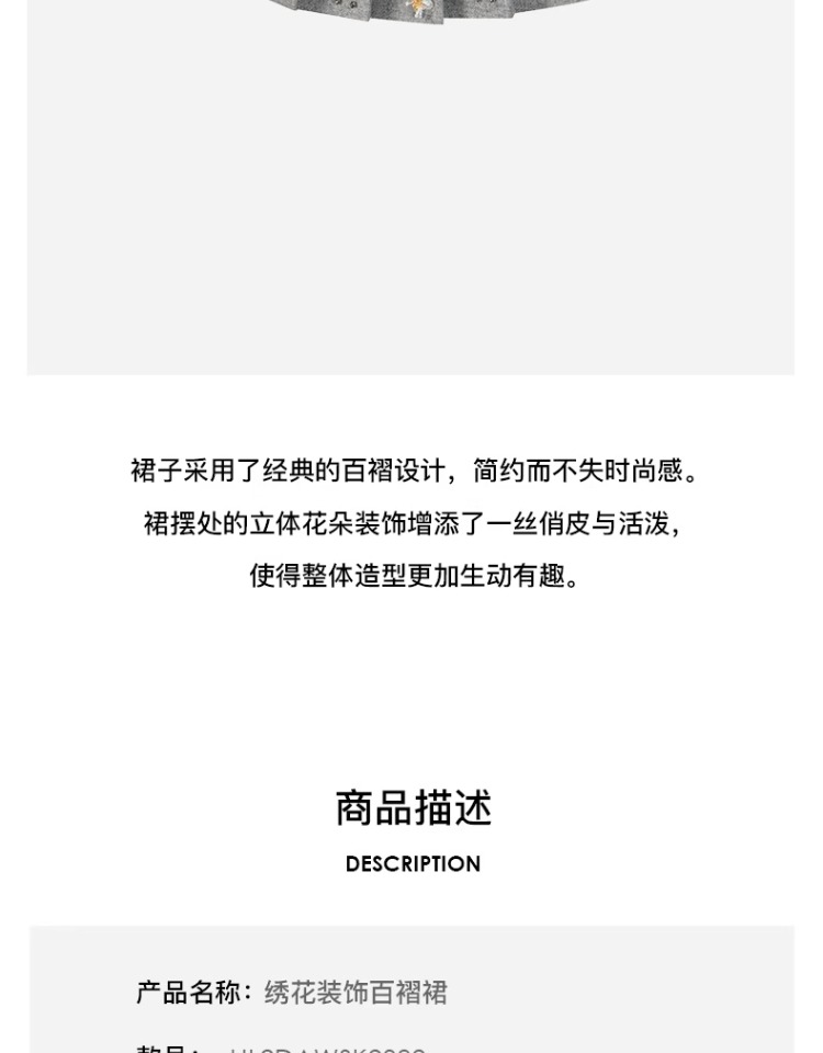 H2ESSKB083GY蝴蝶结装饰不规则百褶长裙