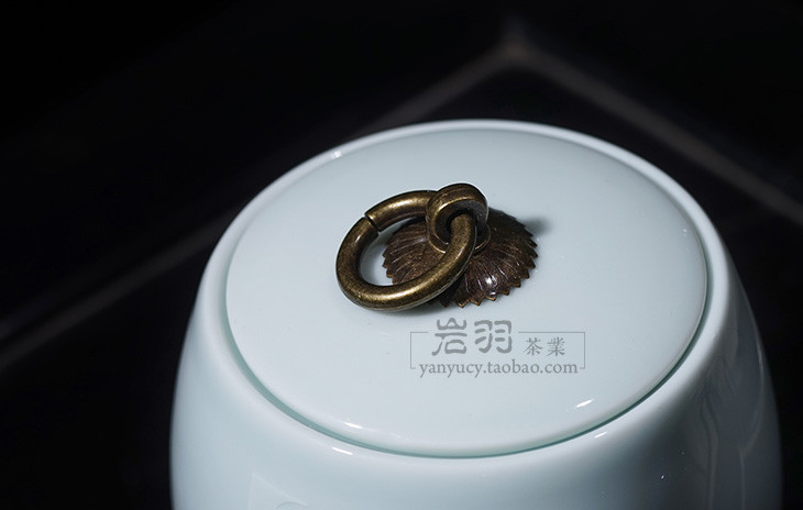 澜沧古茶茶具【青瓷鼓形醒茶罐】藏养茶叶罐 可装100克左右