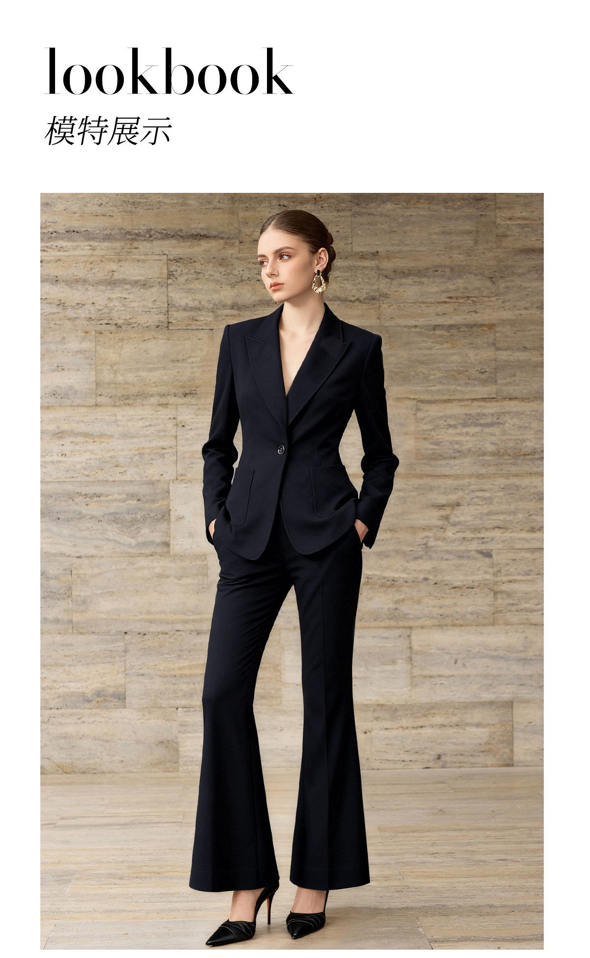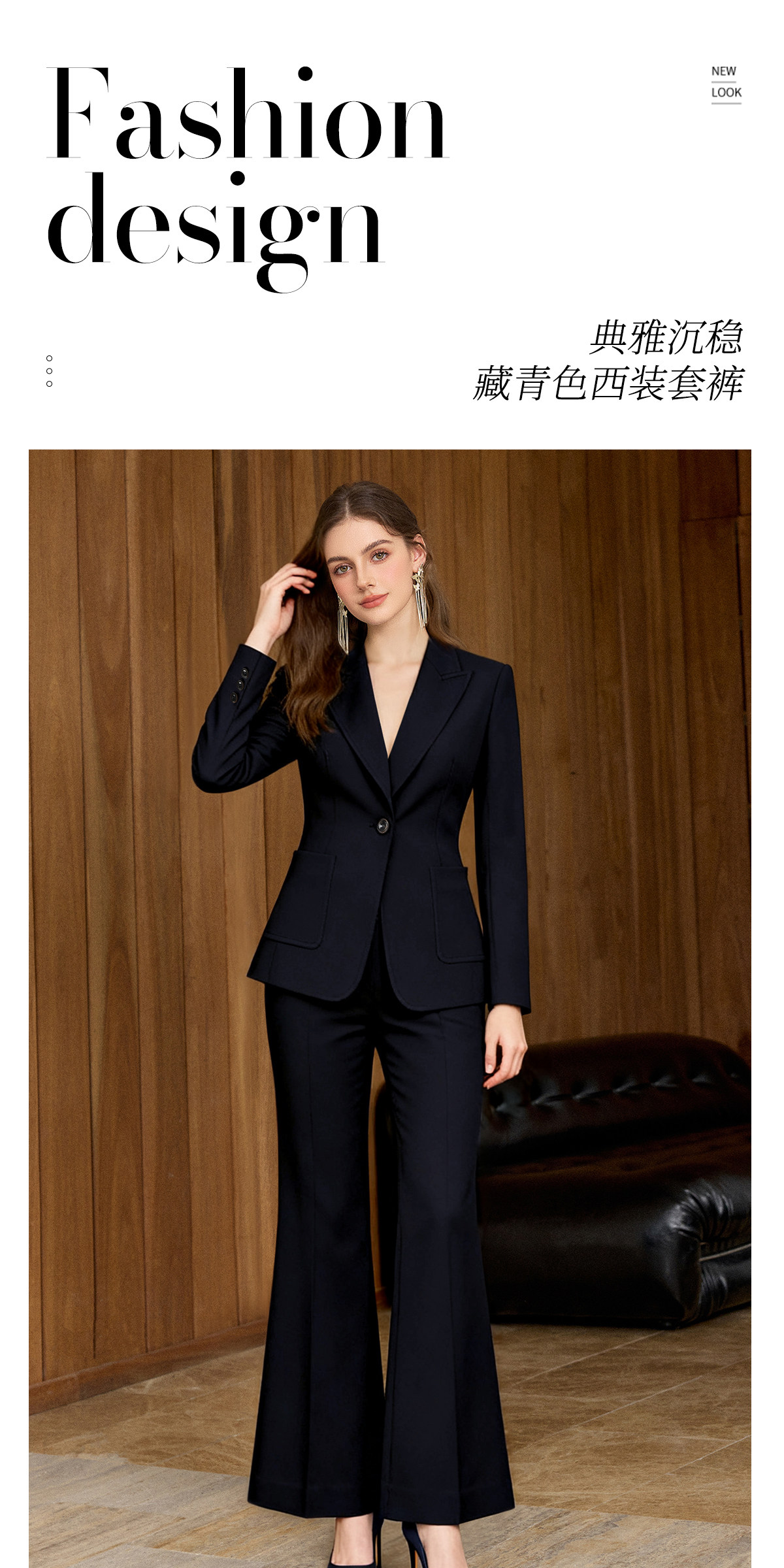 IWY/高级感藏蓝色西装套装女商务风气质通勤职业装微喇裤两件套WCP377