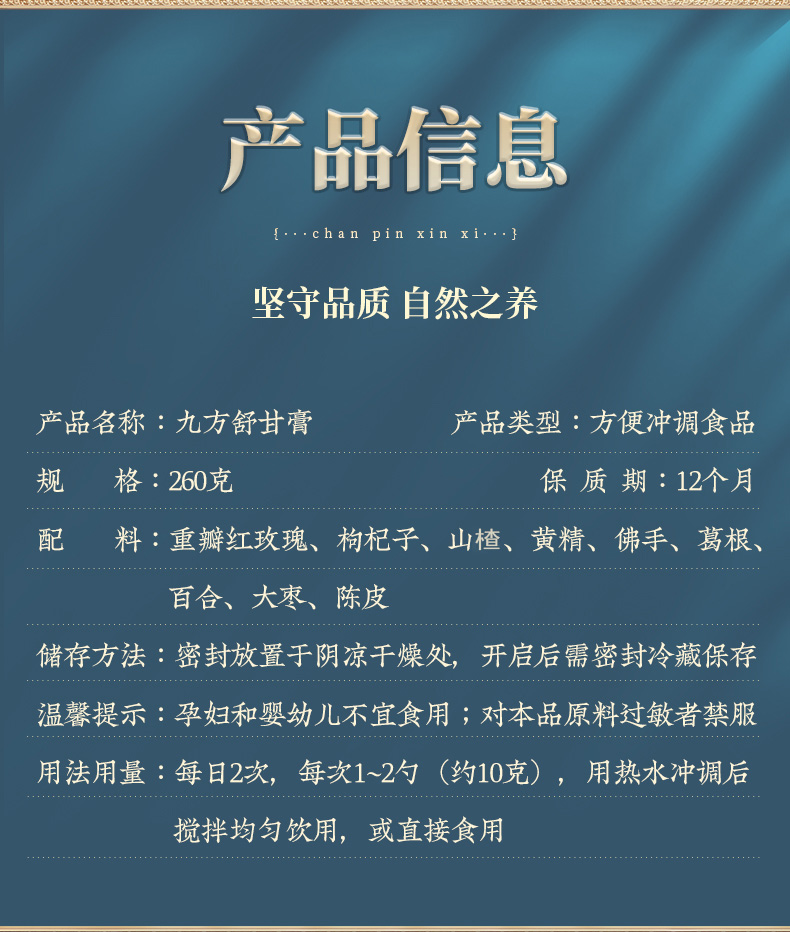 有仁堂九方舒甘膏 古法蒸制玫瑰佛手甘舒膏百合膏方 260g/罐