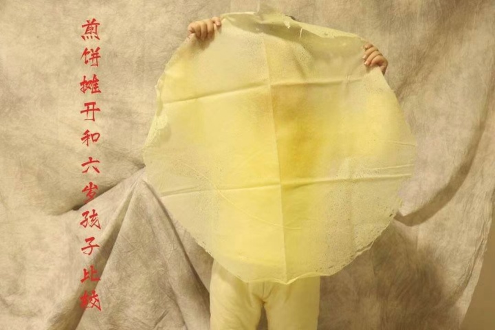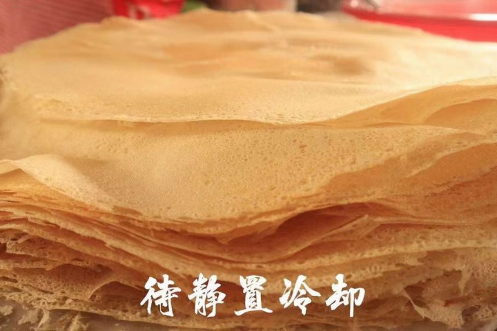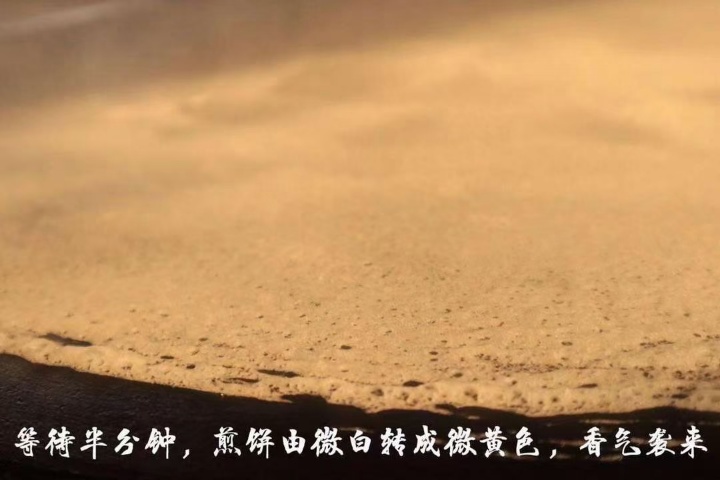 把米糊摊在沂蒙山特有的铁质鏊子上