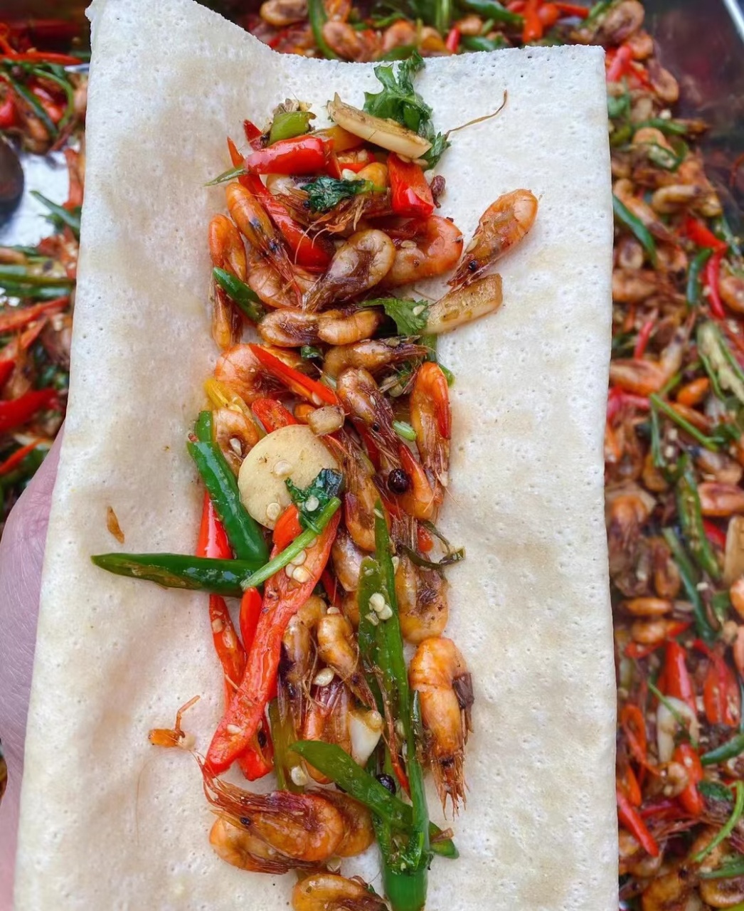 再卷入各种蔬菜、鸡蛋、肉等配料,好吃翻倍
