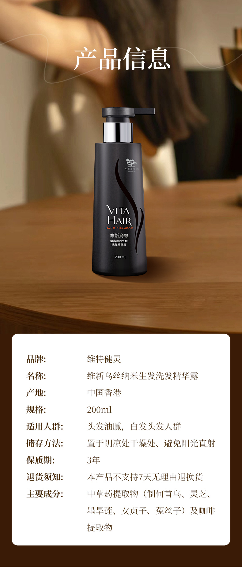 维特健灵维新乌丝纳米洗发精华露500ml/200ml/瓶 A-4976 (效期28-2)