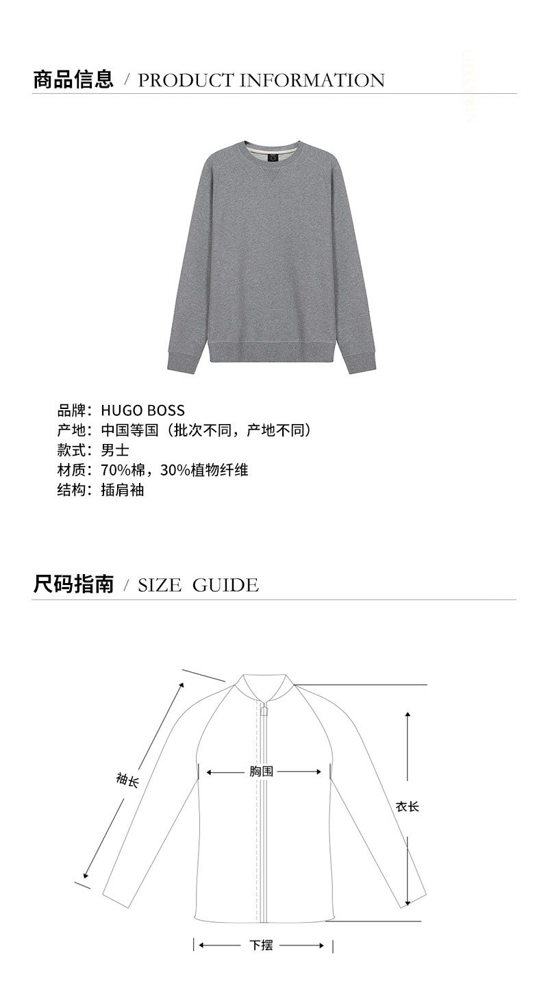 HUGO BOSS/雨果博斯 男卫衣 男士棉质圆领长袖卫衣运动衫 50447837