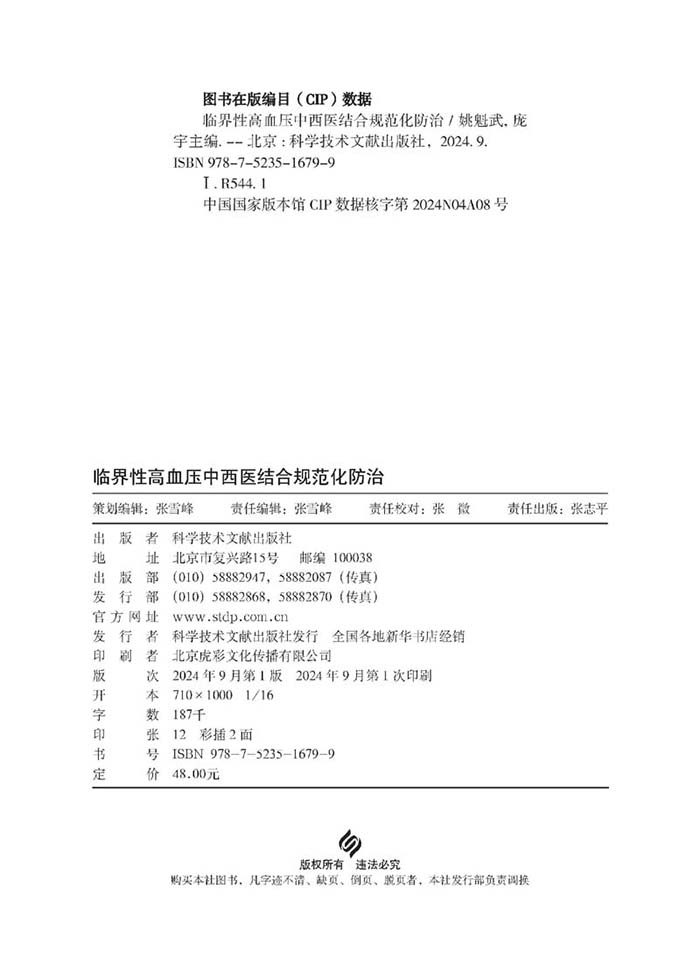 临界性高血压中西医结合规范化防治 姚魁武 庞宇 临界性高血压的中西医认识 特殊人群的治疗策略9787523516799科学技术文献出版社