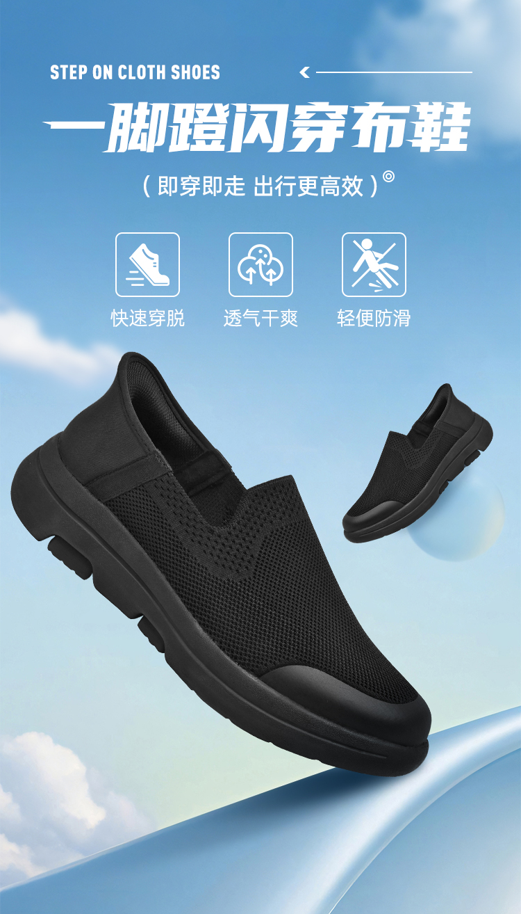 【一脚蹬闪穿透气飞织布鞋/清仓】轻便透气休闲网布鞋 快速穿脱低帮健步鞋XB501