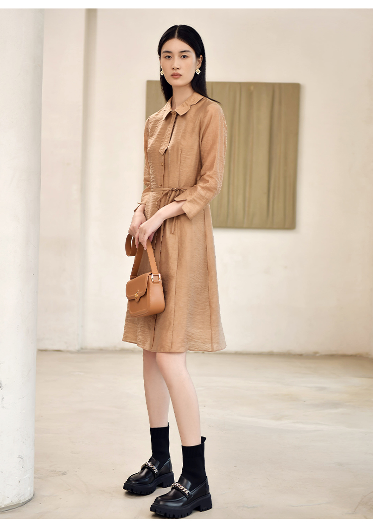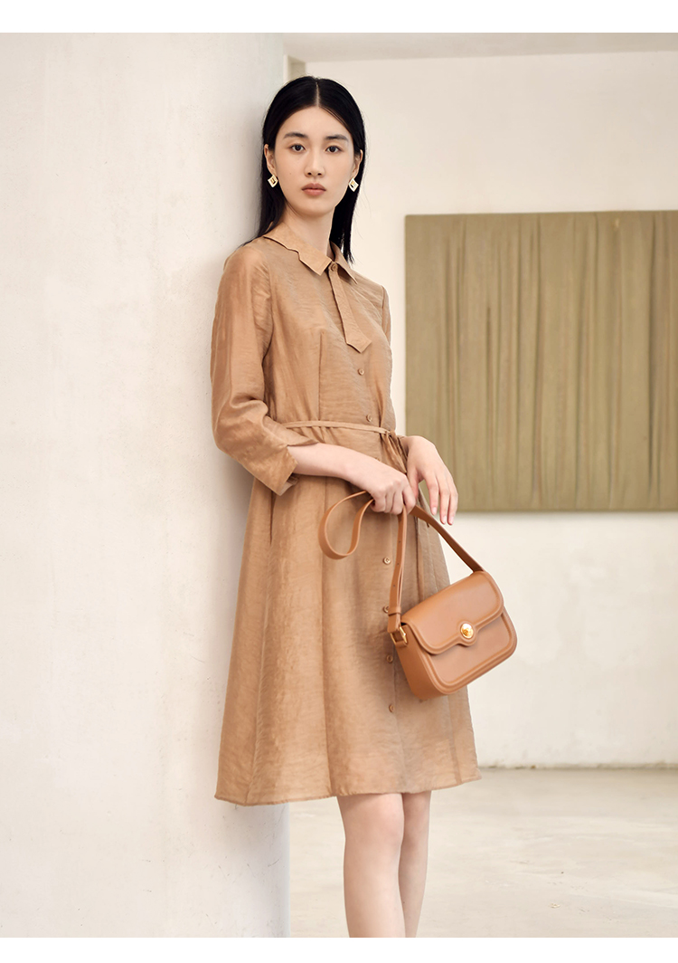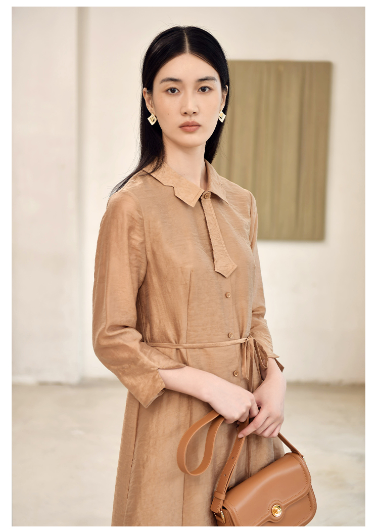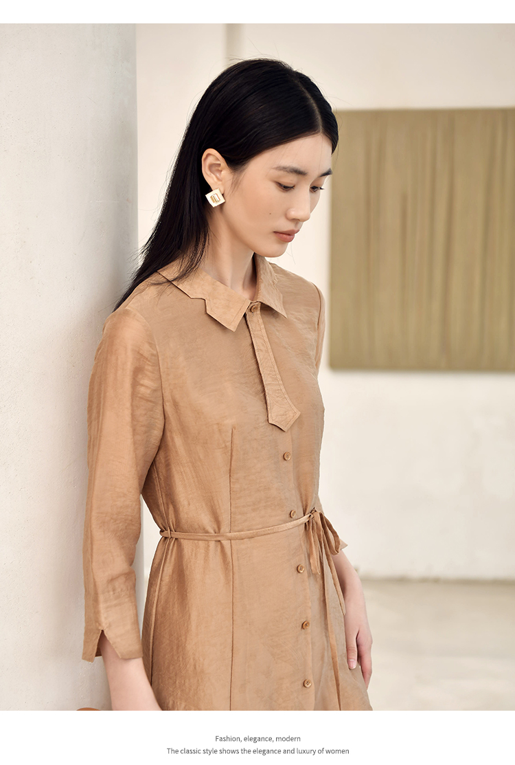 佐尔美2022秋季新款 气质职场贝母扣中长连衣裙女E23LL16