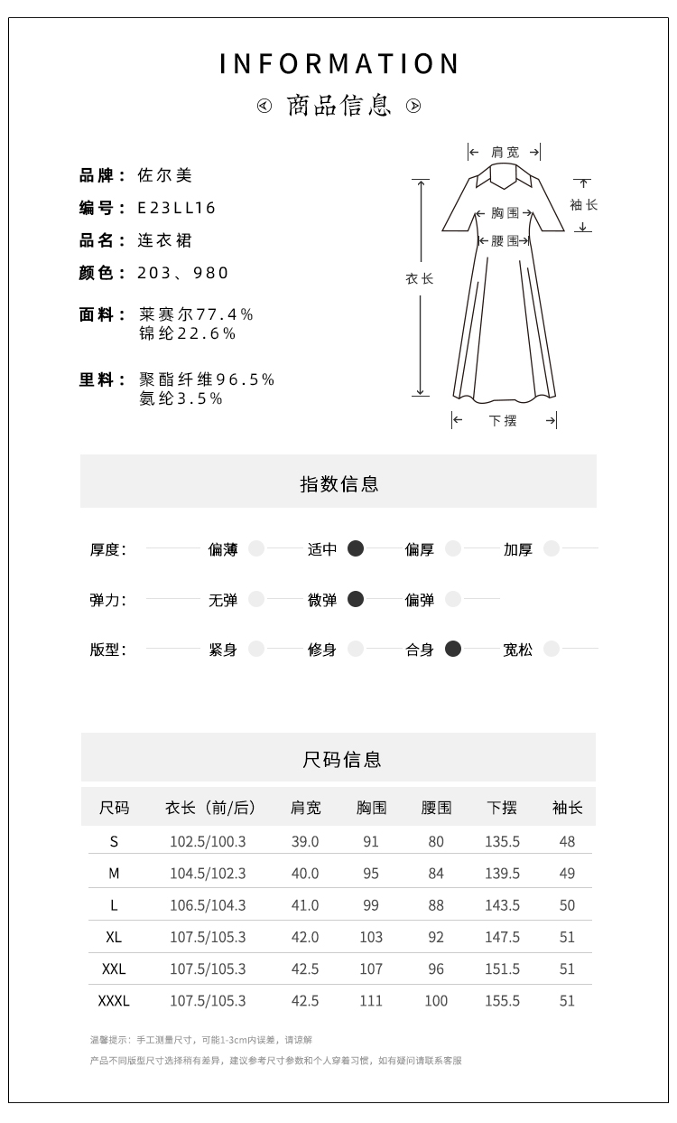 佐尔美春秋女装纯色简约舒适清新直筒五分袖连衣裙OL中裙E63LL15A